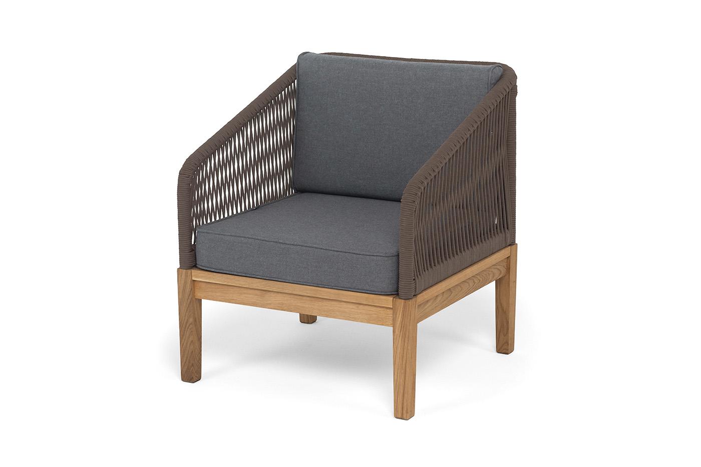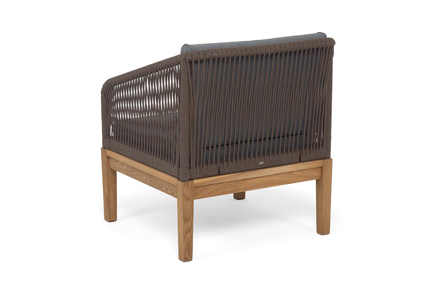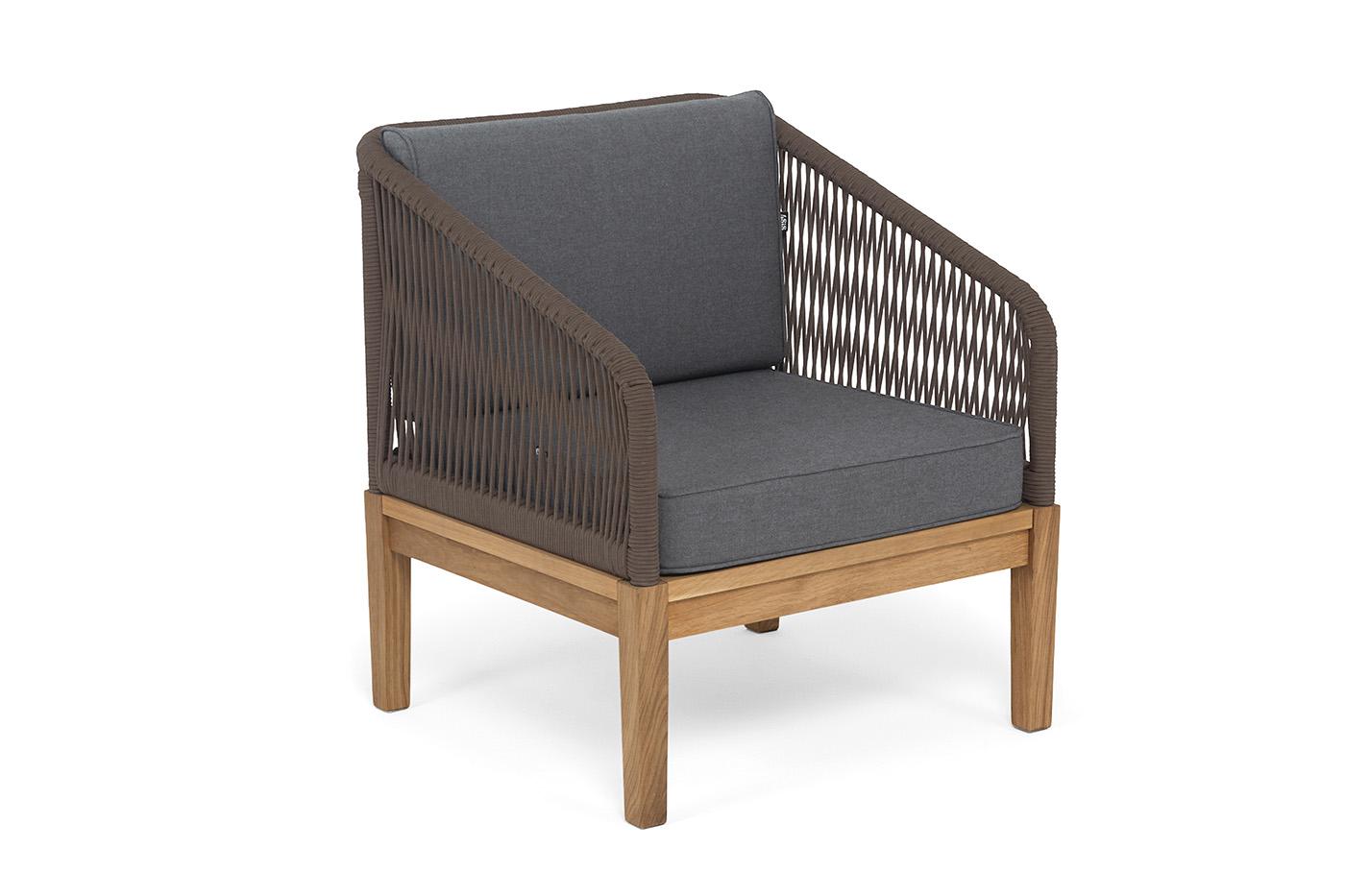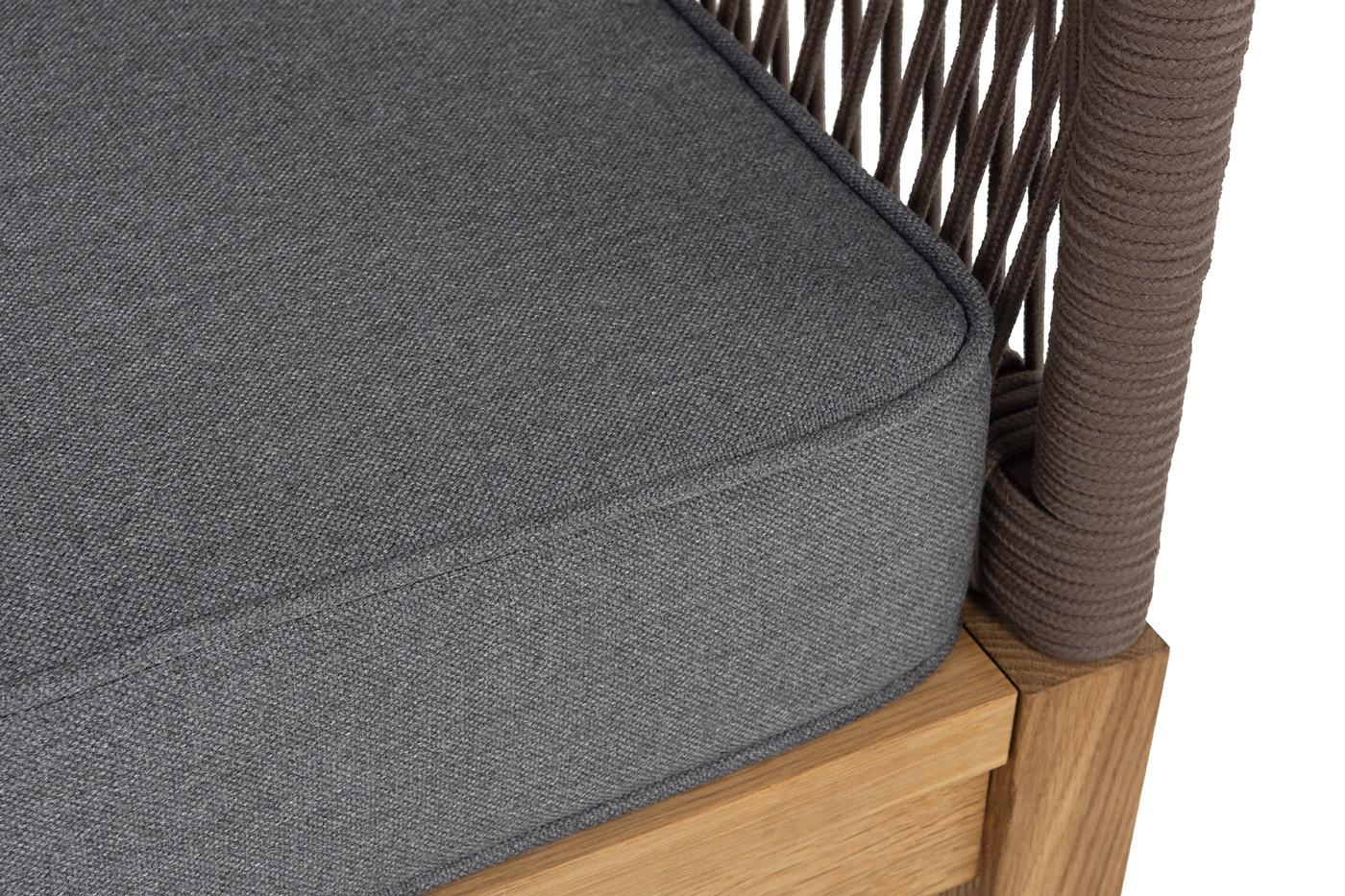 Кресло 4SIS "Канны" кресло плетеное из роупа, основание дуб, роуп коричневый круглый, ткань темно-серая 027 арт. KAN-A-T002 brown(D-gray027)