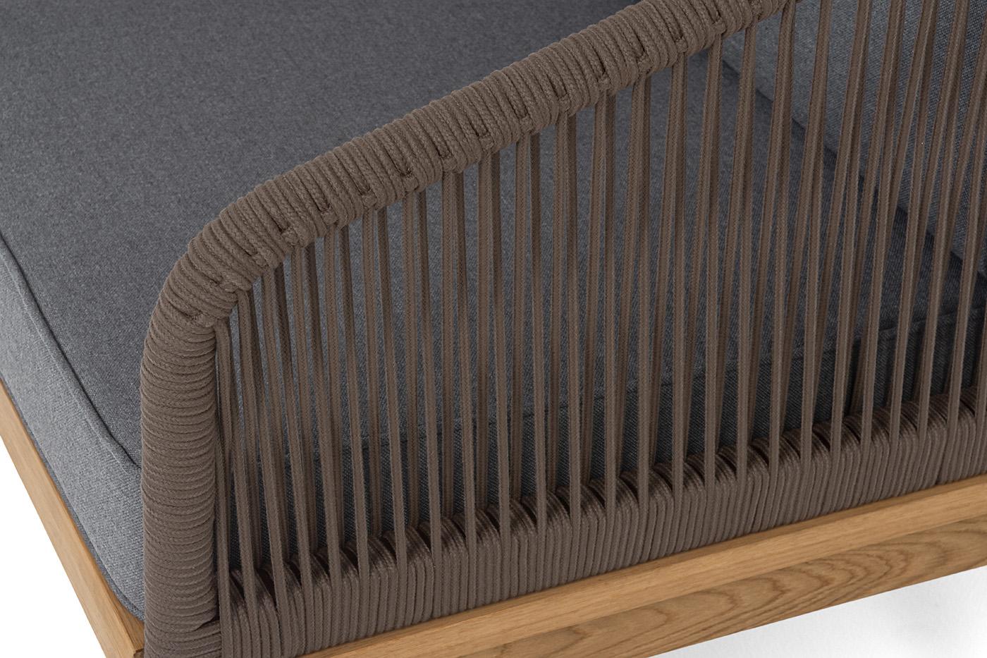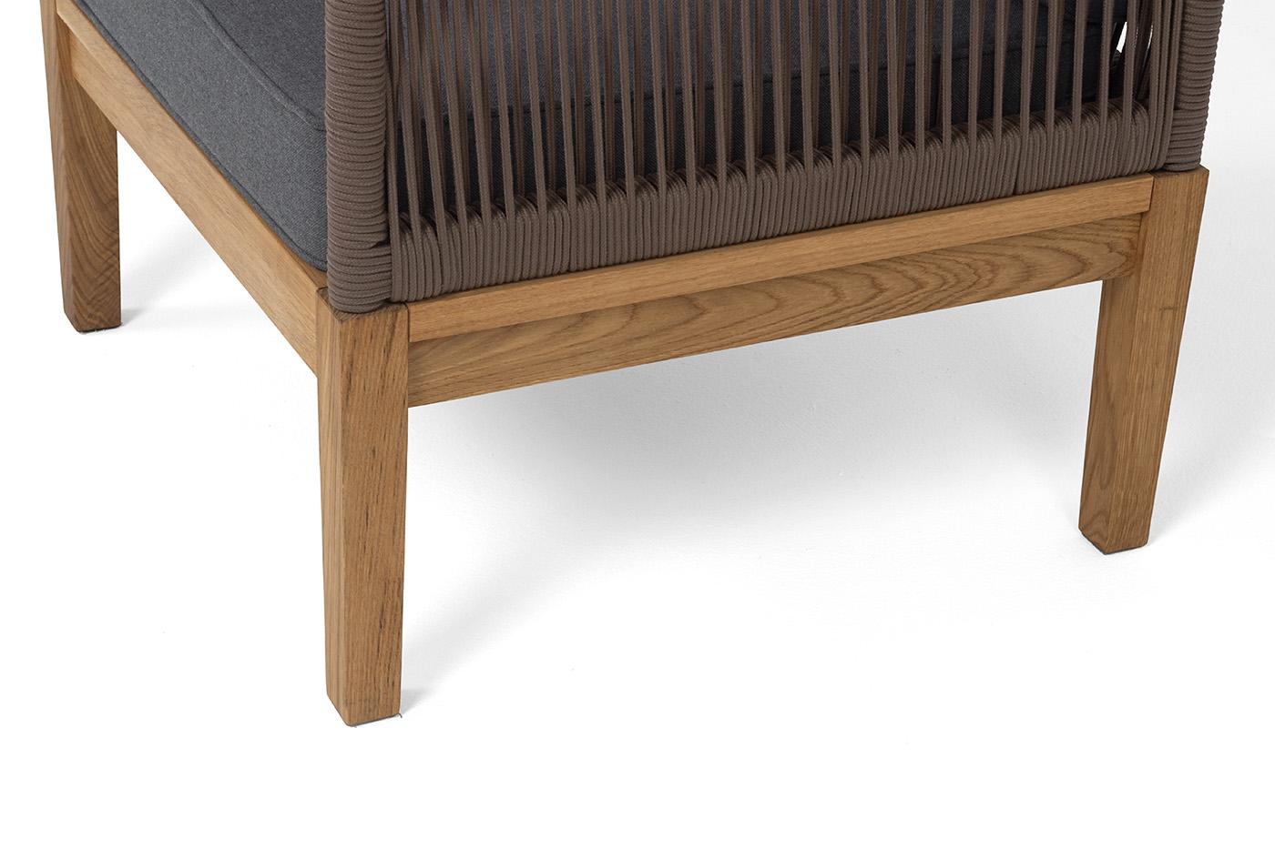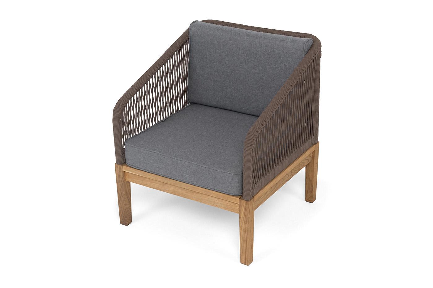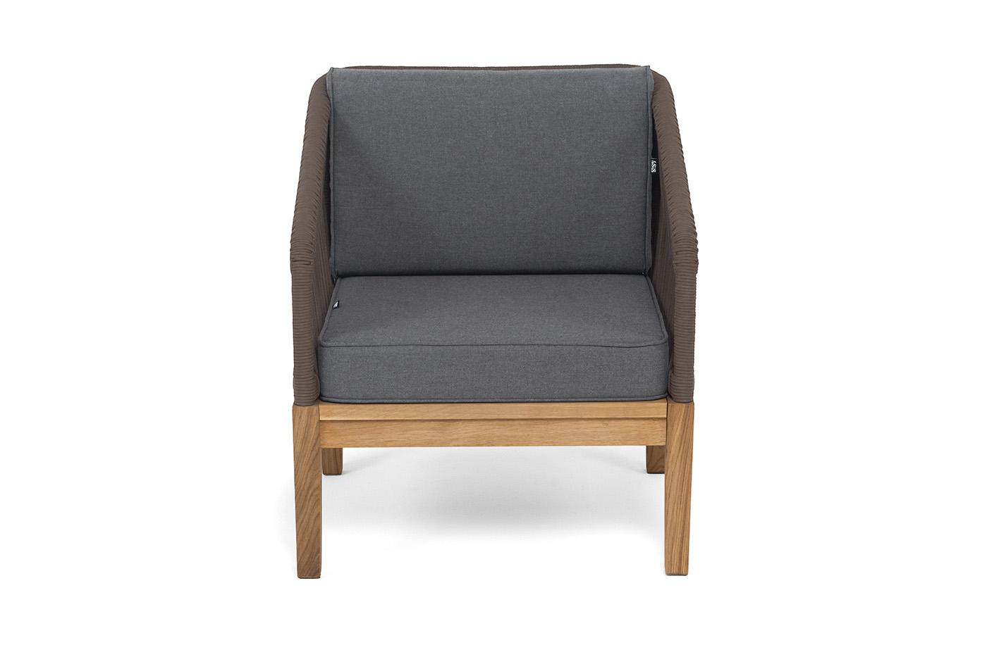 Кресло 4SIS "Канны" кресло плетеное из роупа, основание дуб, роуп коричневый круглый, ткань темно-серая 027 арт. KAN-A-T002 brown(D-gray027)