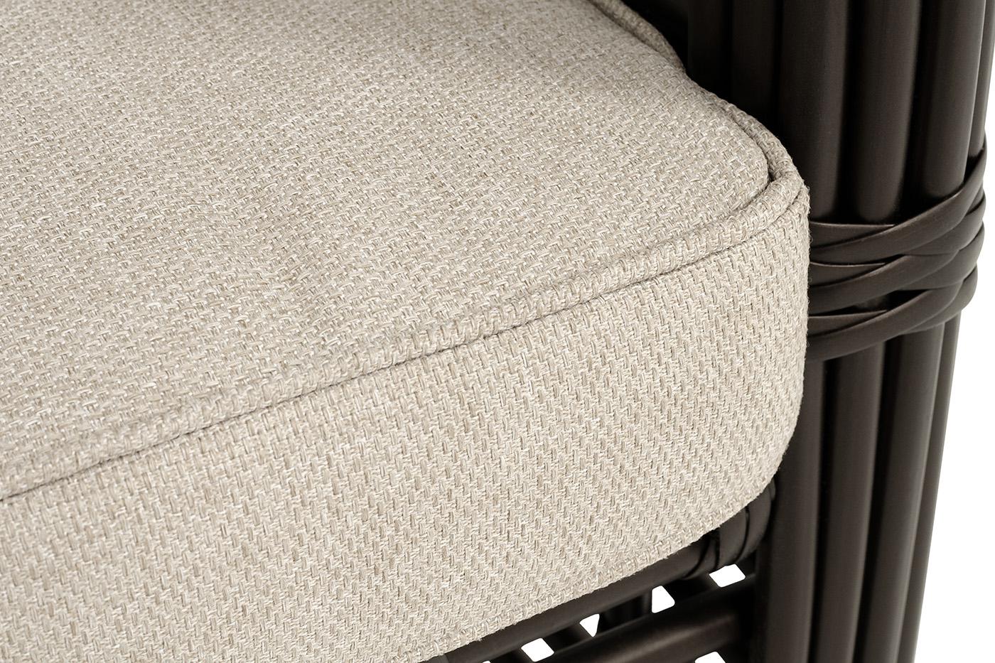 Кресло «Ницца» предназначено для комфортного времяпровождения в зоне отдыха с диванами и столиком из этой же серии. Каркас мебели сделан из прочного алюминия с высокими эксплуатационными качествами. Оплетен вручную с помощью круглого искусственного ротанга. Представлено в бронзовом оттенке. Садовое кресло укомплектовано удобными бежевыми подушками. Полиэстер используется при пошиве тканевых изделий, плотность которого - 300гр/м2. Материал имеет обязательную влагоотталкивающую пропитку для уси