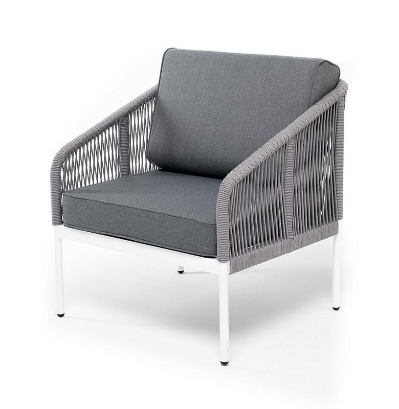 Кресло 4SIS "Канны" кресло плетеное из роупа, каркас алюминий серый (RAL7022) муар, роуп серый круглый, ткань серая 017 арт. KAN-A-001 RAL7022 Mua grey(gray017)