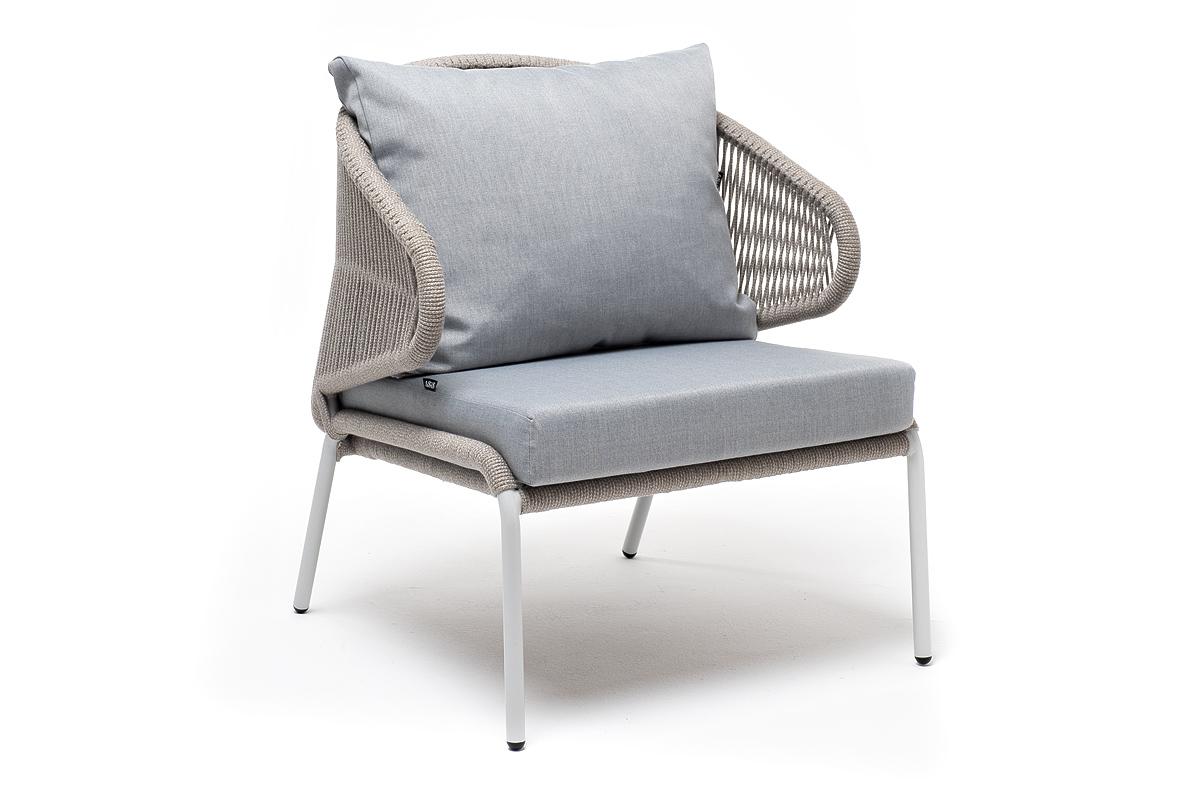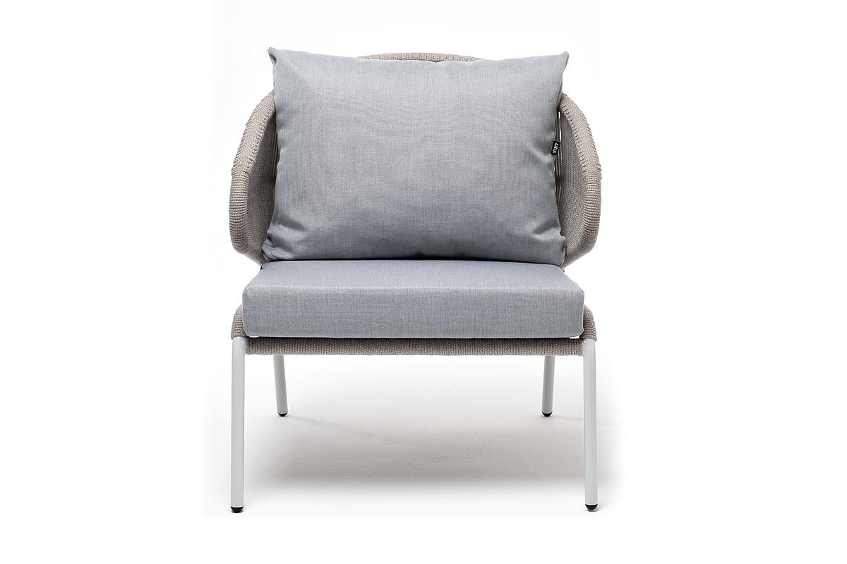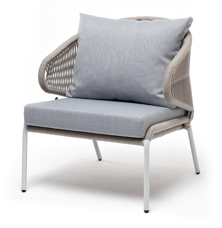 Кресло 4SIS "Милан" кресло плетеное из роупа, каркас алюминий светло-серый (RAL7035) муар, роуп серый меланж круглый, ткань светло-серая арт. MIL-A-001 RAL7035 Mua mel-grey(H-gray)