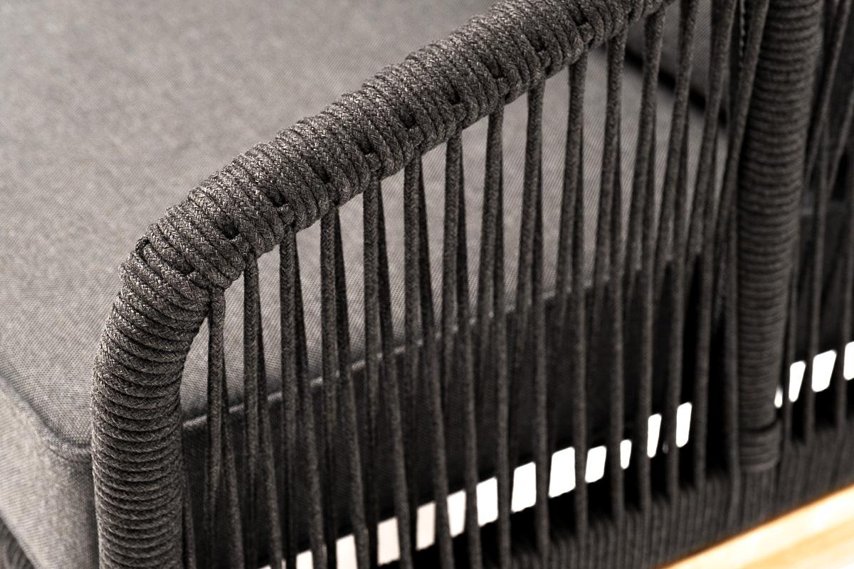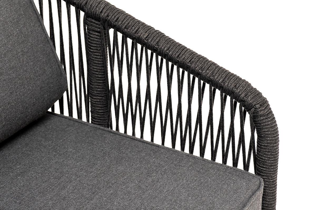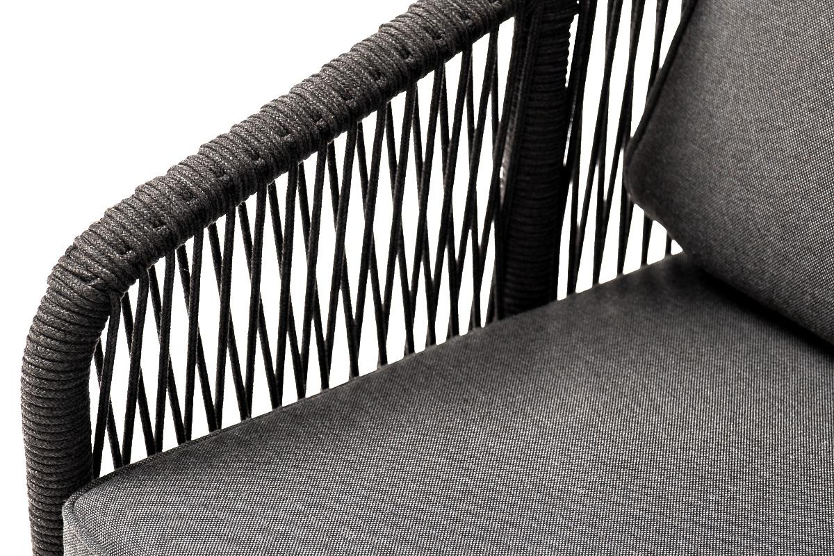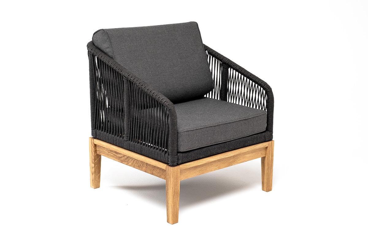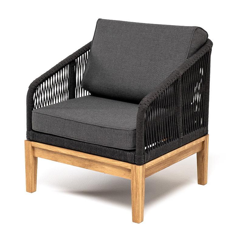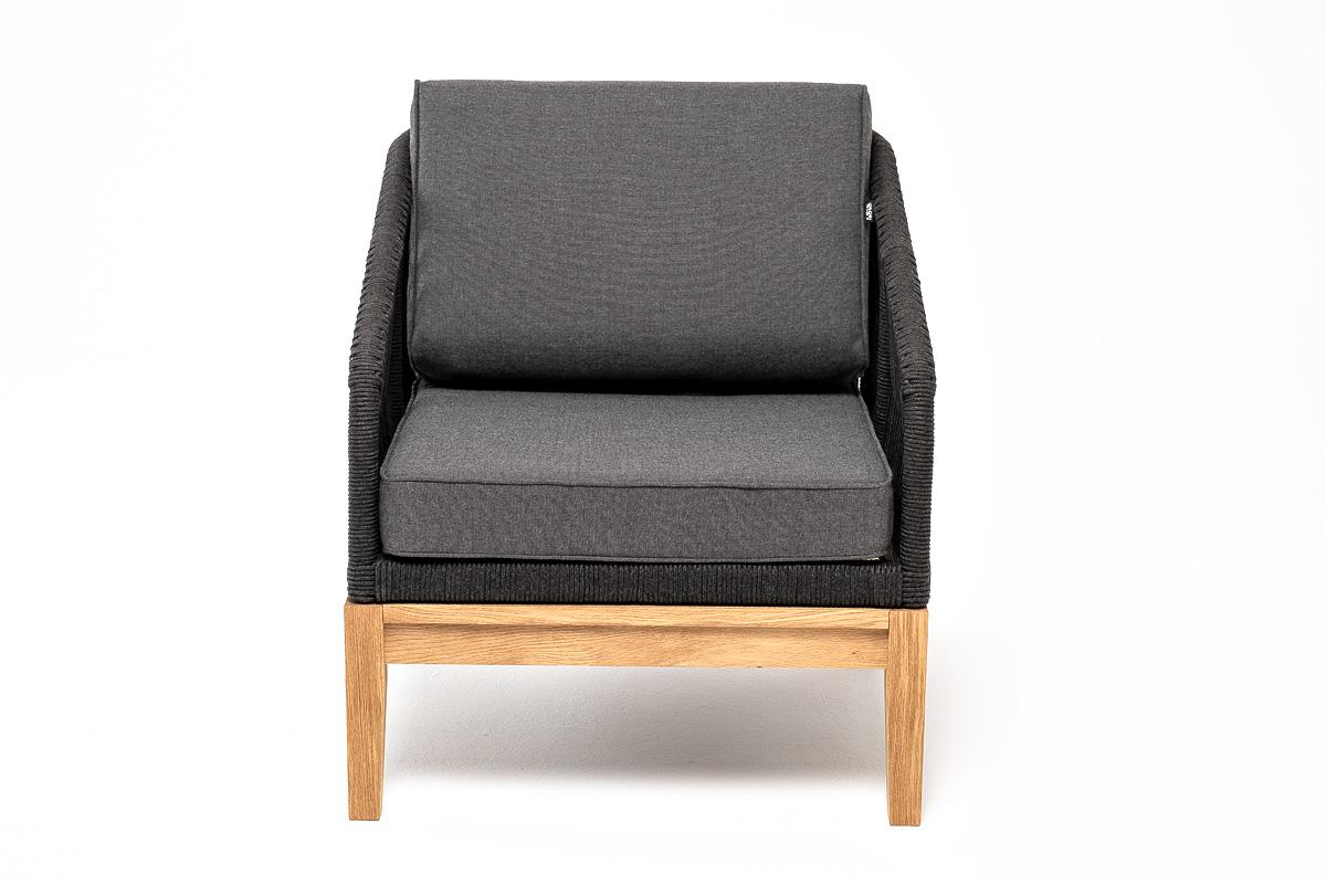 Кресло 4SIS "Канны" кресло плетеное из роупа, основание дуб, роуп темно-серый круглый, ткань темно-серая 027 арт. KAN-A-T001 D-grey(D-gray027)