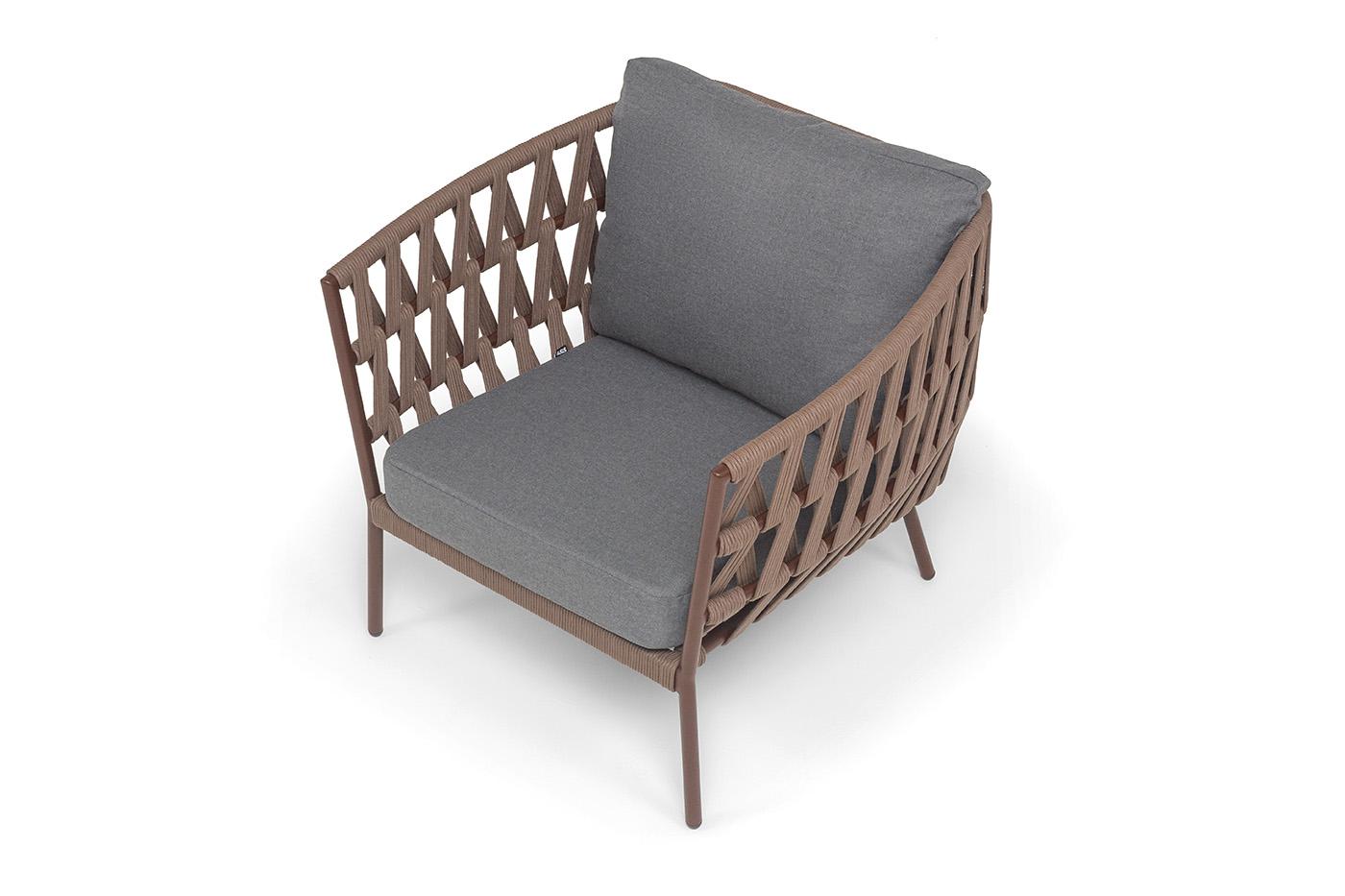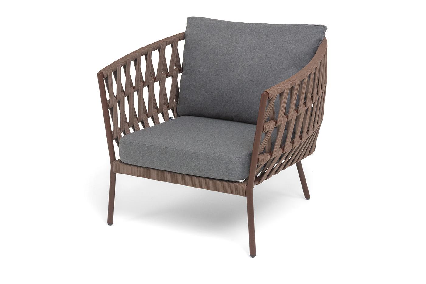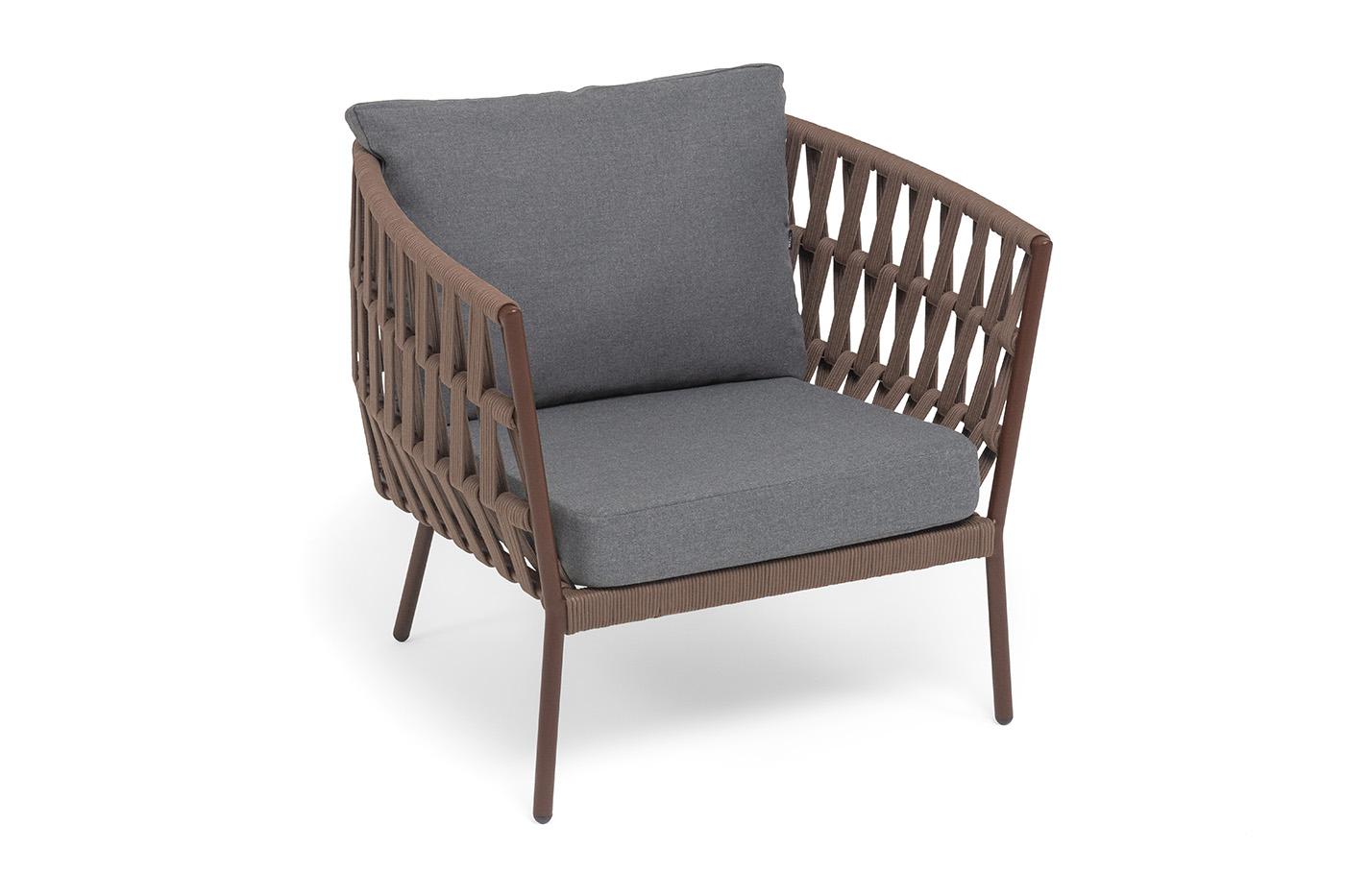 Кресло 4SIS "Диего" кресло плетеное из роупа, каркас алюминий коричневый (RAL8016) муар, роуп коричневый круглый, ткань темно-серая 027 арт. DIE-A-001 RAL8016 Mua brown(D-gray027) OLD