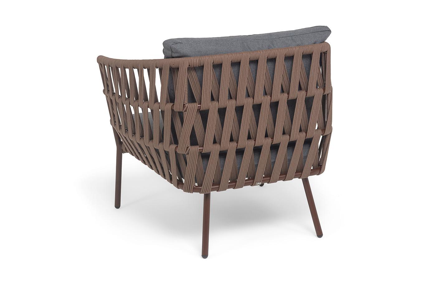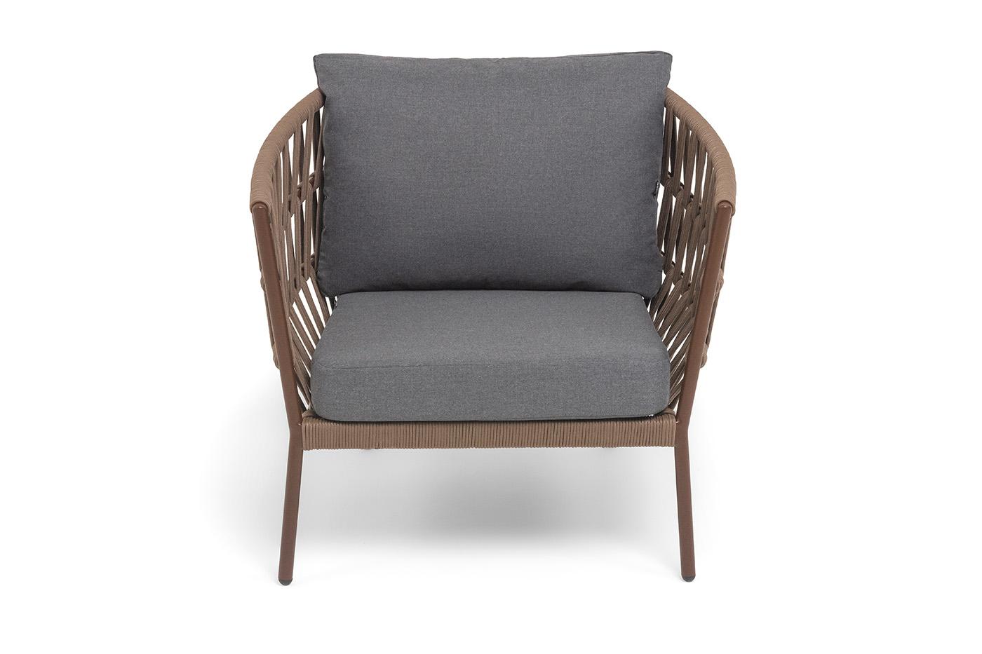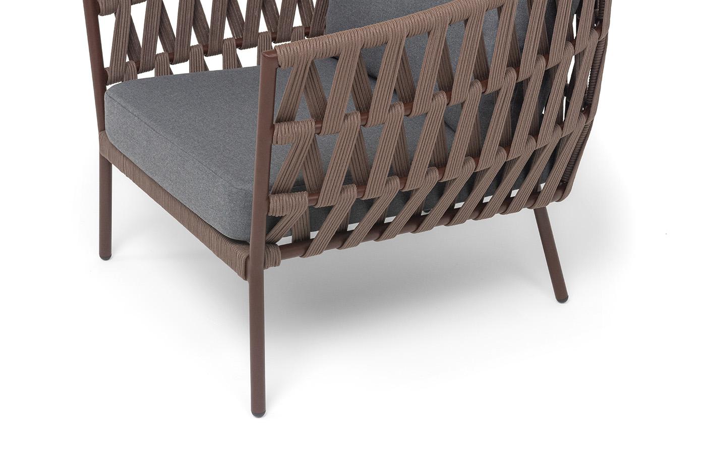 Кресло 4SIS "Диего" кресло плетеное из роупа, каркас алюминий коричневый (RAL8016) муар, роуп коричневый круглый, ткань темно-серая 027 арт. DIE-A-001 RAL8016 Mua brown(D-gray027) OLD