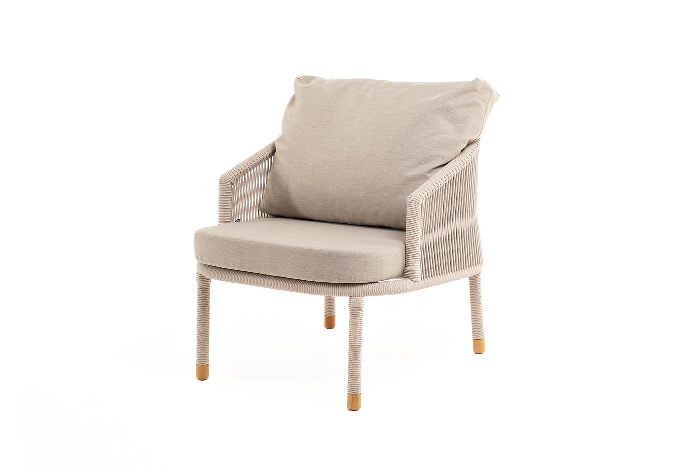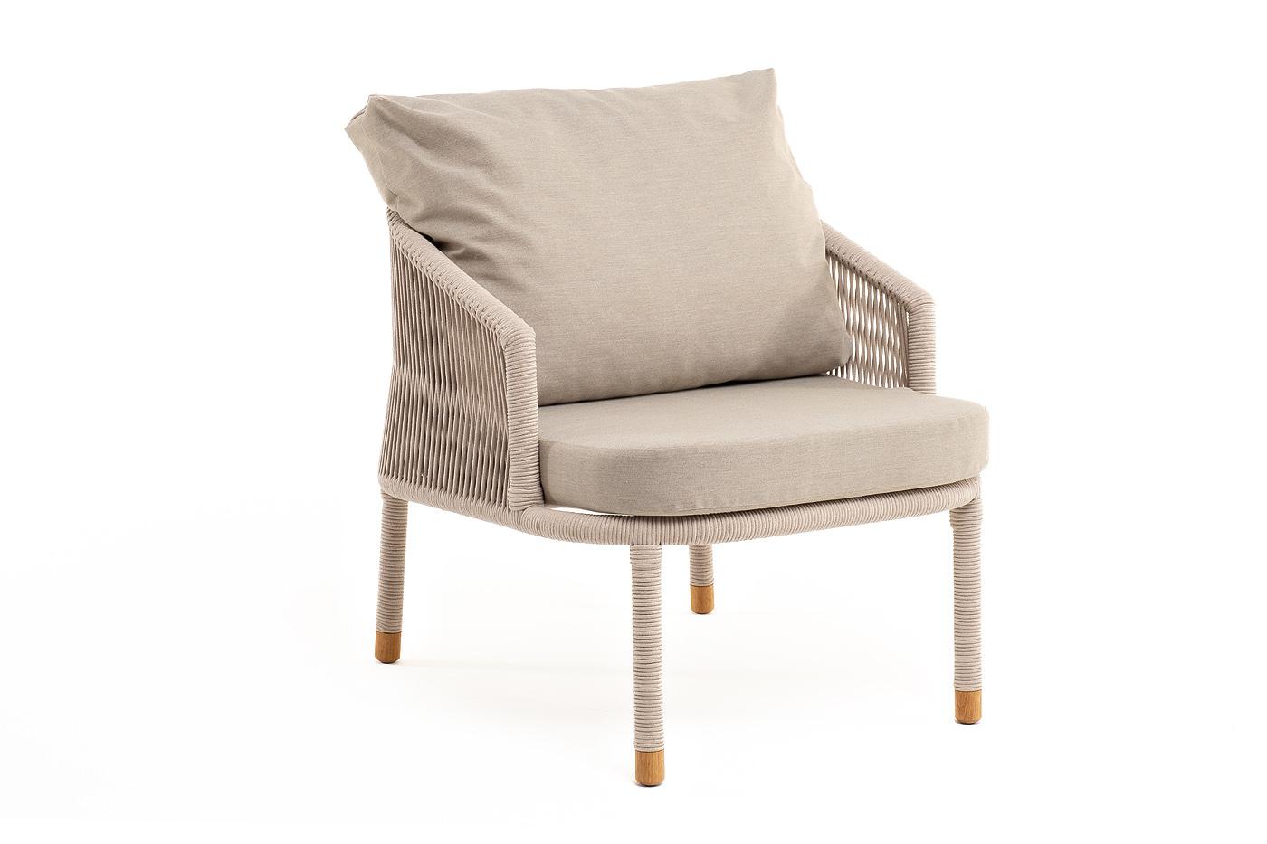 Кресло 4SIS "Верона" кресло плетеное из роупа, каркас алюминий белый муар, роуп бежевый круглый, ткань бежевая 052 арт. VER-A-001 W Mua beige(beige052)