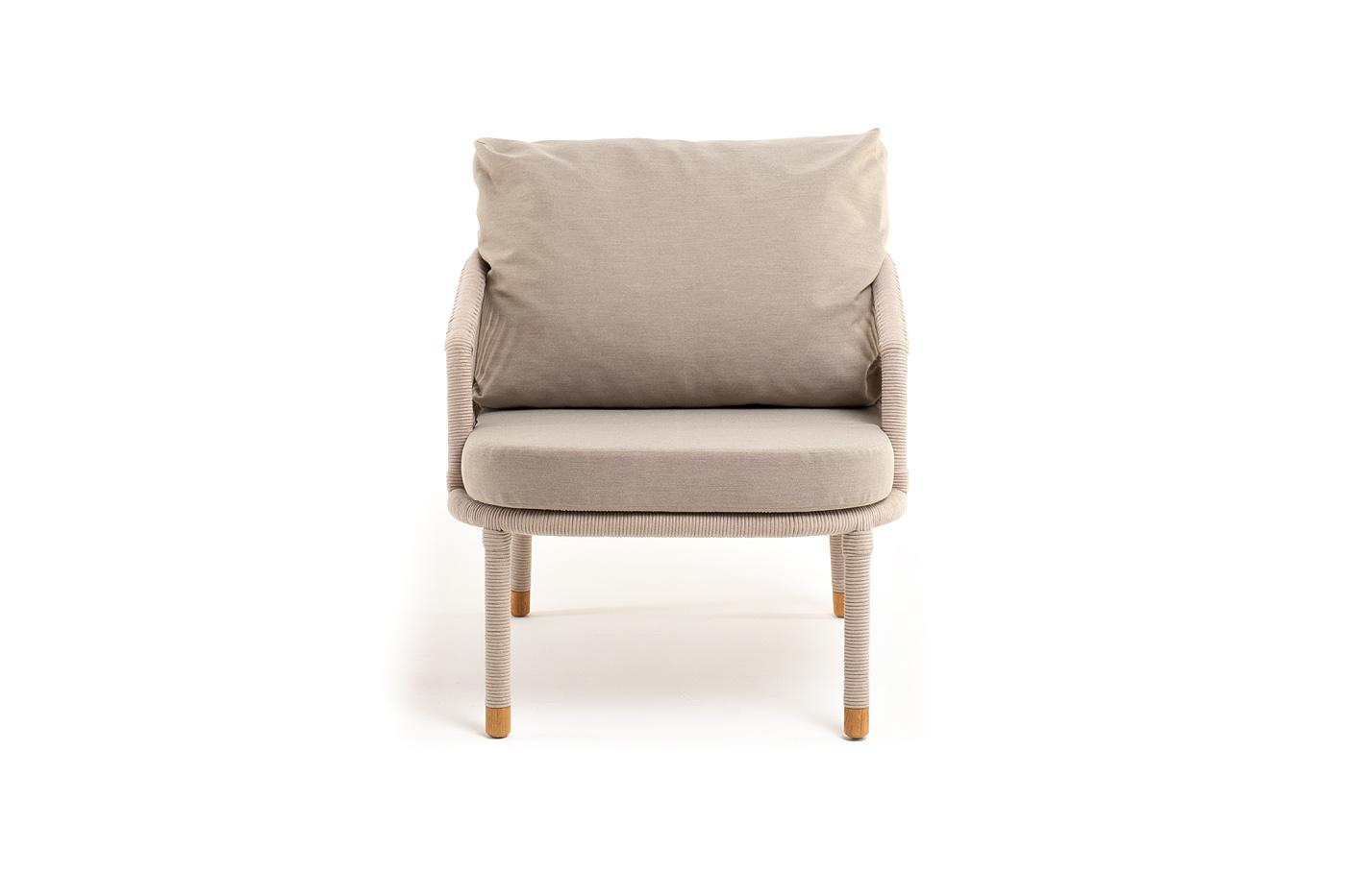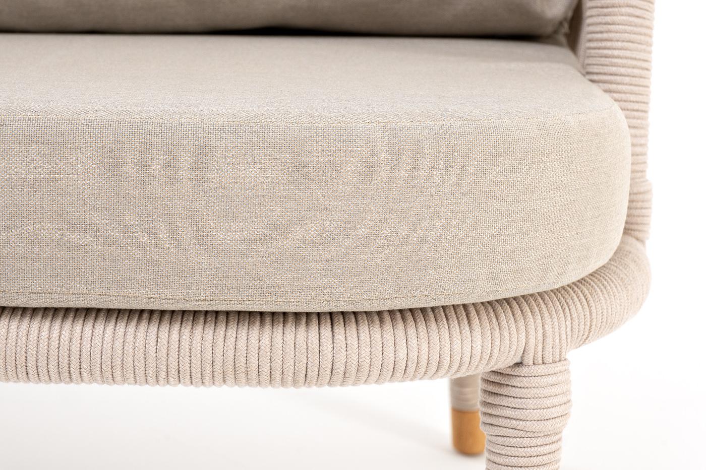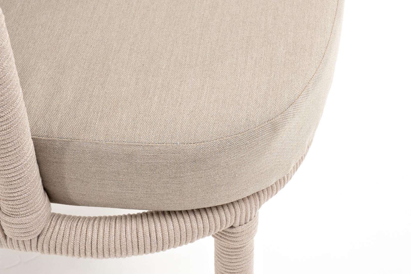 Кресло 4SIS "Верона" кресло плетеное из роупа, каркас алюминий белый муар, роуп бежевый круглый, ткань бежевая 15052 арт. VER-A-001 W Mua beige(beige15052)