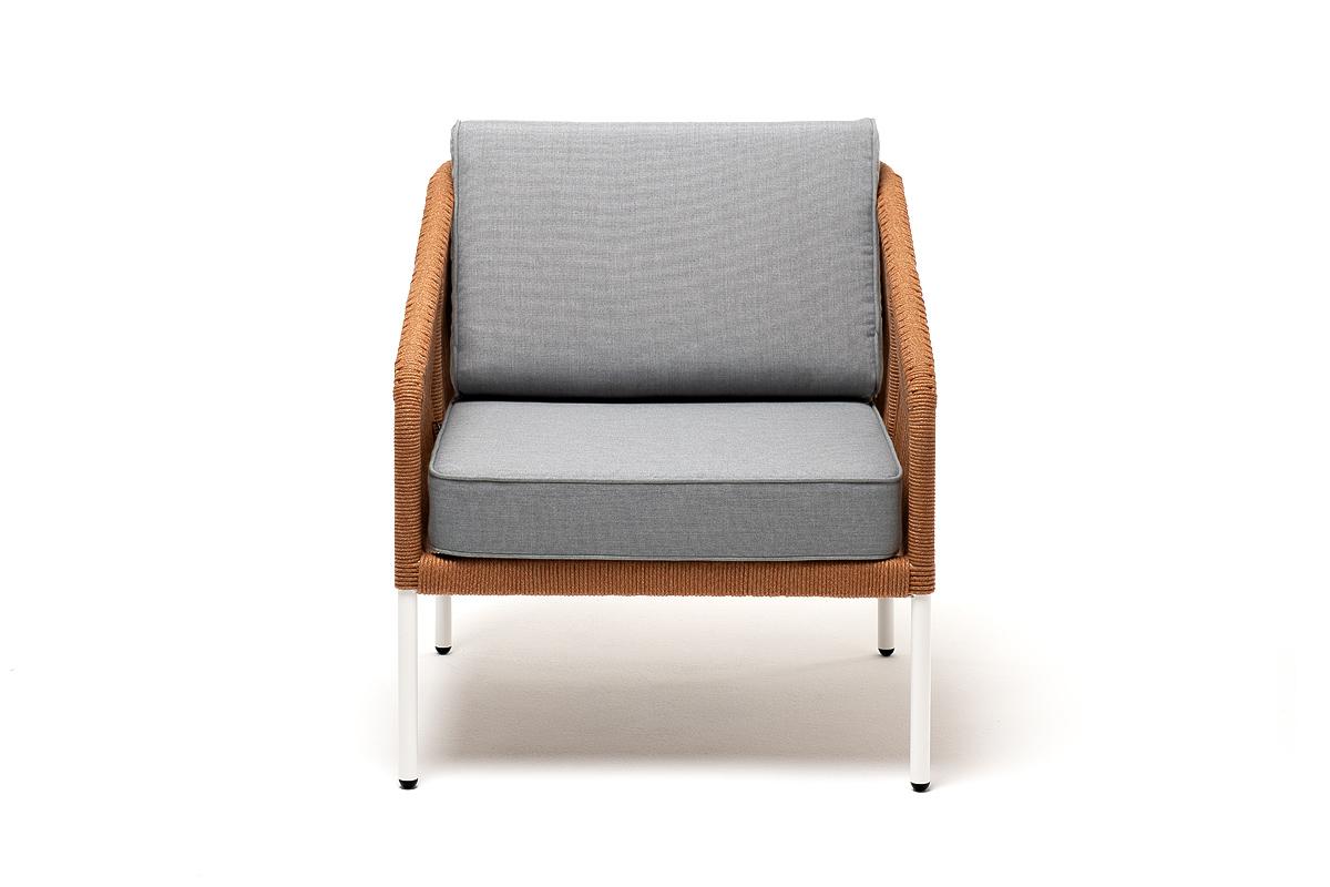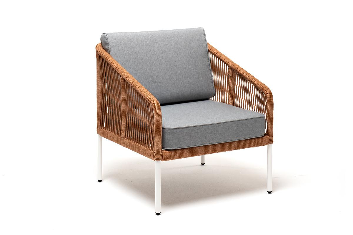 Кресло 4SIS "Канны" кресло плетеное из роупа, каркас алюминий светло-серый (RAL7035) муар, роуп светло-серый круглый, ткань светло-серая арт. KAN-A-001 RAL7035 Mua mel-orange(H-gray)