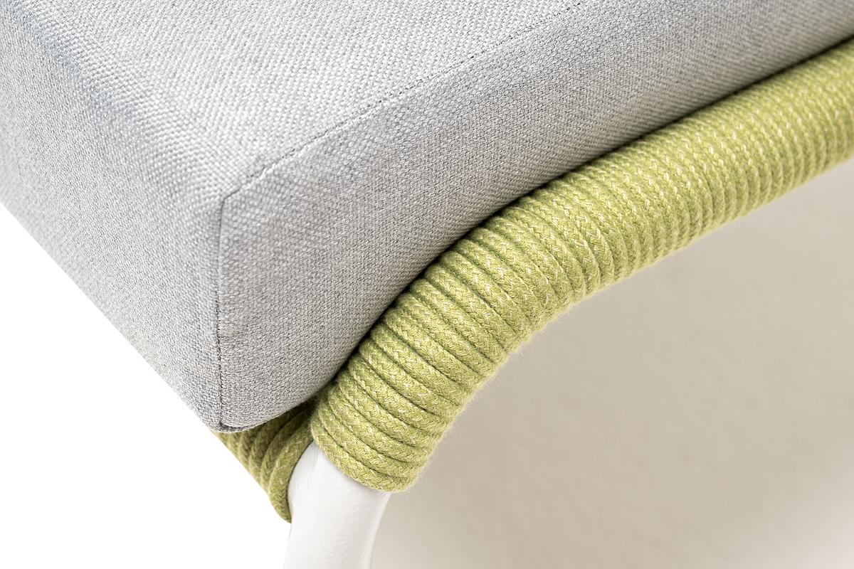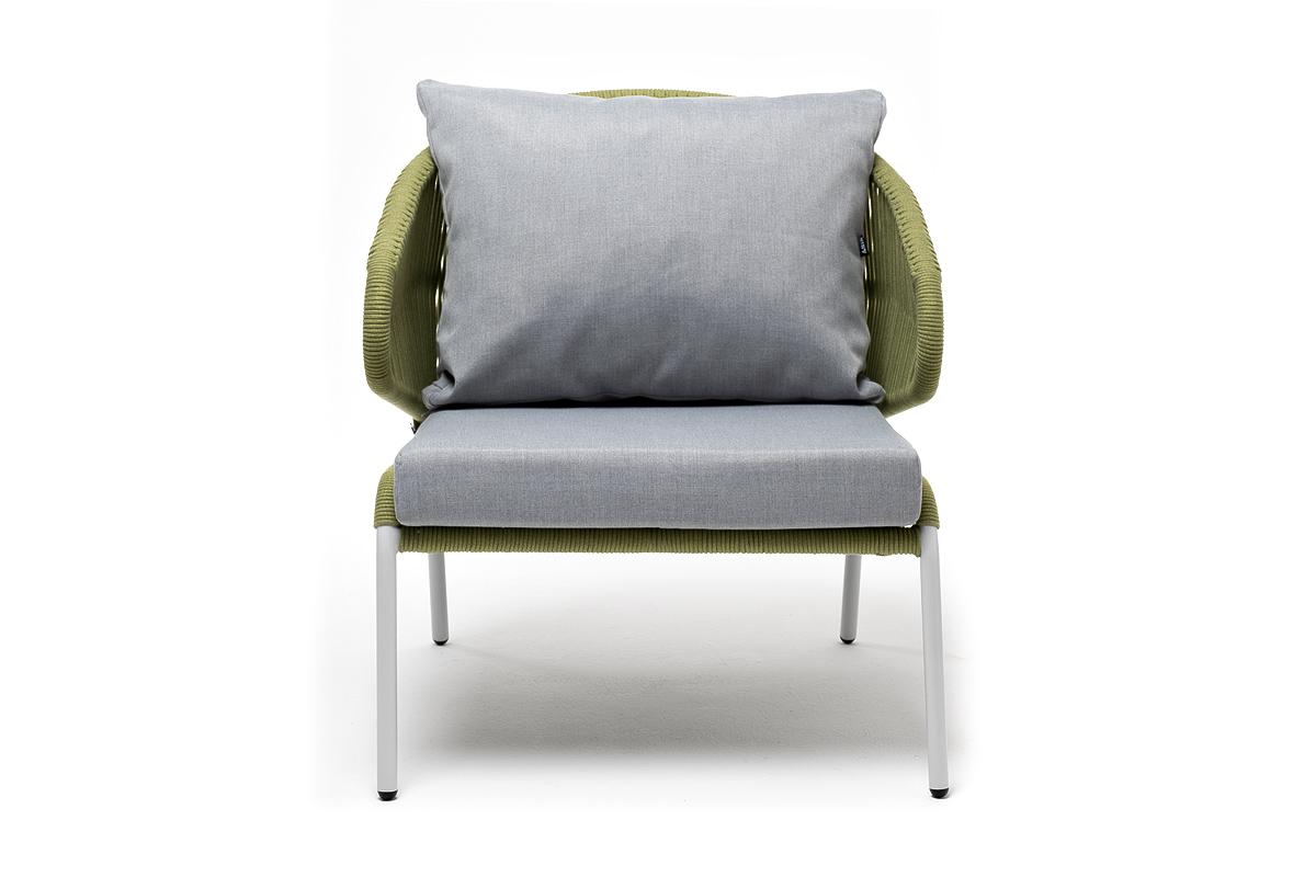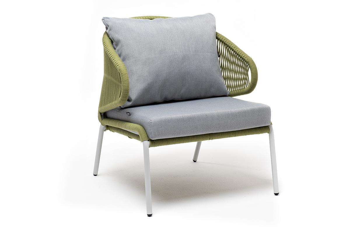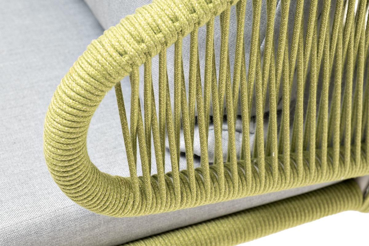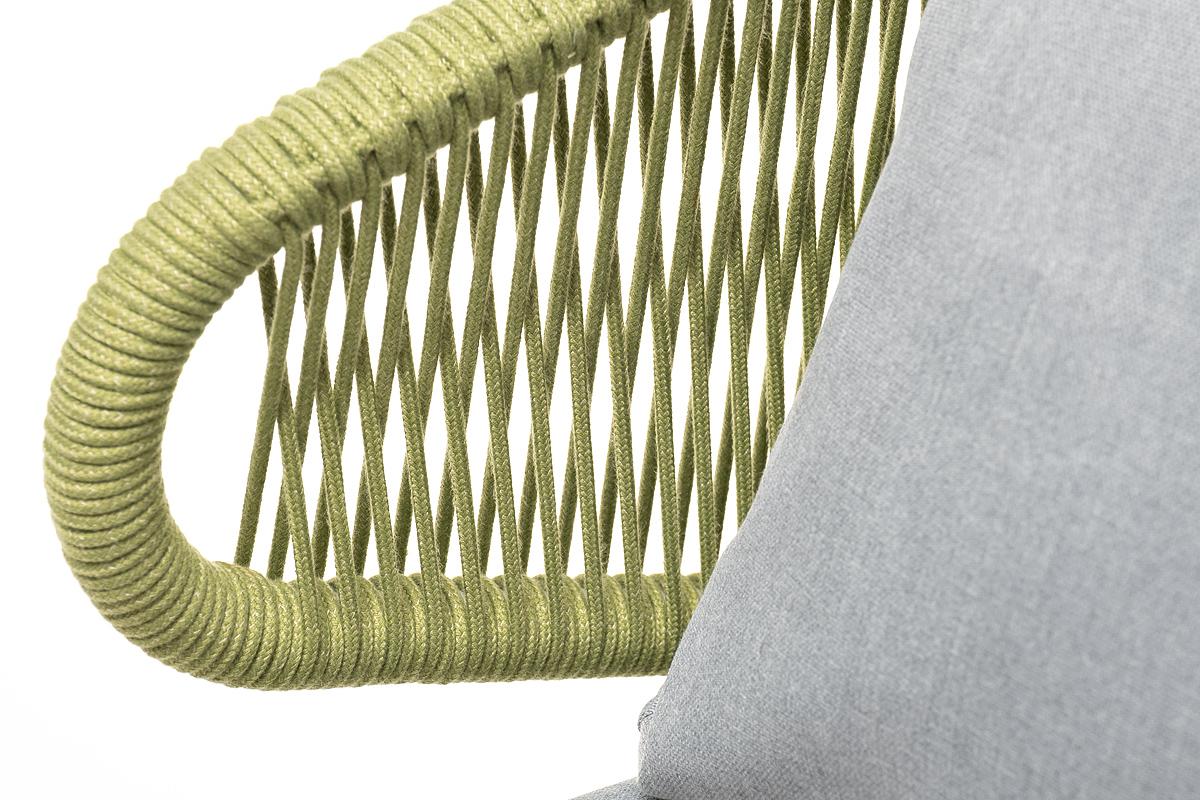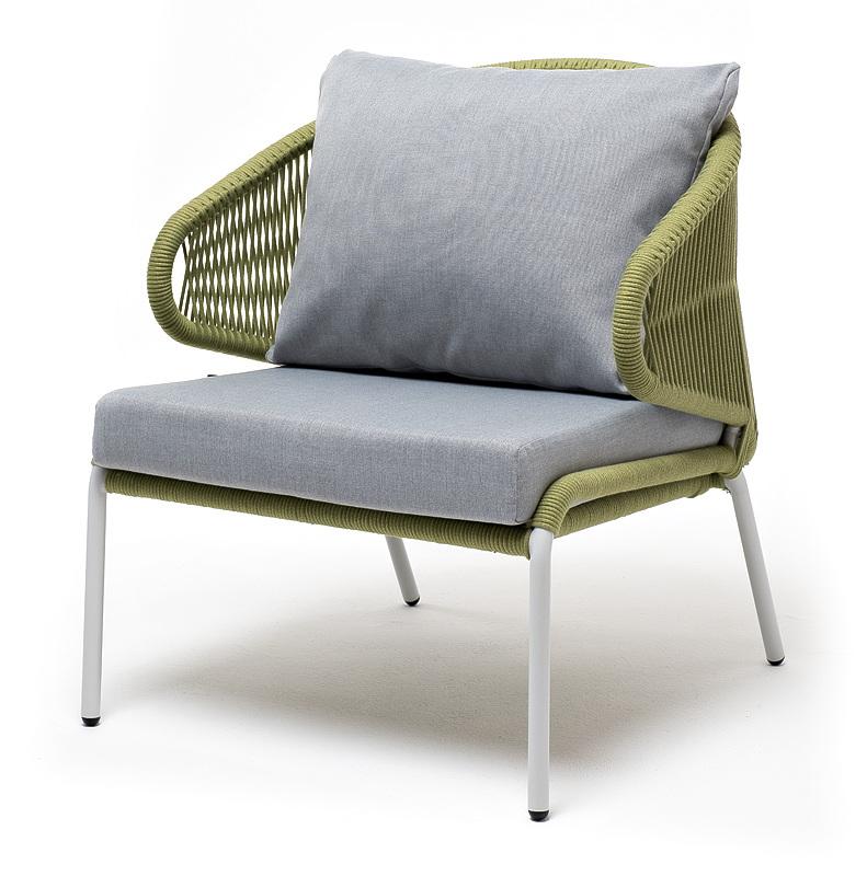 Кресло 4SIS "Милан" кресло плетеное из роупа, каркас алюминий светло-серый (RAL7035) муар, роуп салатовый меланж круглый, ткань светло-серая арт. MIL-A-001 RAL7035 Mua mel-green(H-gray)
