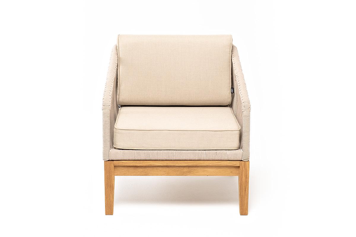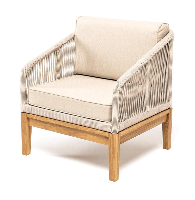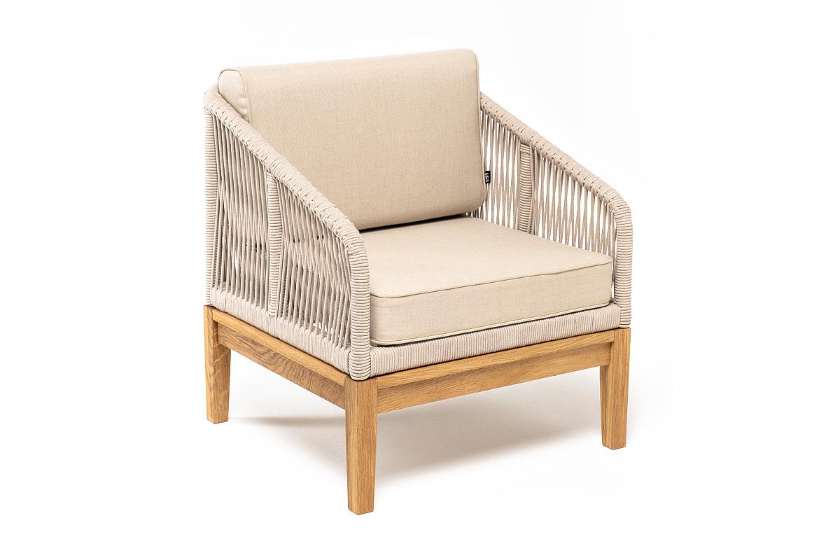Кресло 4SIS "Канны" кресло плетеное из роупа, основание дуб, роуп бежевый круглый, ткань бежевая 15052 арт. KAN-A-T002 beige(beige15052)