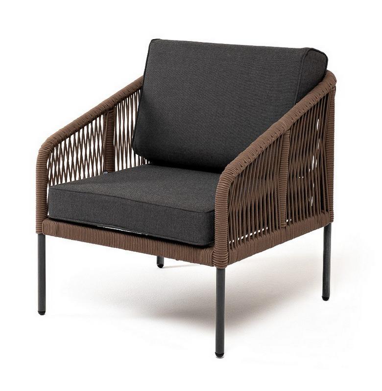 Кресло 4SIS "Канны" кресло плетеное из роупа (узелки), каркас алюминий темно-серый (RAL7024) муар, роуп темно-серый круглый, ткань темно-серая 027 арт. KAN-A-001 RAL7024 Mua brown(D-gray027)