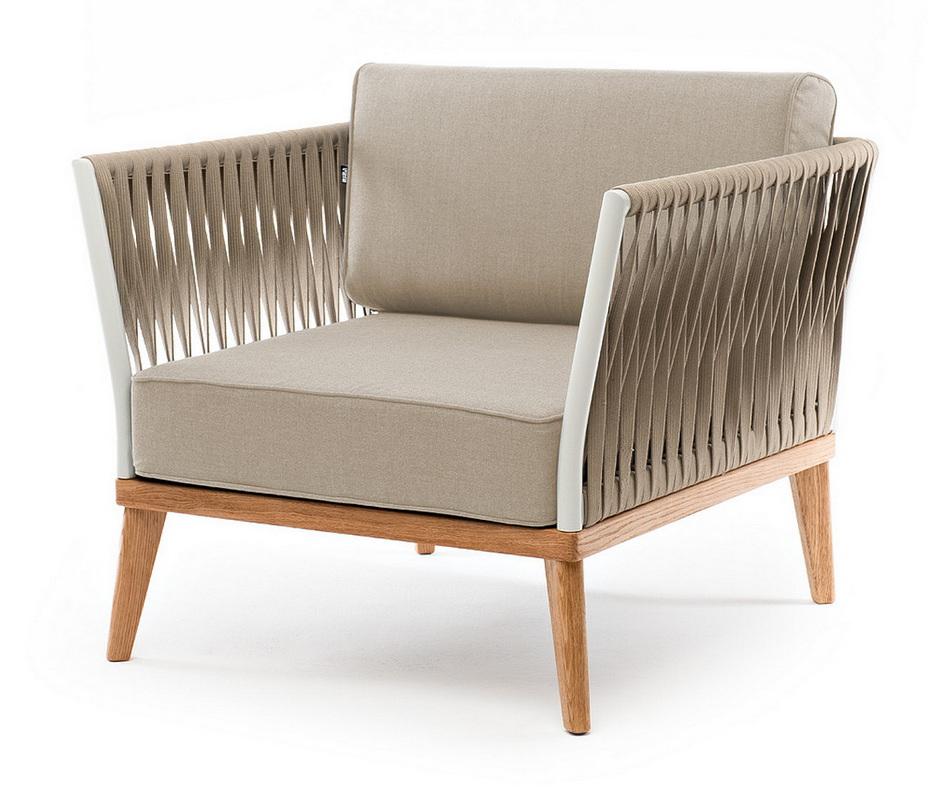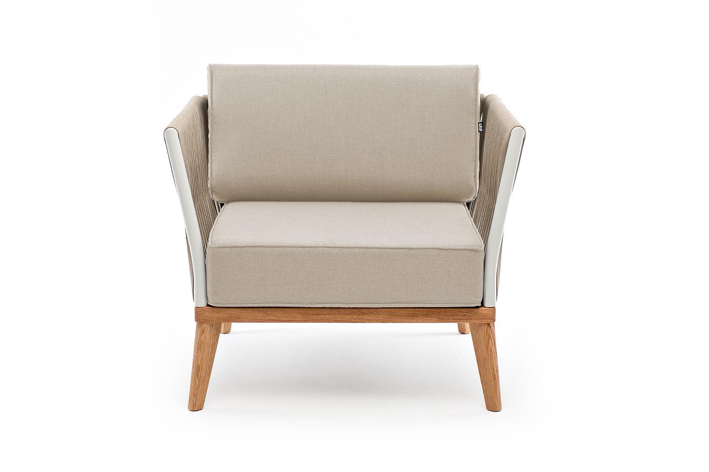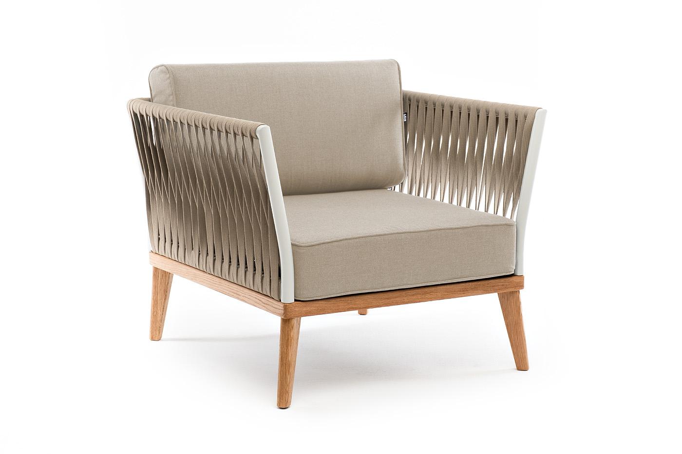 Кресло 4SIS "Касабланка" кресло плетеное из роупа, основание дуб, каркас алюминий светло-серый (RAL7035) муар, роуп серо-коричневый 23мм, ткань бежевая 15052 арт. KAS-A-T002 RAL7035 Mua G-brown(beige15052)