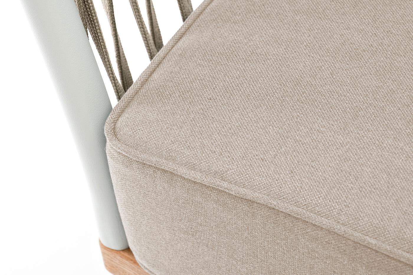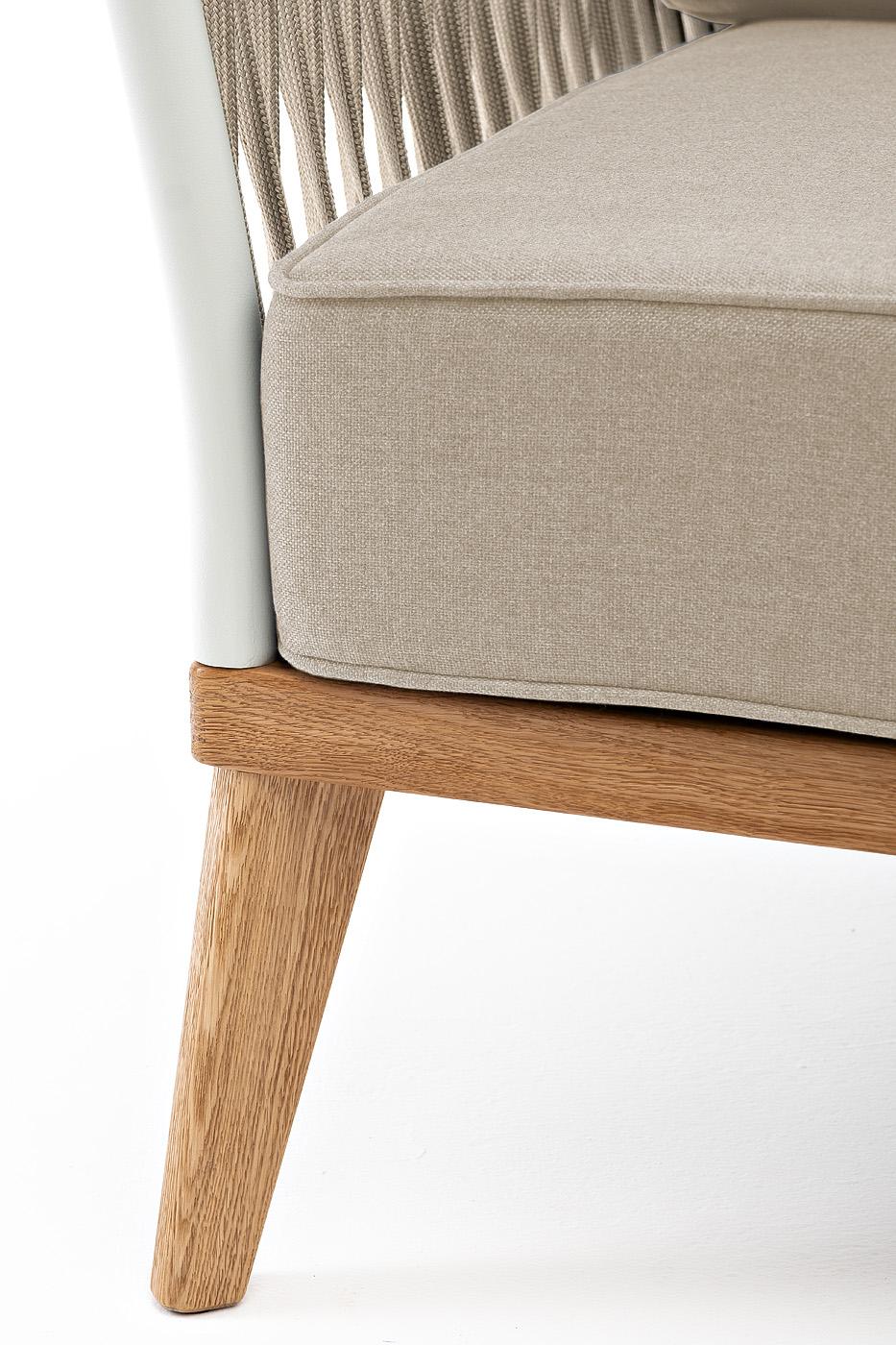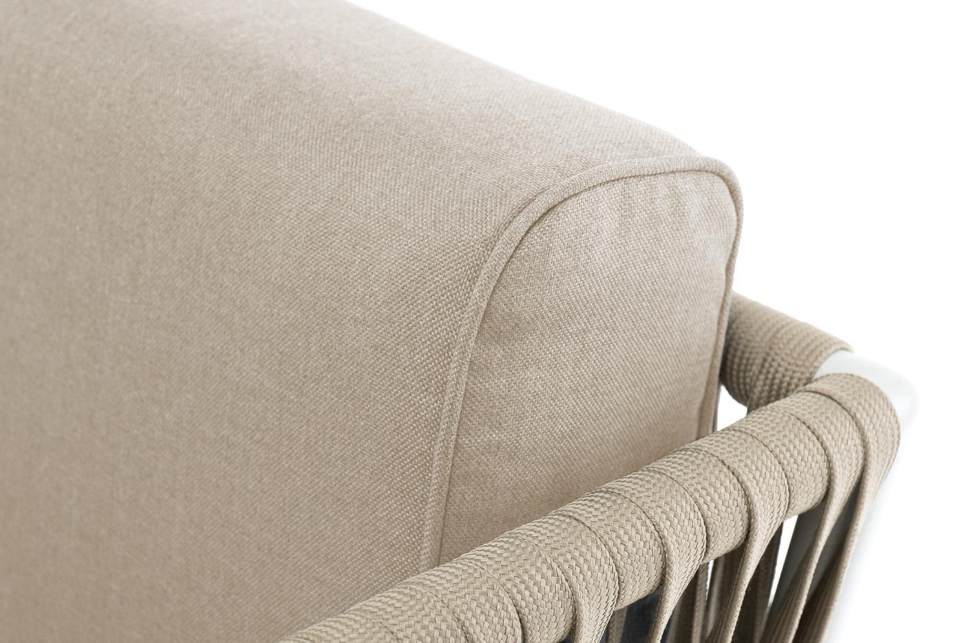 Кресло 4SIS "Касабланка" кресло плетеное из роупа, основание дуб, каркас алюминий светло-серый (RAL7035) муар, роуп серо-коричневый 23мм, ткань бежевая 15052 арт. KAS-A-T002 RAL7035 Mua G-brown(beige15052)