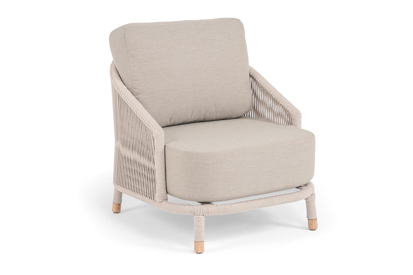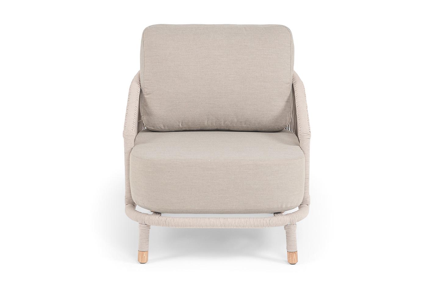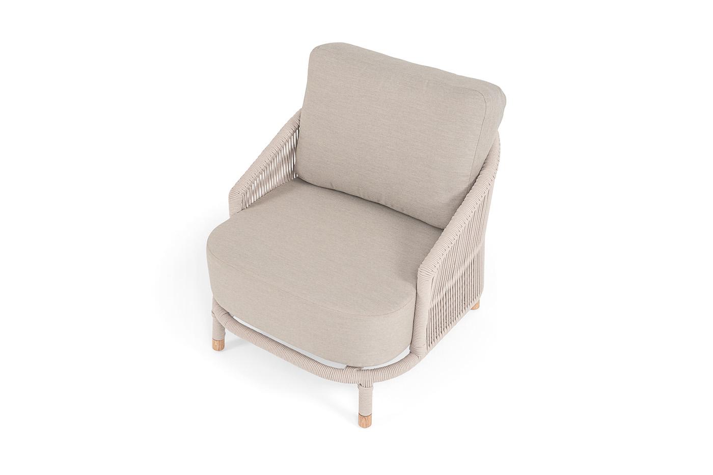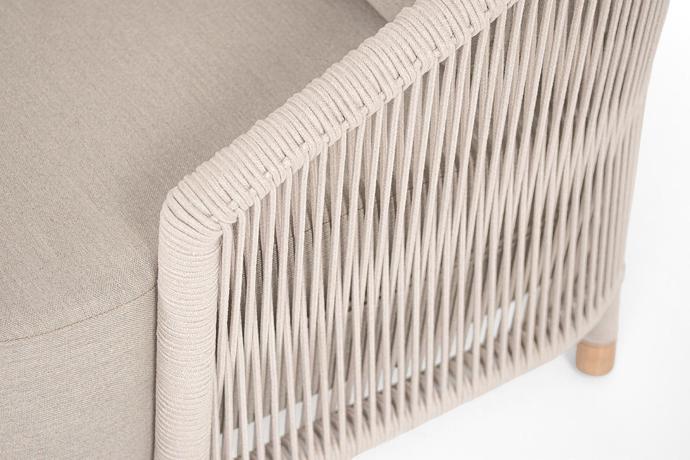Кресло 4SIS "Верона" кресло плетеное из роупа, каркас алюминий белый муар, роуп бежевый круглый, ткань бежевая 15052 арт. VER-A-002 W Mua beige(beige15052)