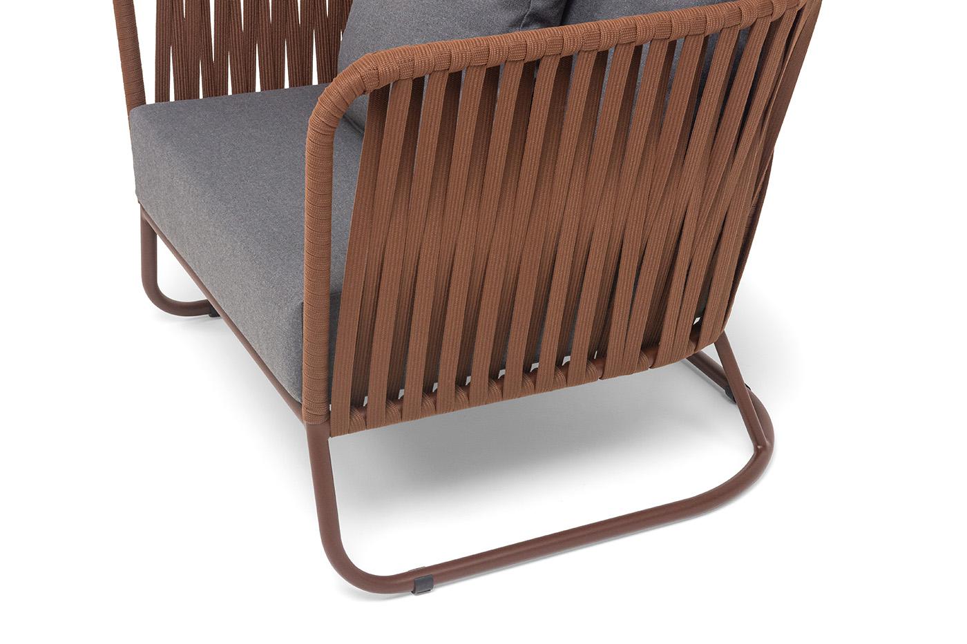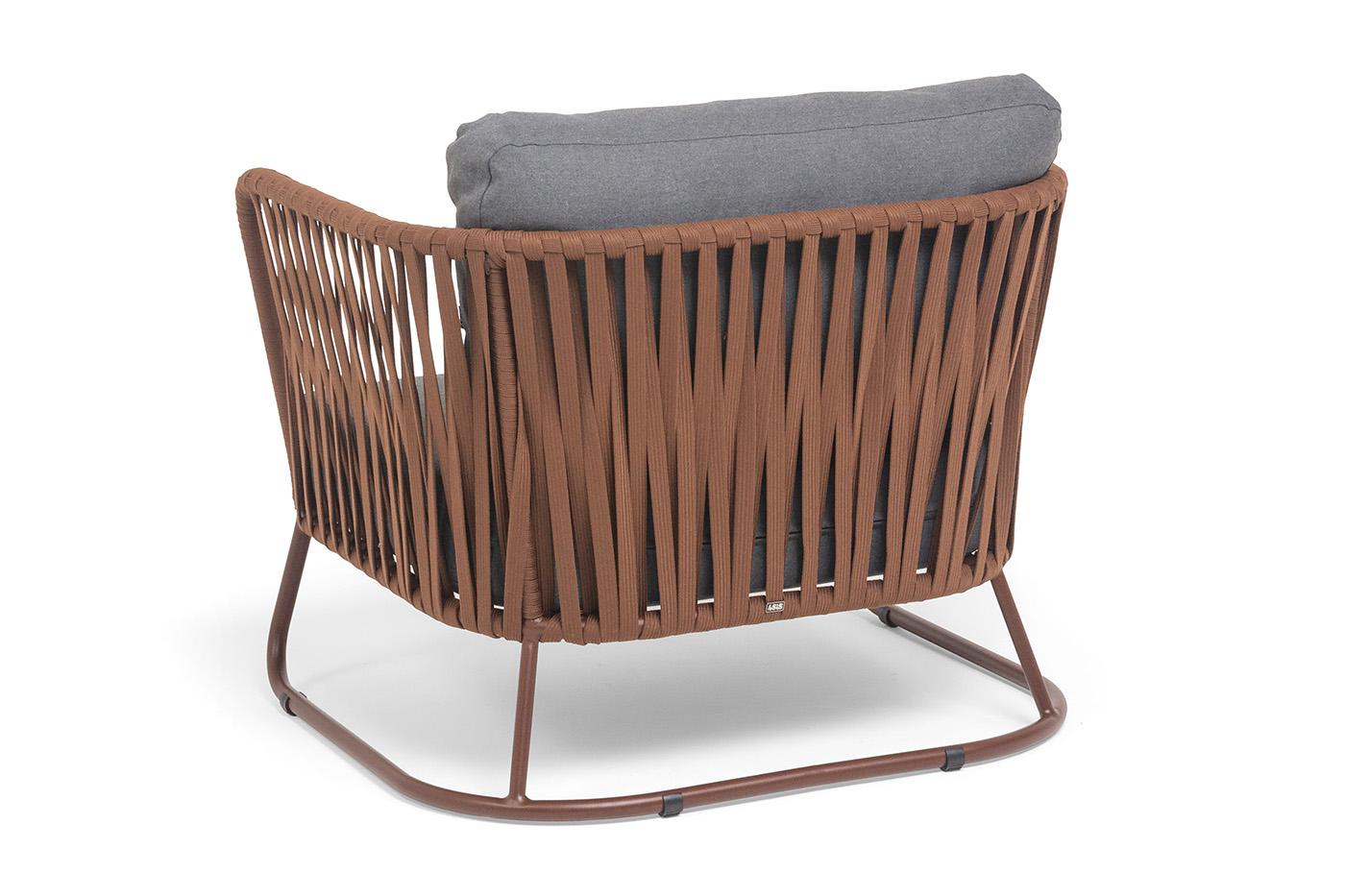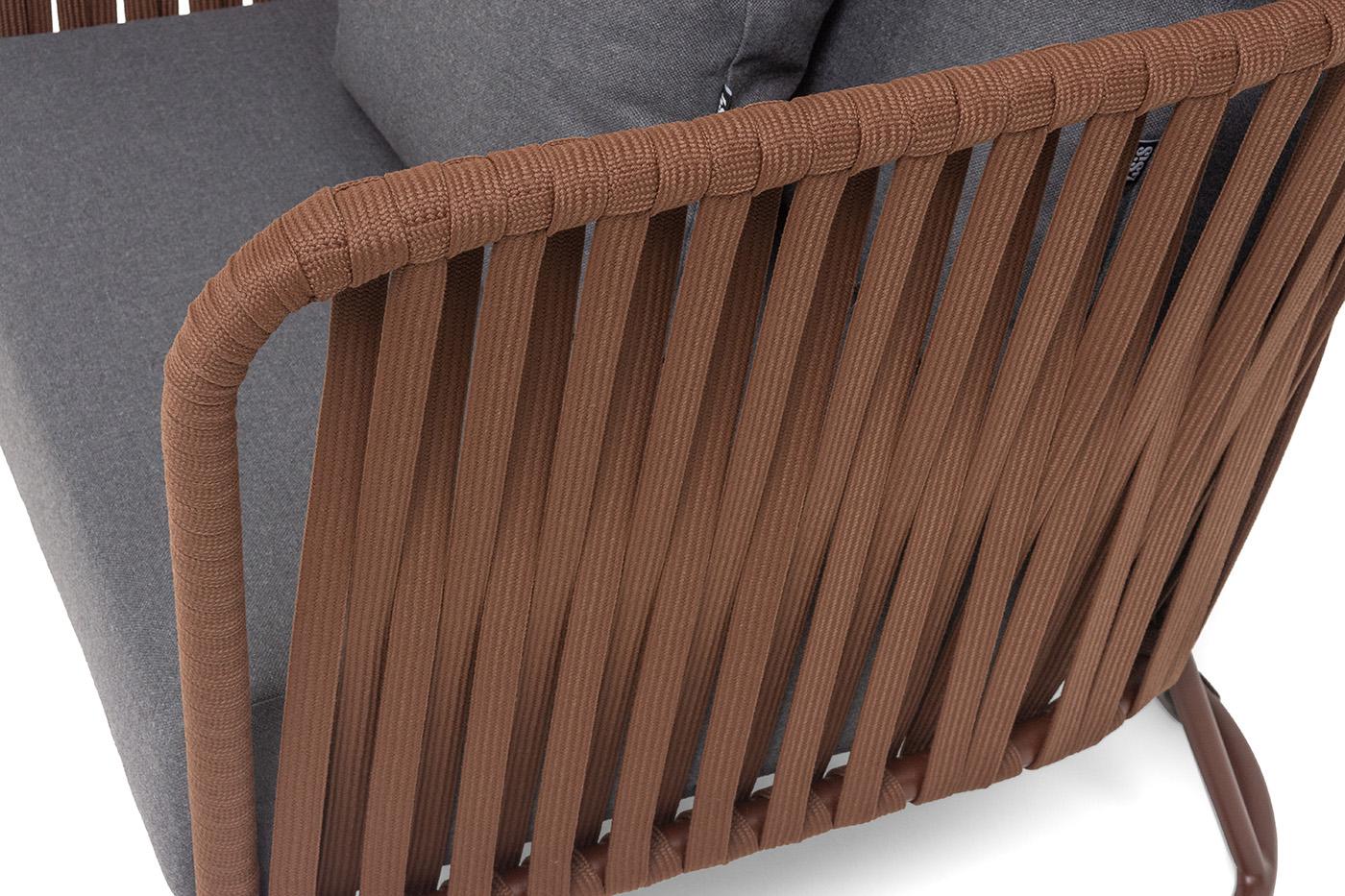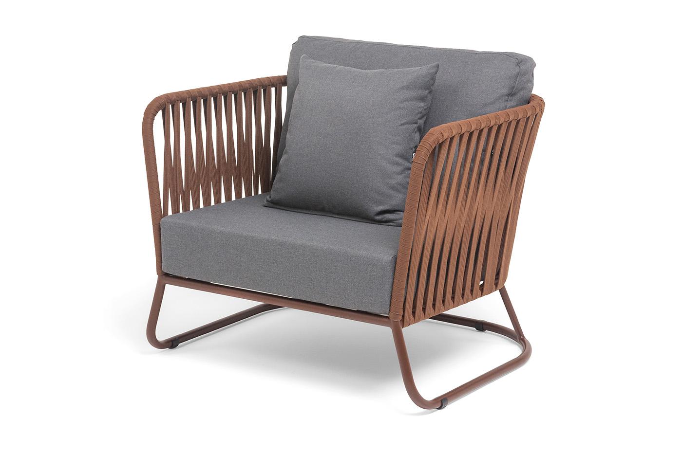 Кресло 4SIS "Багамы" кресло плетеное из роупа, каркас алюминий коричневый (RAL8016) муар, роуп BZ23-ED31, ткань темно-серая 027 арт. BAG-A-001 RAL8016 Mua BZ23-ED31 (D-gray027)