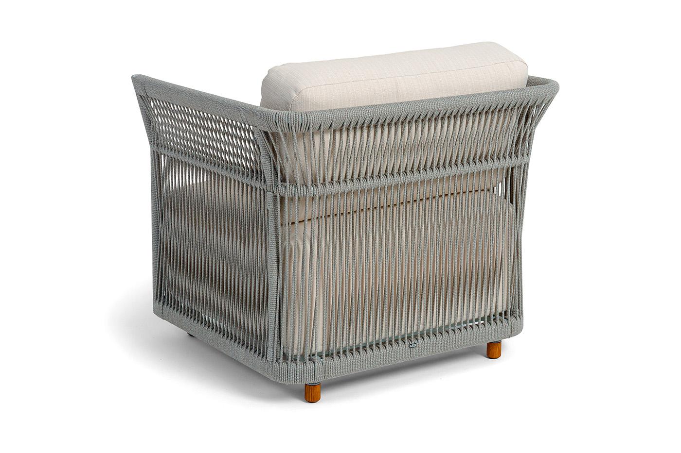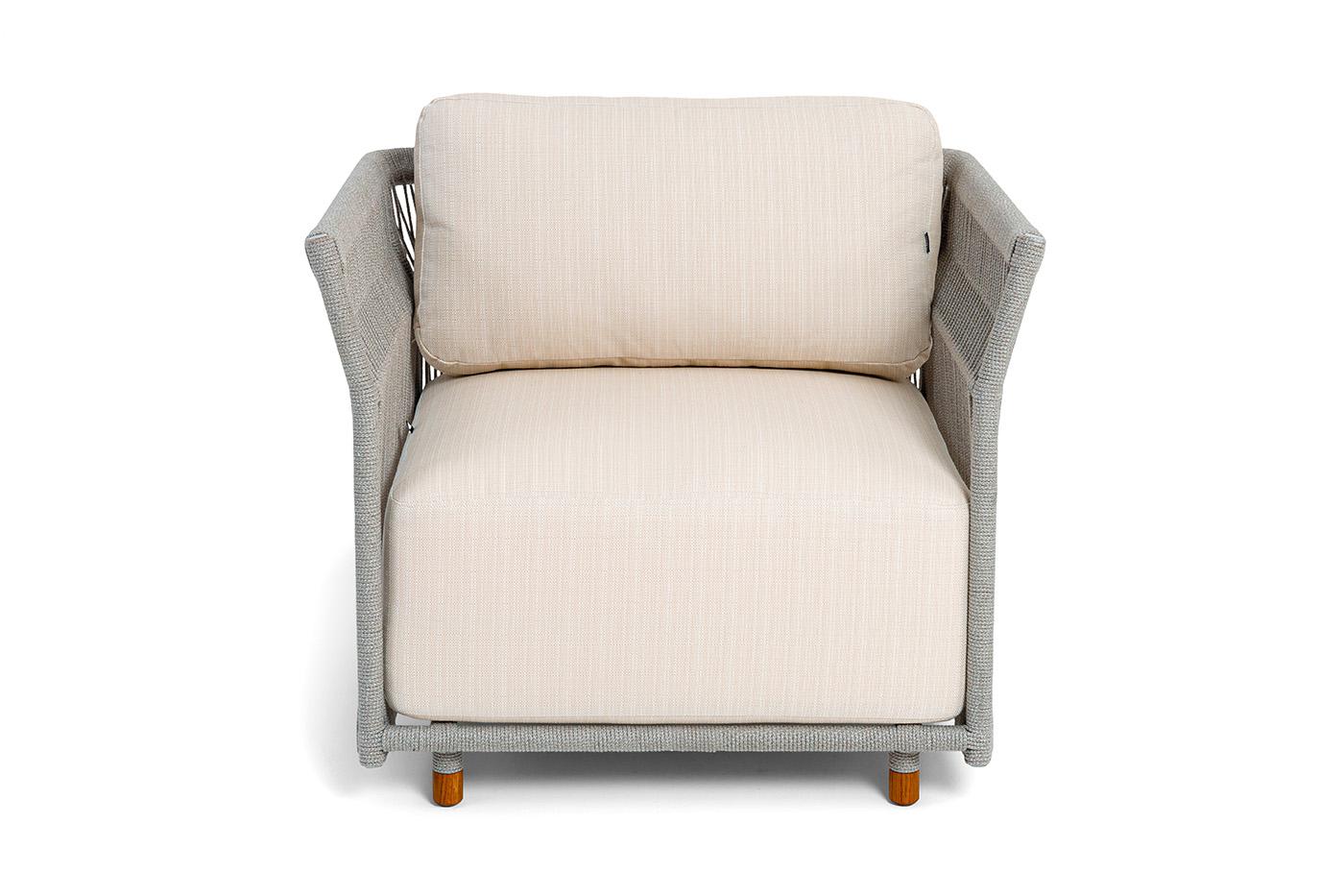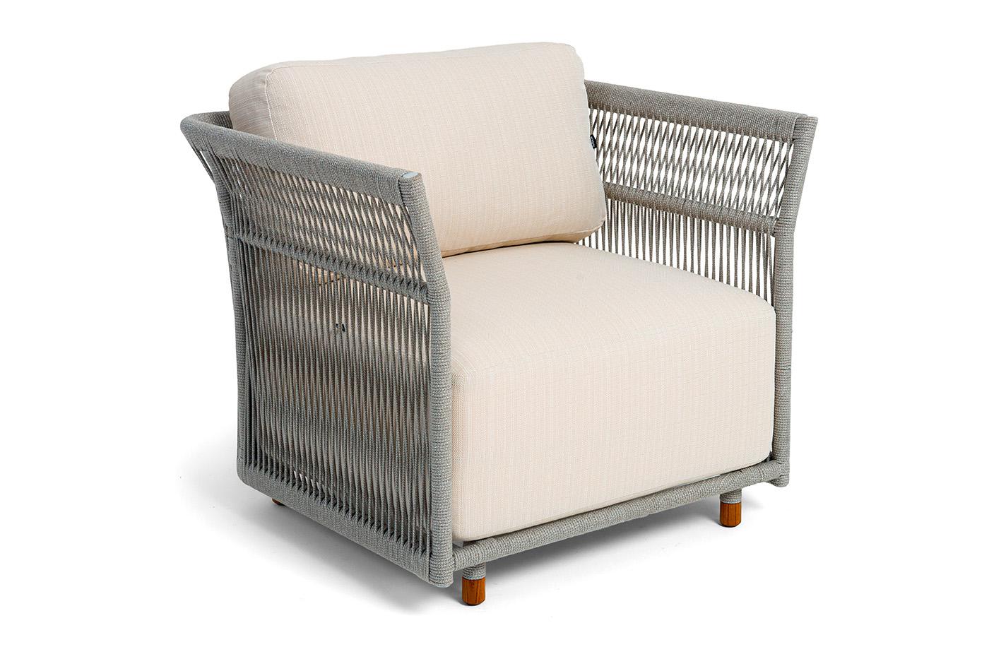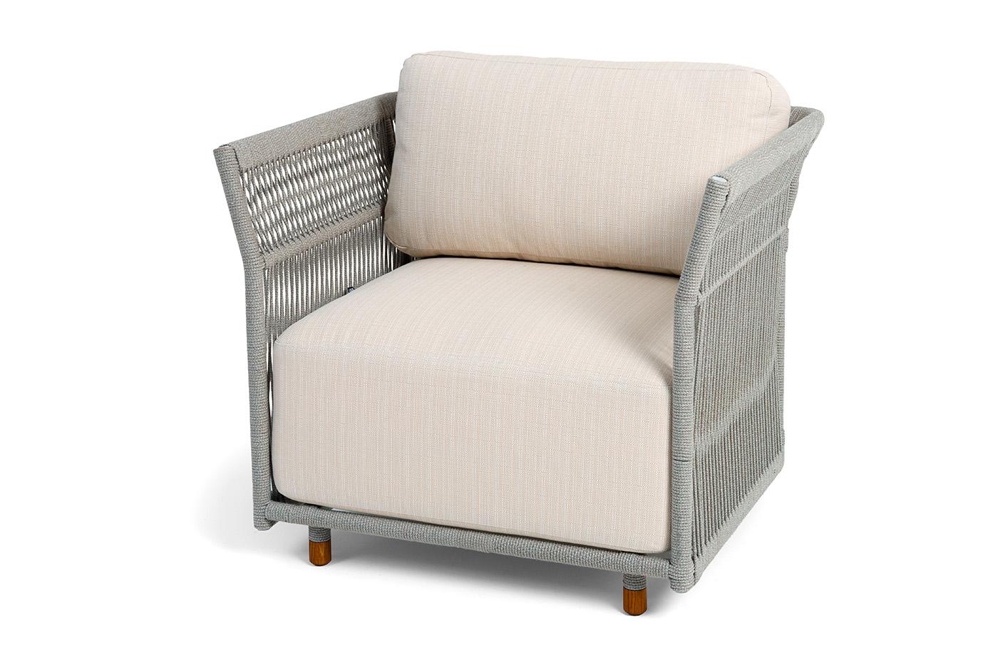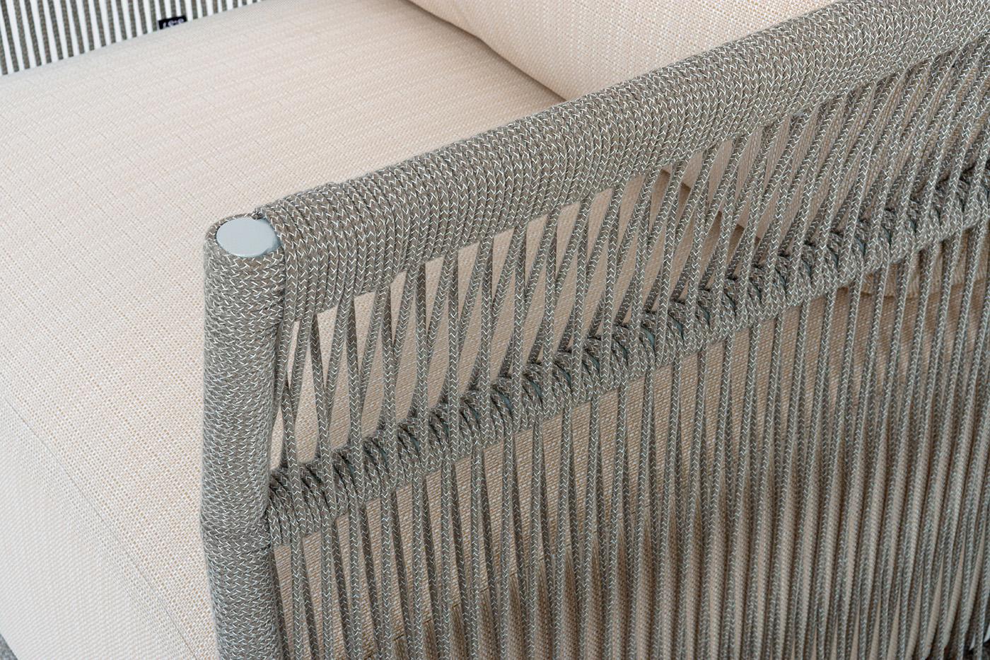 Кресло 4SIS "Лугано" кресло плетеное из роупа, каркас алюминий светло-серый (RAL7035) муар, роуп серый меланж круглый, ткань Mossle светло-бежевая арт. LUG-A-001 RAL7035 Mua mel-grey(beige100)