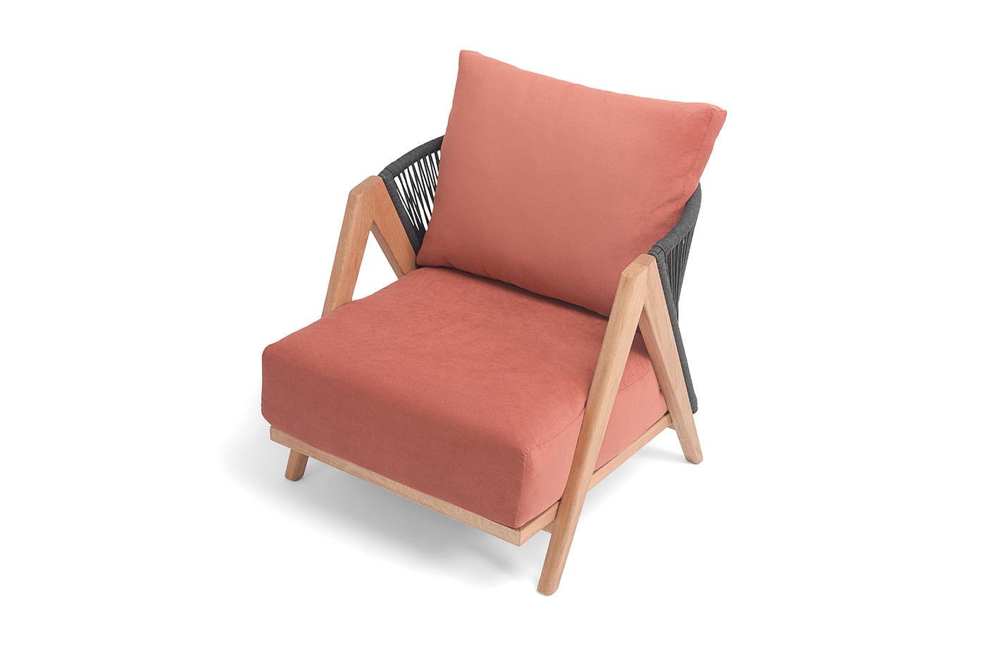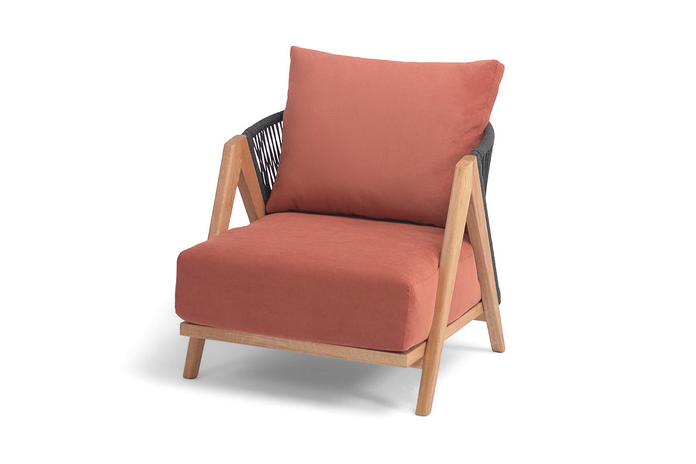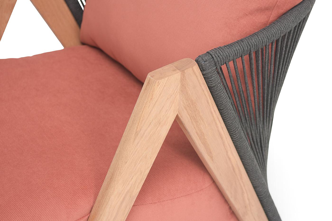 Кресло 4SIS "Гарда" кресло плетеное из роупа, основание дуб, роуп темно-серый круглый, ткань терракотовая арт. GAR-A-T002 D-grey(cloth)