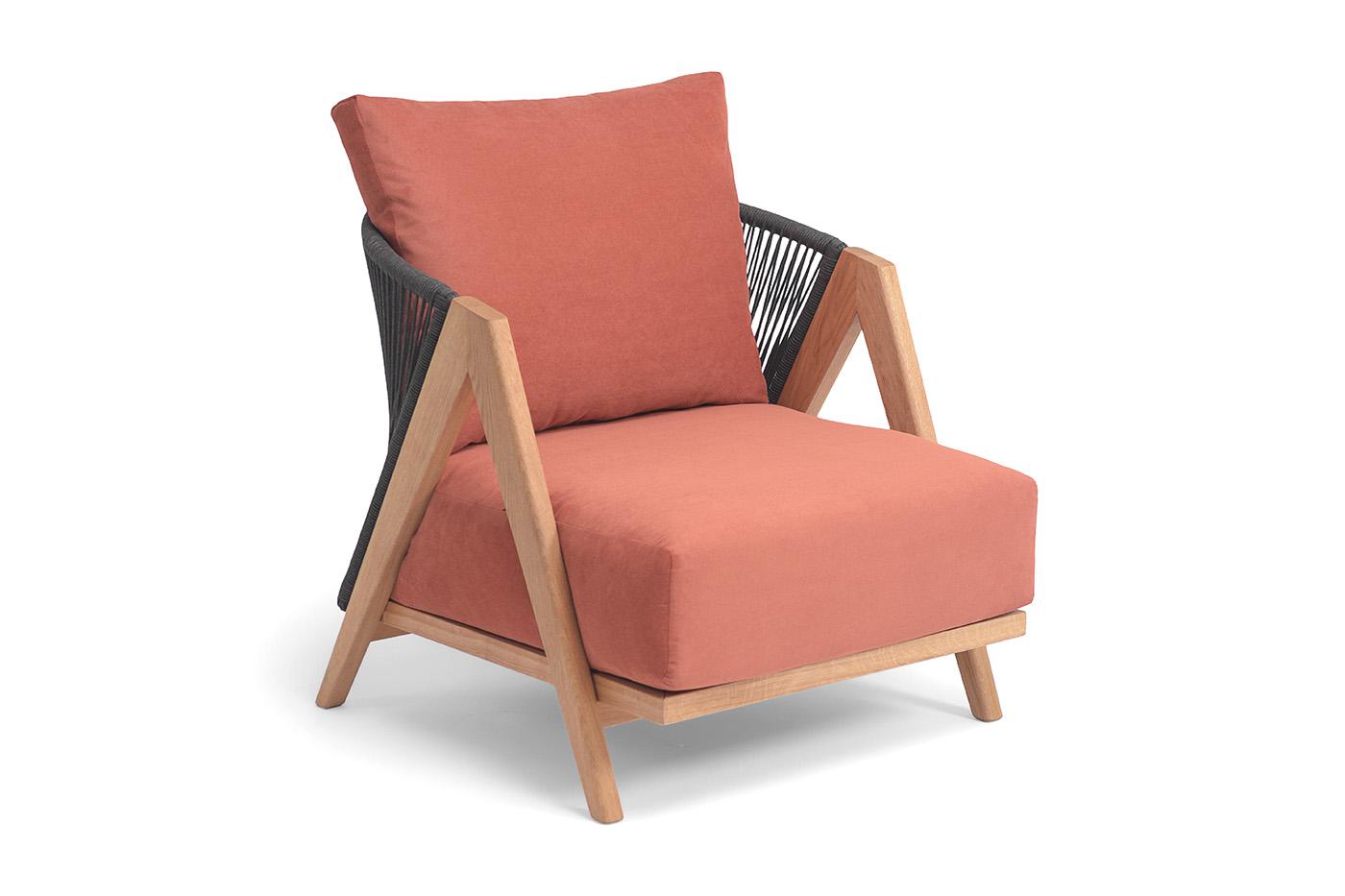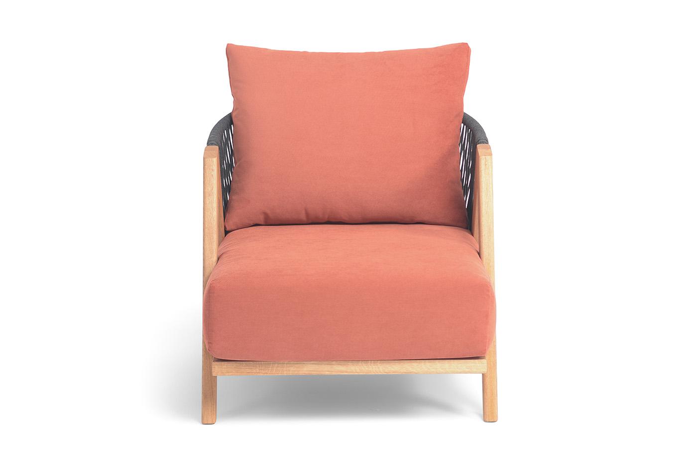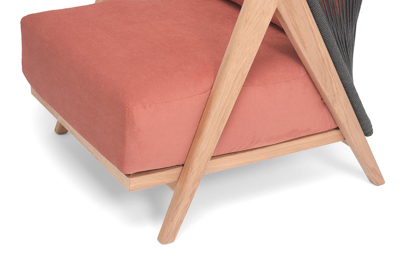 Кресло 4SIS "Гарда" кресло плетеное из роупа, основание дуб, роуп темно-серый круглый, ткань терракотовая арт. GAR-A-T002 D-grey(cloth)