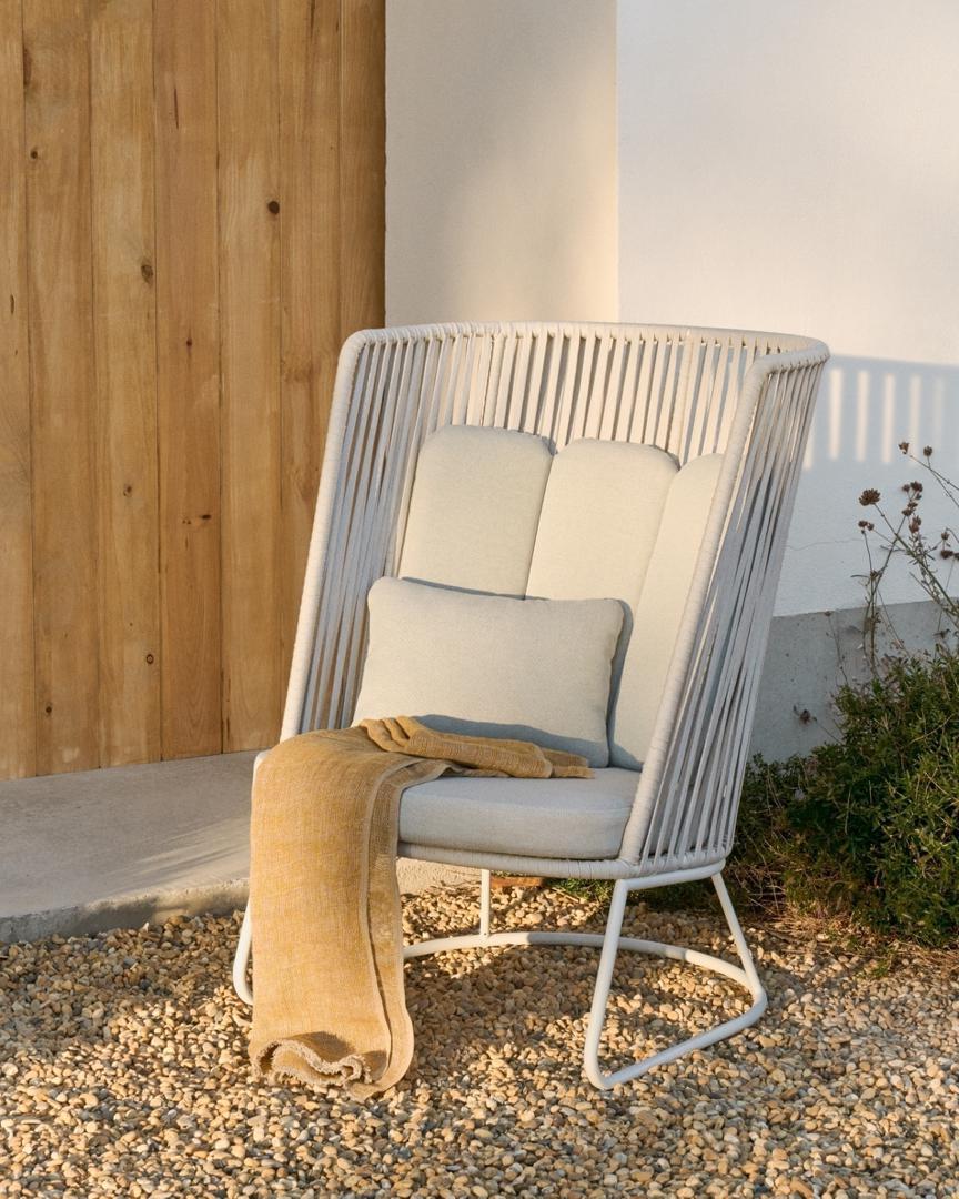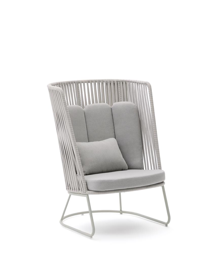Кресло La Forma (ех Julia Grup) Уличное кресло Saconca с высокой спинкой из веревочного шнура и серой оцинкованной стали арт. 254420