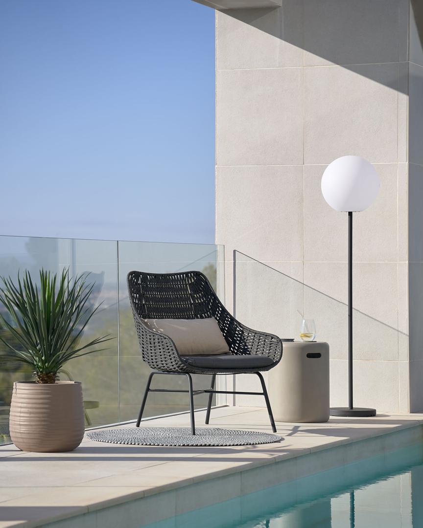 Веревочное кресло Abeli от фабрики La Forma (ex Julia Grup) – бесподобный колониальный стиль с защитой от атмосферных воздействий. Веревочное кресло Abeli позволит чувствовать себя спокойно и расслабленно на вашей террасе или в цветущем саду. Надежная защита от солнца и влаги, и модный колониальный дизайн – главные достоинства этой модели. Спокойная цветовая гамма и обтекаемая форма позволят этой мебели вписаться в ваш уличный интерьер. А удобство обеспечат широкая спинка и мягкая подушка. Наслаждайтесь свежестью! Кресло имеет металлический каркас (оцинкованная сталь), который покрыт черной порошковой краской, защищающей от коррозии. Структура у каркаса трубчатая. Сиденье имеет плетеную фактуру из прочного синтетического шнура (95% полипропилен, 5% полиэстер) с пропиткой от негативного воздействия солнечных лучей. Сиденье дополнено подушкой серого цвета. Чехол подушки съемный, сшит из 100% прочного полиэстера с защитой от выгорания. Его можно стирать в машинке при температуре не выше 30 градусов. Наполнитель – пена плотностью 25 кг/м3. Устойчивость креслу обеспечивают пластичные наконечники на ножках, которые также защищают металл от непосредственного контакта с влагой. Допустимая максимальная нагрузка – 130 кг. Размеры: ширина – 68 см, высота – 85 см, глубина – 76 см. Вес изделия – 11,25 кг. Изделие поставляется в собранном виде. В коллекции Abeli кресла представлены в четырех цветах – бежевом, терракотовом, зеленом, черном.