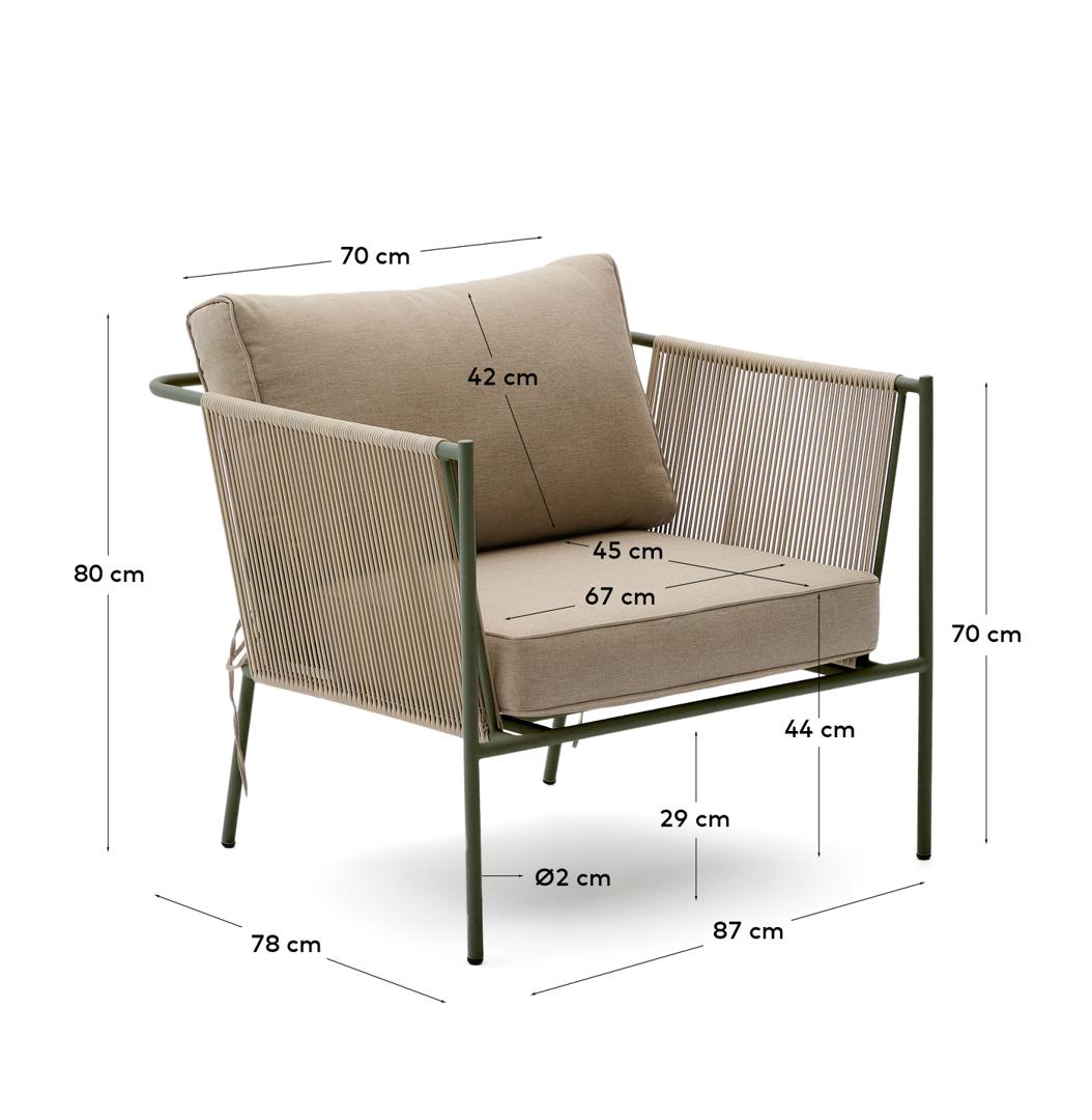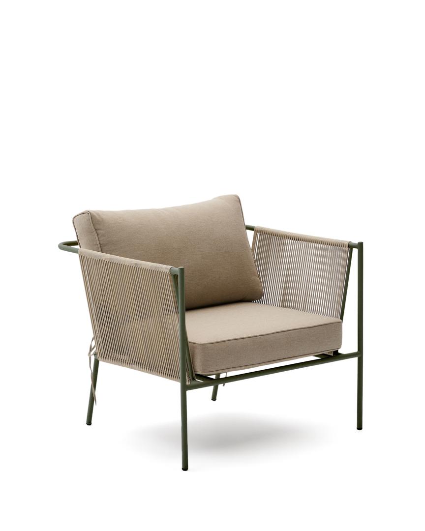 Кресло La Forma (ех Julia Grup) Уличное кресло Zivia из веревки цвета экрю и стали зеленого цвета арт. 254522