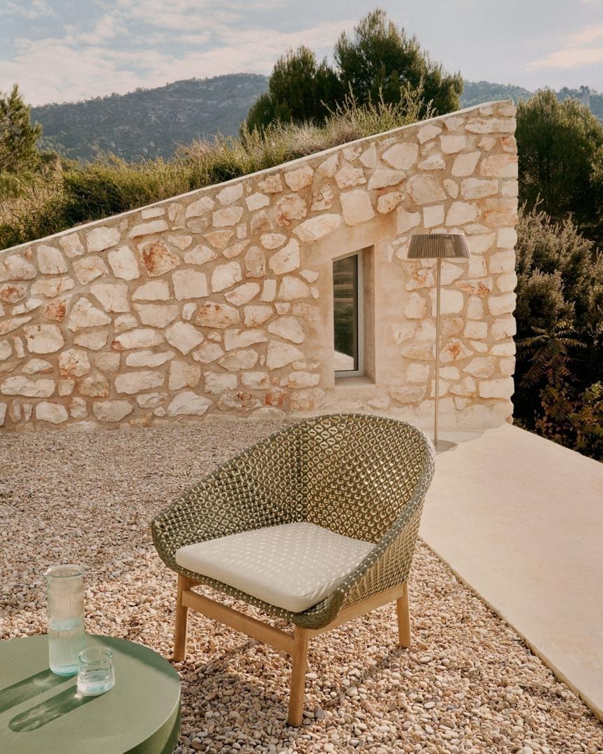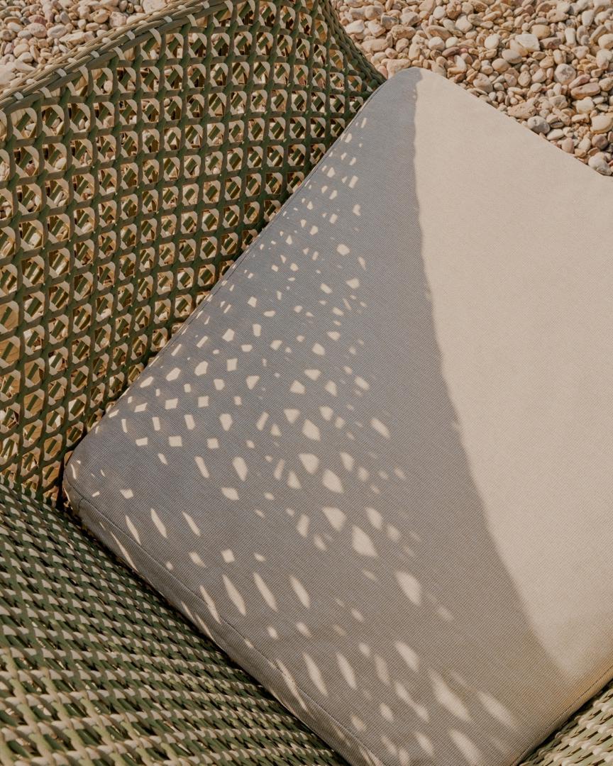 Каждая деталь конструкции Olbia демонстрирует баланс эстетики и функциональности, что делает ее идеальным дополнением для открытых пространств с индивидуальностью. Ее сиденье и спинка, тщательно сплетенные вручную из высококачественного синтетического ротанга, и ее устойчивый к ультрафиолетовому излучению канатный шнур обеспечивают долговечность. Подушки, разработанные с учетом комфорта и практичности, имеют съемные чехлы для легкого ухода, а пена и чехол обладают водоотталкивающими свойствами, что идеально подходит для использования на открытом воздухе под навесом. Чтобы сохранить их, мы рекомендуем использовать средства по уходу за тиковым деревом два раза в год.