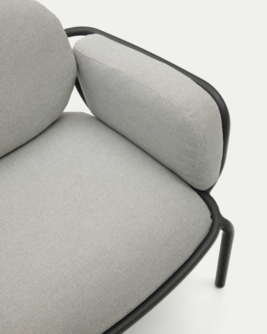 Кресло Joncols от фабрики La Forma (ex Julia Grup) – эксклюзивный дизайн из алюминия для открытых пространств. Кресло Joncols удивляет своим стилем. Здесь оригинальный каркас объединен с подушками, которые демонстрируют мягкость и комфорт. Защита от атмосферных воздействий – повод выставить кресло на открытое пространство. И оно там задаст новую тенденцию вашей обстановке. Интерьер будет в тренде! Кресло металлическое (100% алюминий), окрашено в серый или зеленый цвет по методу порошкового нанесения краски. Так поверхность идеально гладкая и защищена от появления коррозии и негативного воздействия ультрафиолета. Структура кресла реечная, что с одной стороны делает его вес меньше не в ущерб надежности, а с другой обеспечивает быстрое высыхание после осадков. Ножки дополнены наконечниками, которые улучшают устойчивость на неровной поверхности. Сиденье состоит из четырех подушек серого цвета. Чехлы сшиты из синтетической уличной ткани. Она отличается износостойкостью, не портится от ультрафиолетового излучения и влаги. Чехлы съемные. Их можно стирать в машинке или чистить вручную с мягким моющим средством. Максимальная нагрузка на кресло – 130 кг. Размер: ширина – 89 см, высота – 72 см, глубина – 80 см. Вес изделия – 11,5 кг. В коллекцию Joncols также входят журнальные столики, стул, диван. Рекомендации по уходу: чистка мягким моющим средством, не использовать без навеса в сезон дождей.