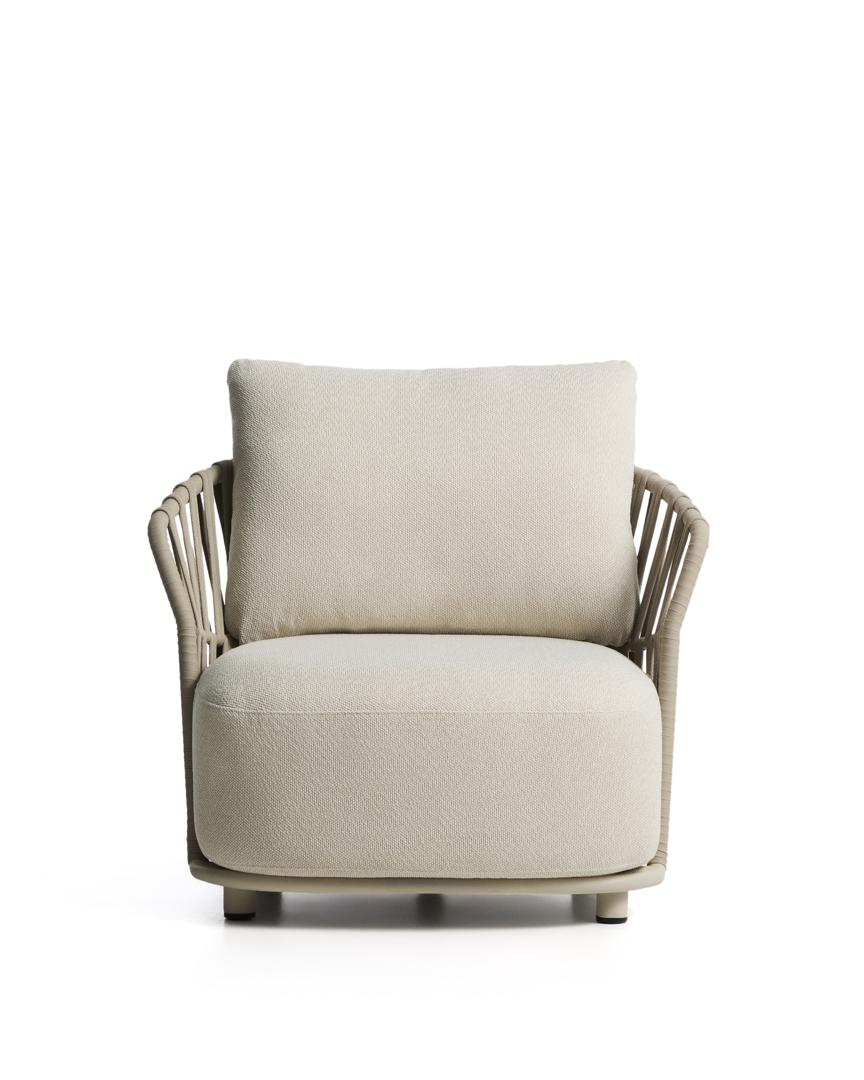 Коллекция Osani создана для того, чтобы гармонично дополнять интерьер и экстерьер, придавая им спокойствие. Алюминиевая конструкция обеспечивает легкость и устойчивость к ржавчине, коррозии и УФ-излучению, что делает ее предназначенной для длительного использования на открытом воздухе. Спинка, выполненная из плетеного вручную шнура, подчеркивает характер изделия и обеспечивает комфортную поддержку, сохраняя при этом хорошее состояние под воздействием солнечных лучей. Подушки имеют съемные чехлы для удобства ухода; мы рекомендуем хранить их в недоступном для дождливых дней месте.