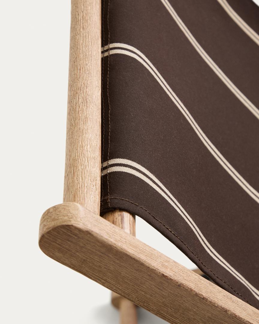 Складной шезлонг с подлокотниками — идеальное сочетание практичного дизайна и естественной эстетики для наслаждения отдыхом на природе. Его конструкция, выполненная из массива акации с матовой отделкой, выделяется своими уникальными оттенками и текстурой, придавая каждому изделию неповторимый шарм. Древесина сертифицирована по стандарту FSC™ 100% цепочки поставок, что подтверждает ответственное лесопользование. Спинка и сиденье изготовлены из высокопрочной ткани, рассчитанной на эксплуатацию на открытом воздухе.