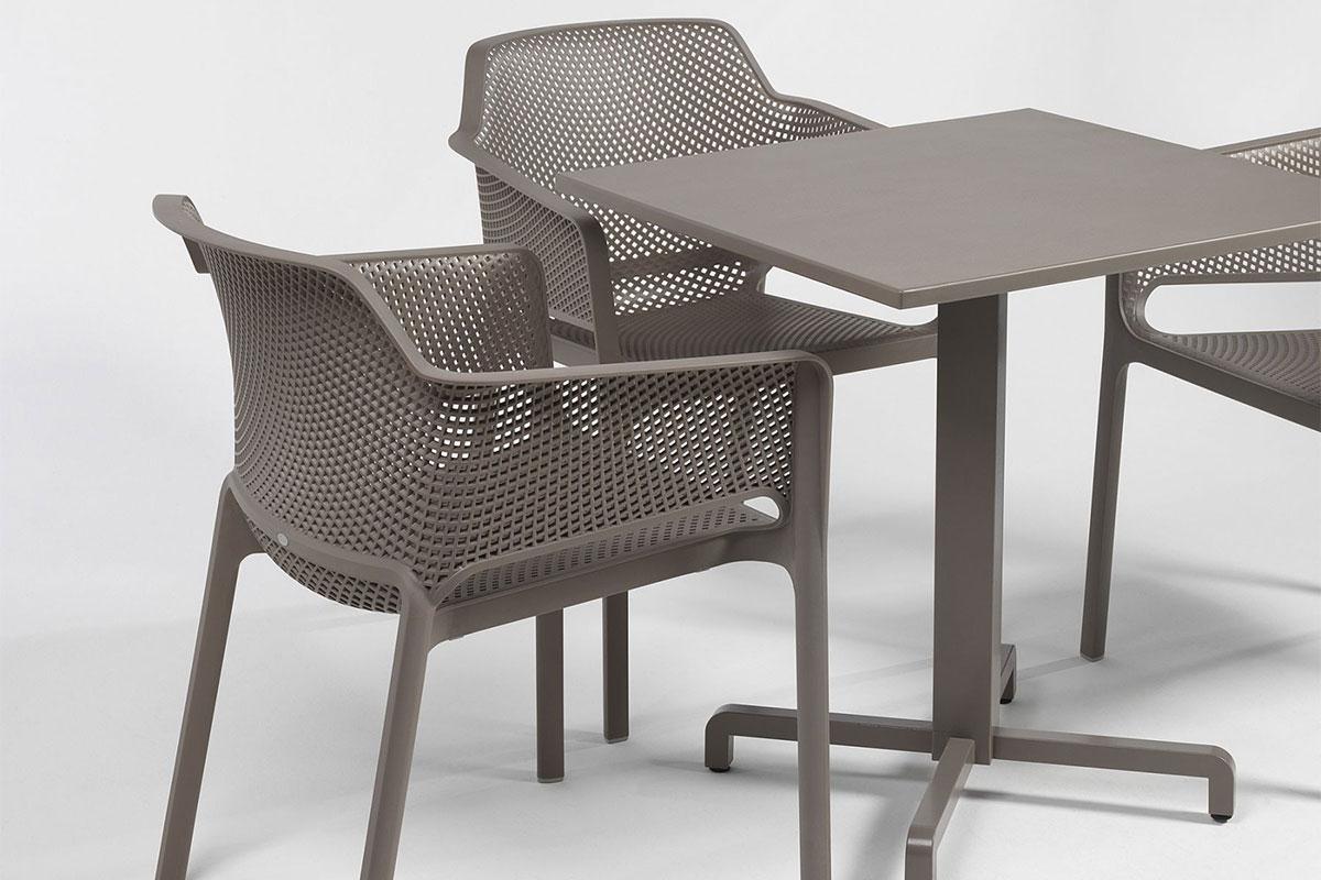 Цельнолитое кресло Net имеет эргономичную форму и прекрасно подойдет для организации обеденных зон на верандах летних кафе или патио.