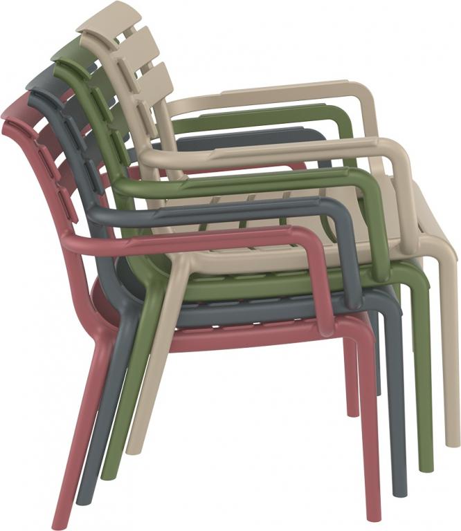 Siesta предлагает чрезвычайно широкий ассортимент изделий для помещений и на открытом воздухе с бесчисленными цветовыми вариациями, с использованием пластиковых материалов, таких как полипроплен и стекловолокно, в сочетании с деревом или металлом, или последних тенденций, таких как прозрачный поликарбонат или глянцевый нейлон PA6, с высокими техническими характеристиками, которые придают изделию неповторимые качества, такие как мягкость, непрозрачность, гибкостьи устойчивость к атмосферным воздействиям.