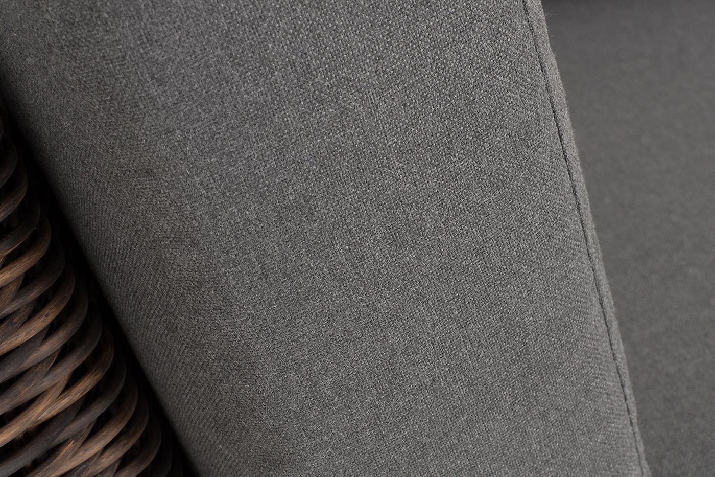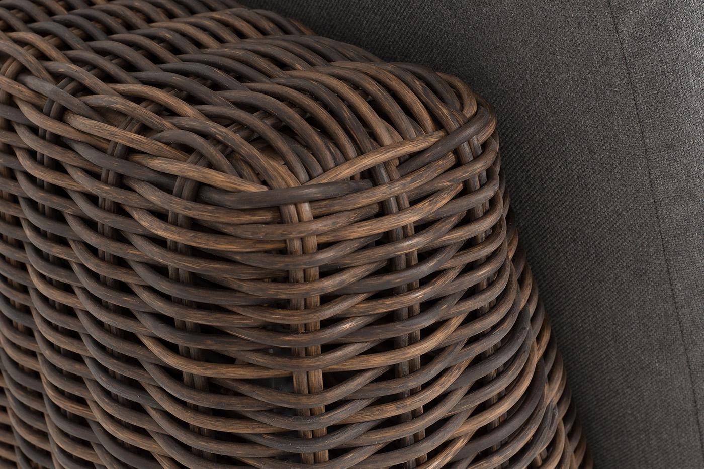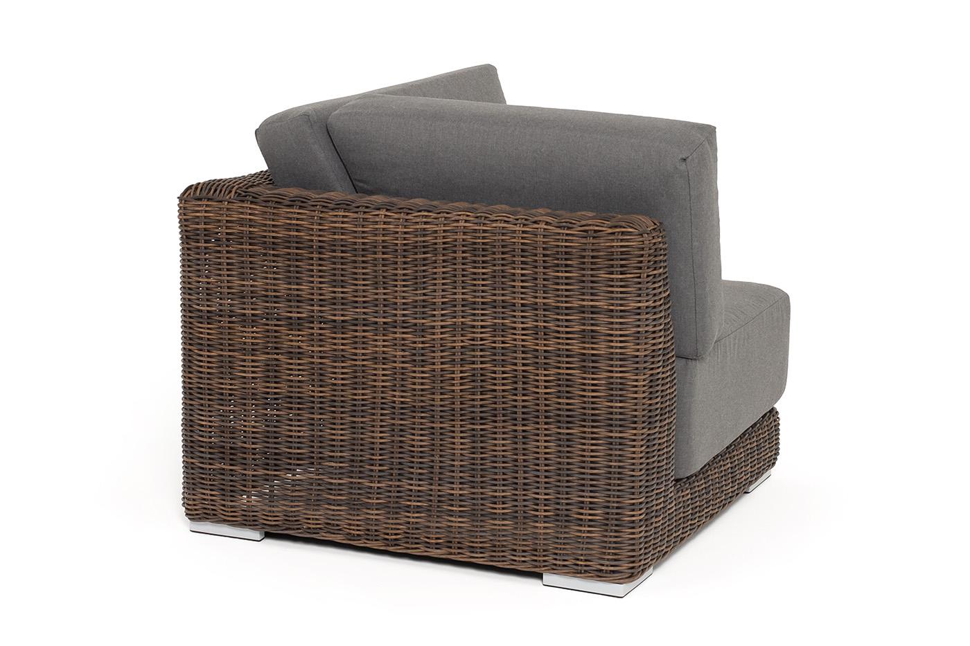 Угловой модуль из круглого искусственного ротанга «Капри» является одним из звеньев для создания лаунж зоны по индивидуальным потребностям. Основа выполнена из алюминиевого каркаса, декорированного вручную оплеткой коричневого цвета. Комплектацией предусмотрены подушки, выполенные из полиэстера с влагоотводящей пропиткой. Габариты изделия: 900×900×650 мм.