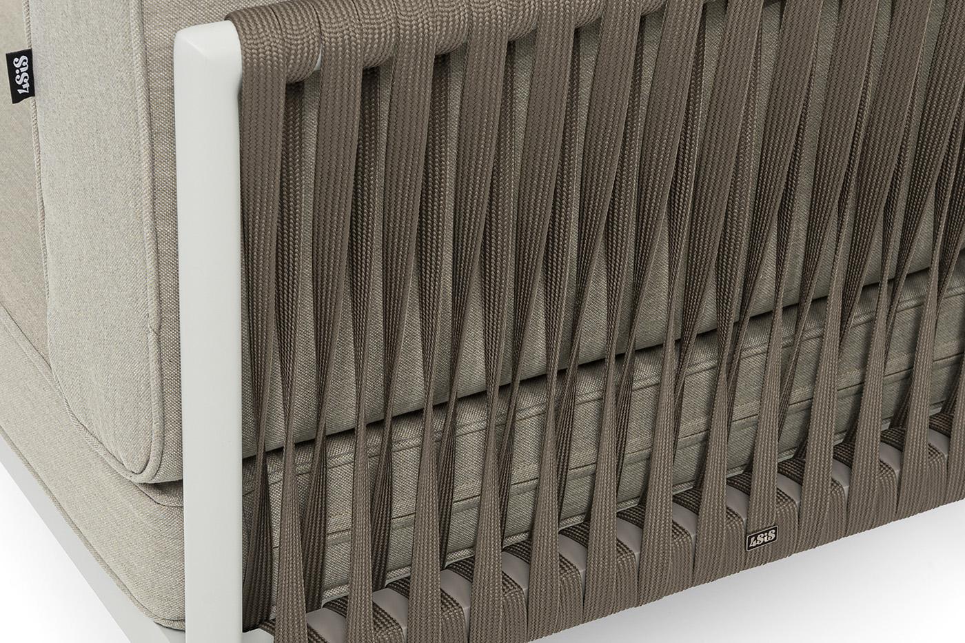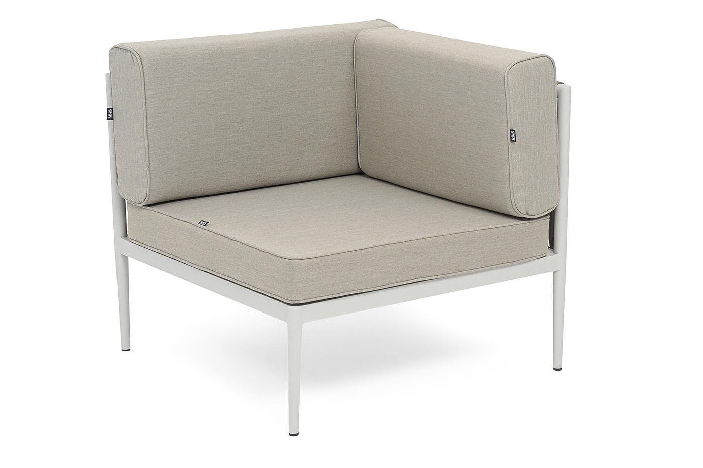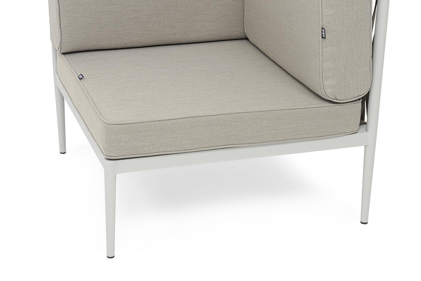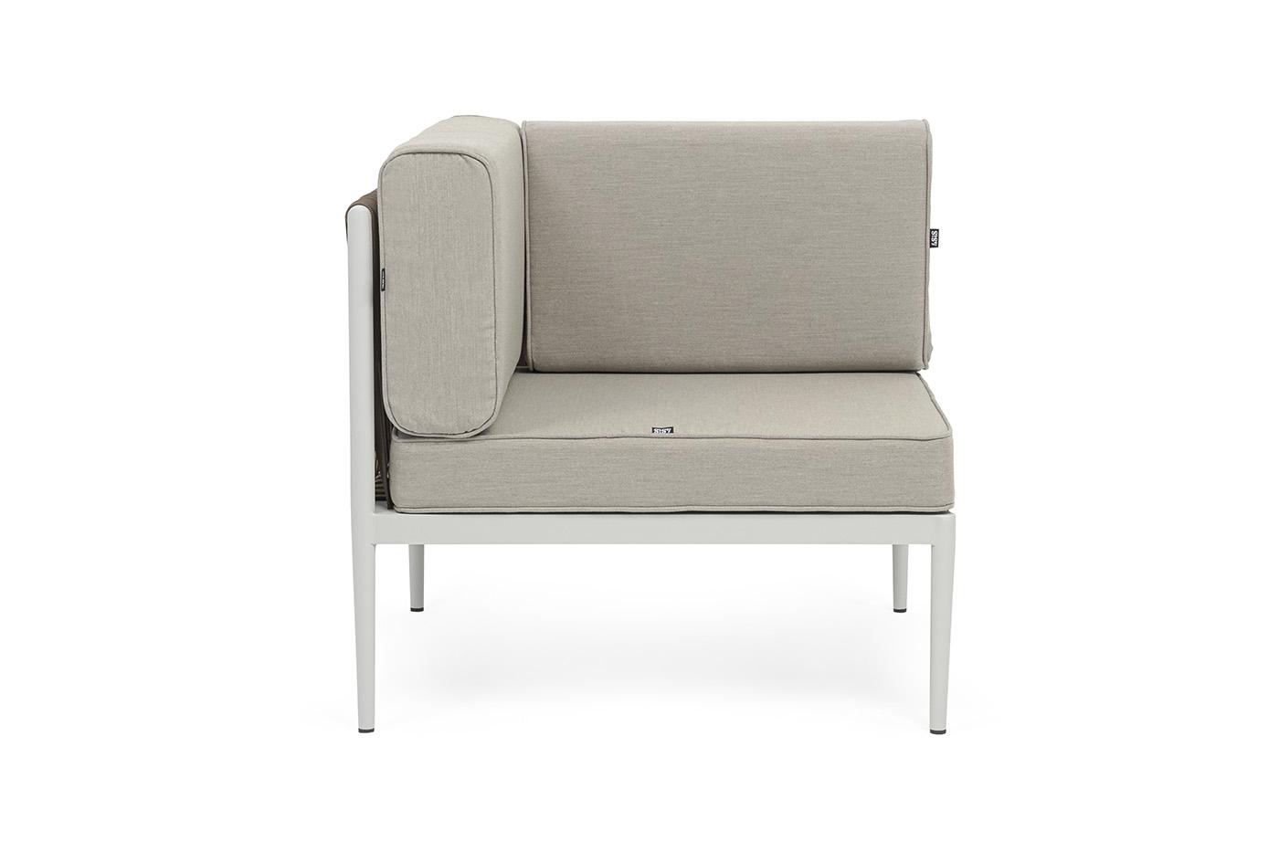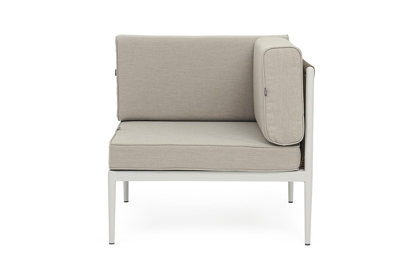 Модуль 4SIS "Касабланка" угловой модуль плетеный из роупа, каркас алюминий светло-серый (RAL7035) муар, роуп серо-коричневый 23мм, ткань бежевая 15052 арт. KAS-MС-001 RAL7035 Mua G-brown(beige15052)
