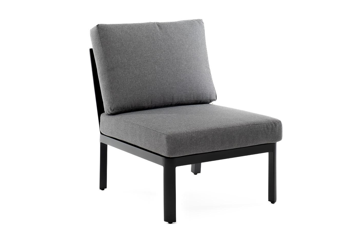 «Париж» модуль диванный центральный, алюминиевый каркас темно-серого цвета. В комплекте с подушками серого цвета со съёмными чехлами. Размер: 600×780×700 мм.