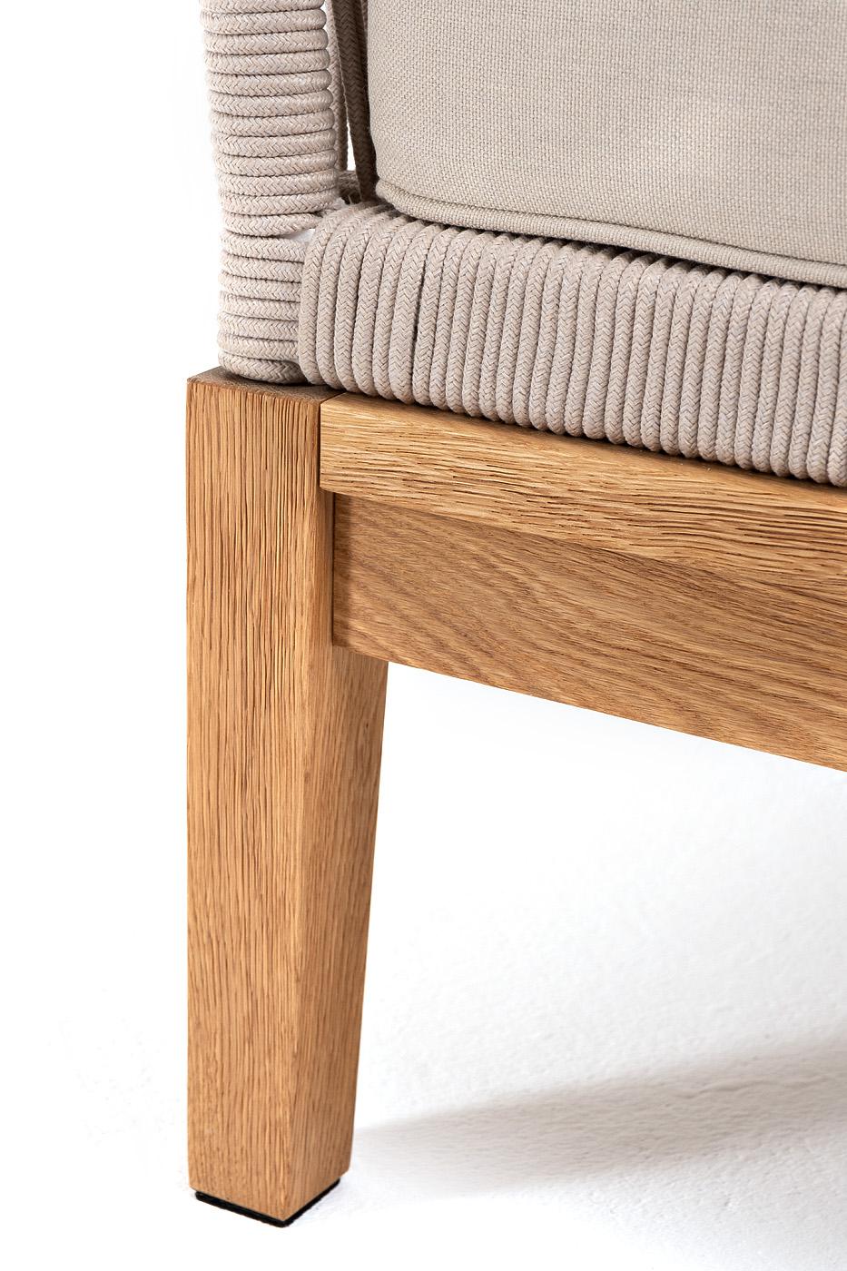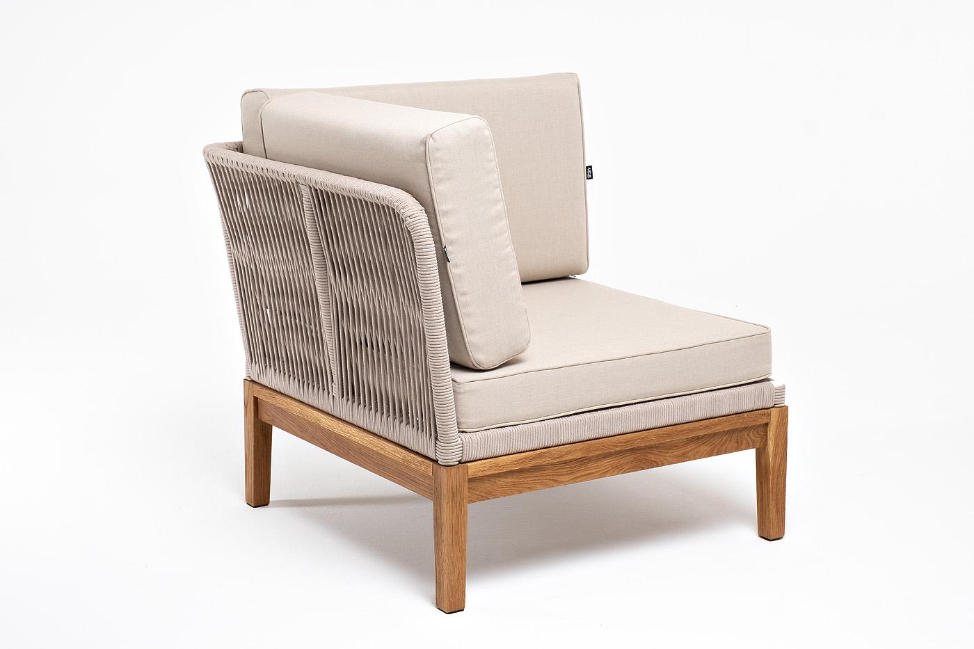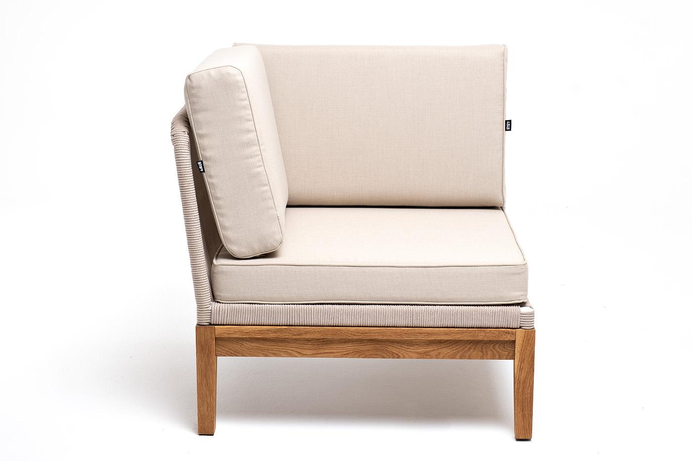 Модуль 4SIS "Канны" угловой модуль плетеный из роупа, основание дуб, роуп бежевый круглый, ткань бежевая 052 арт. KAN-MС-T002 beige(beige052)