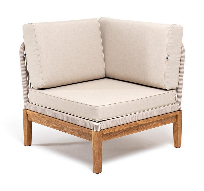 Модуль 4SIS "Канны" угловой модуль плетеный из роупа, основание дуб, роуп бежевый круглый, ткань бежевая 15052 арт. KAN-MС-T001 W Mua beige(beige15052)