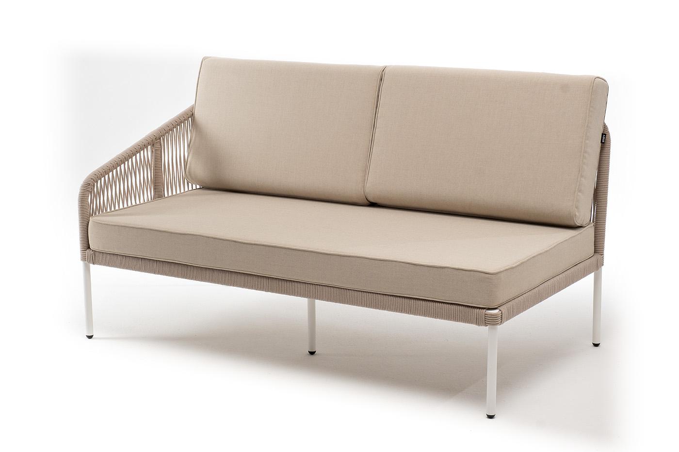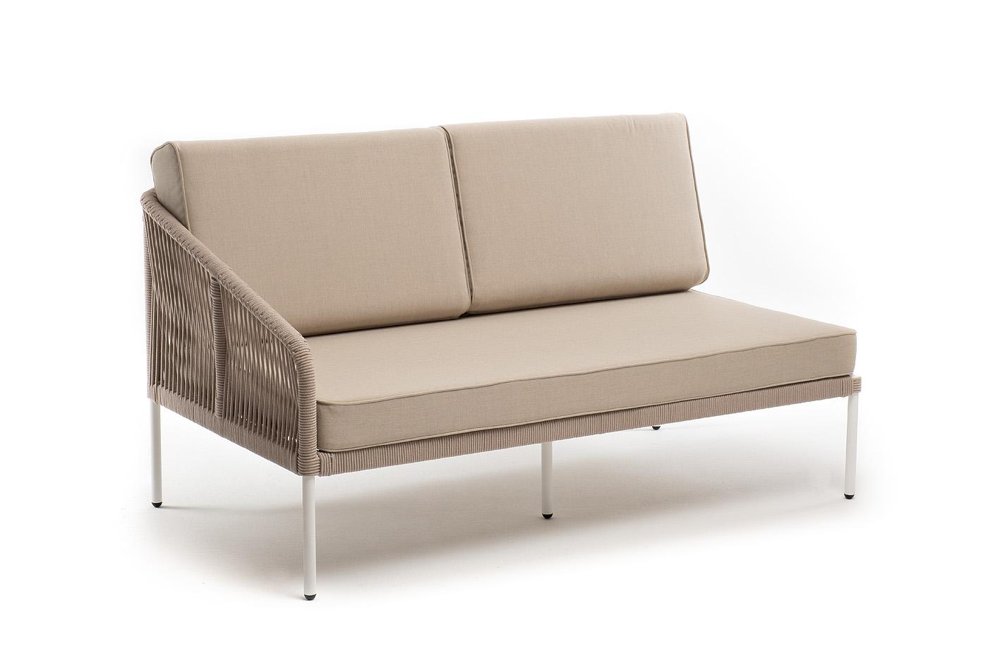 Модуль 4SIS "Канны" правый модуль плетеный из роупа, каркас алюминий белый муар, роуп бежевый круглый, ткань бежевая 15052 арт. KAN-MRS2-001 W Mua beige(beige15052)