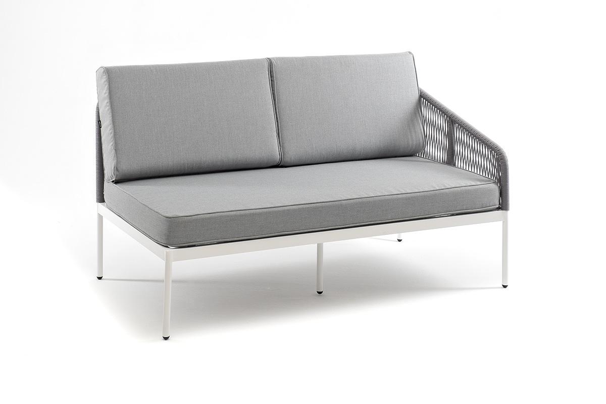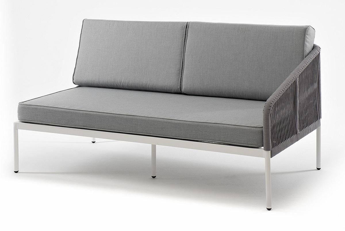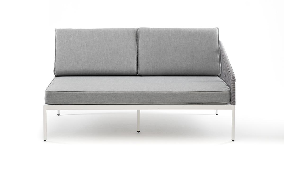 Модуль 4SIS "Канны" левый модуль плетеный из роупа, каркас алюминий белый муар, роуп светло-серый круглый, ткань светло-серая арт. KAN-MLS2-001 W Mua H-grey(H-gray)