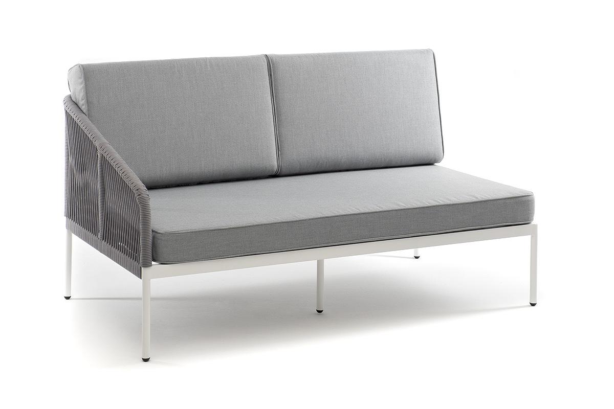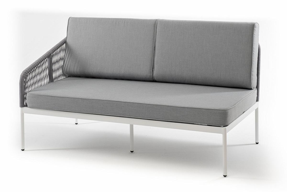Модуль 4SIS "Канны" правый модуль плетеный из роупа, каркас алюминий белый муар, роуп светло-серый круглый, ткань светло-серая арт. KAN-MRS2-001 W Mua H-grey(H-gray)