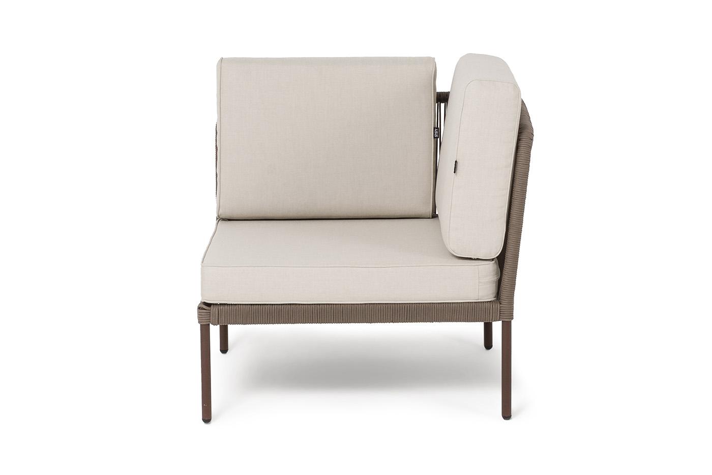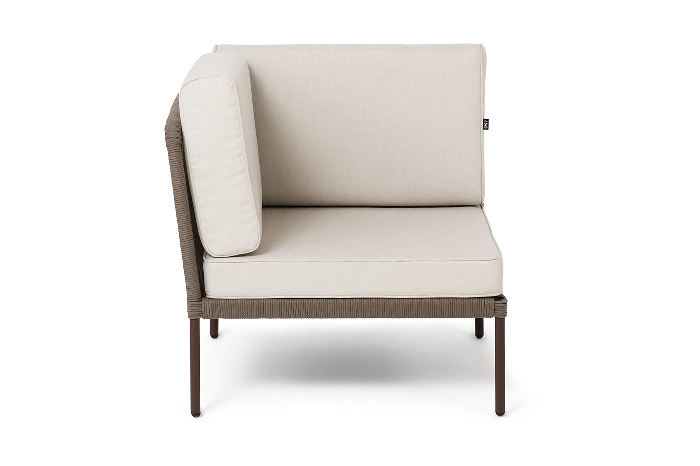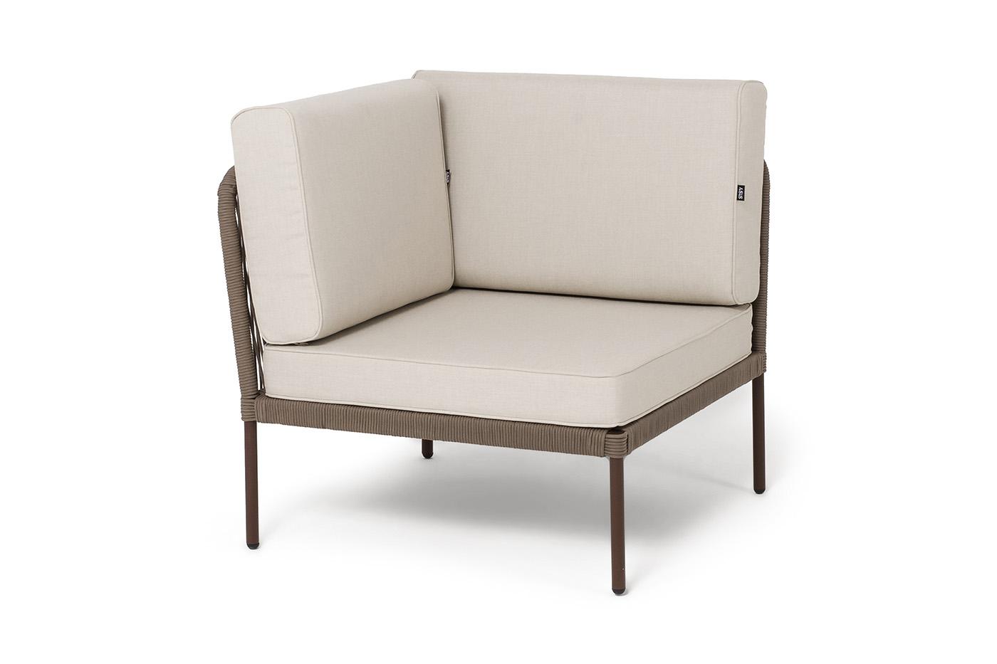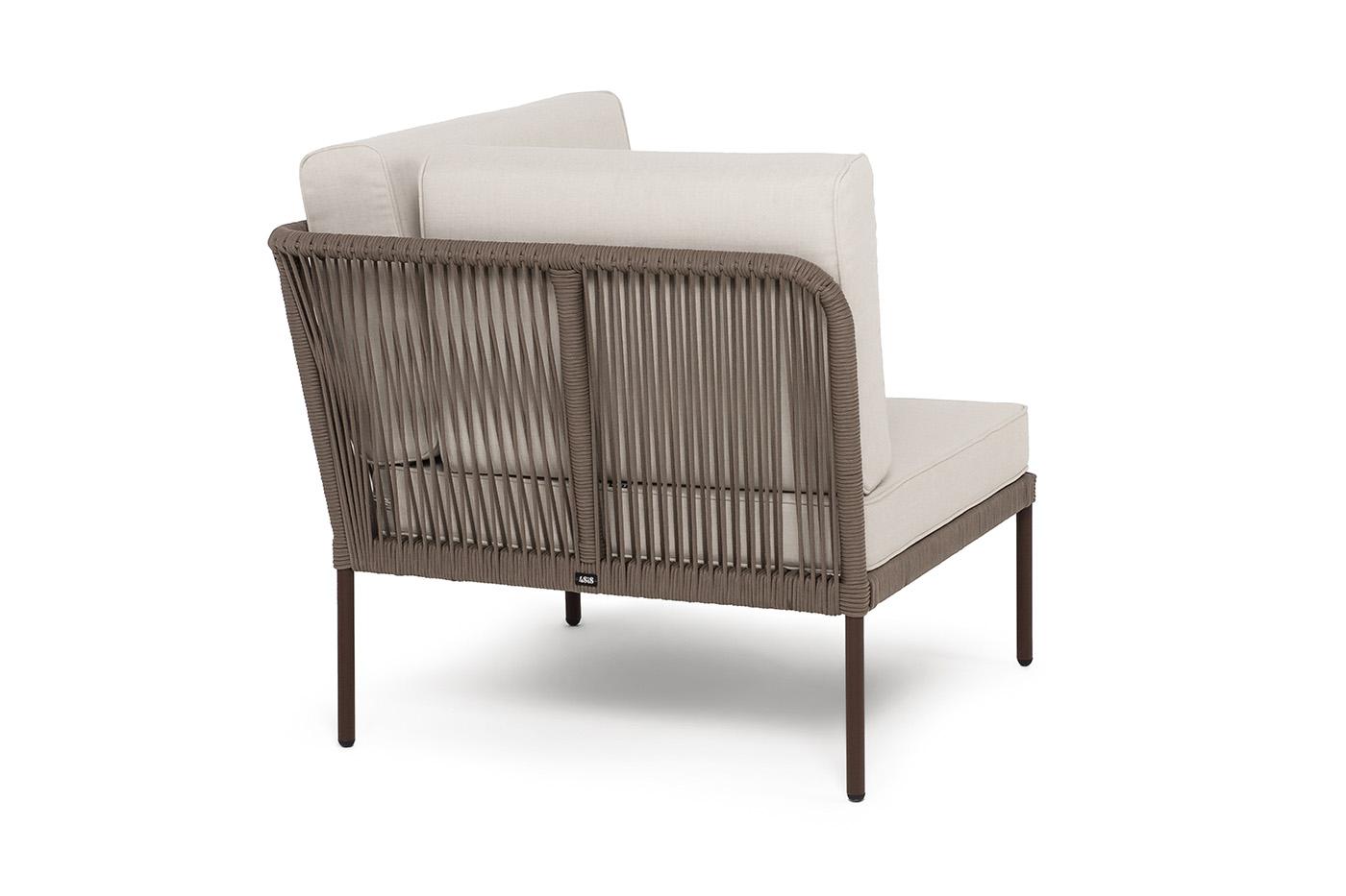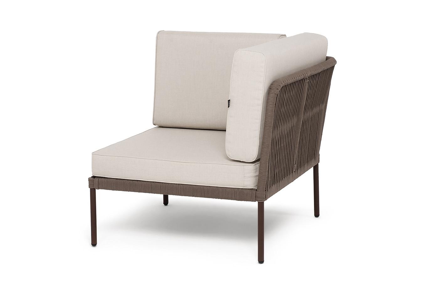 Модуль 4SIS "Канны" угловой модуль плетеный из роупа, каркас алюминий коричневый (RAL8016) муар, роуп коричневый круглый, ткань бежевая 15052 арт. KAN-MС-001 RAL8016 Mua brown(beige15052)