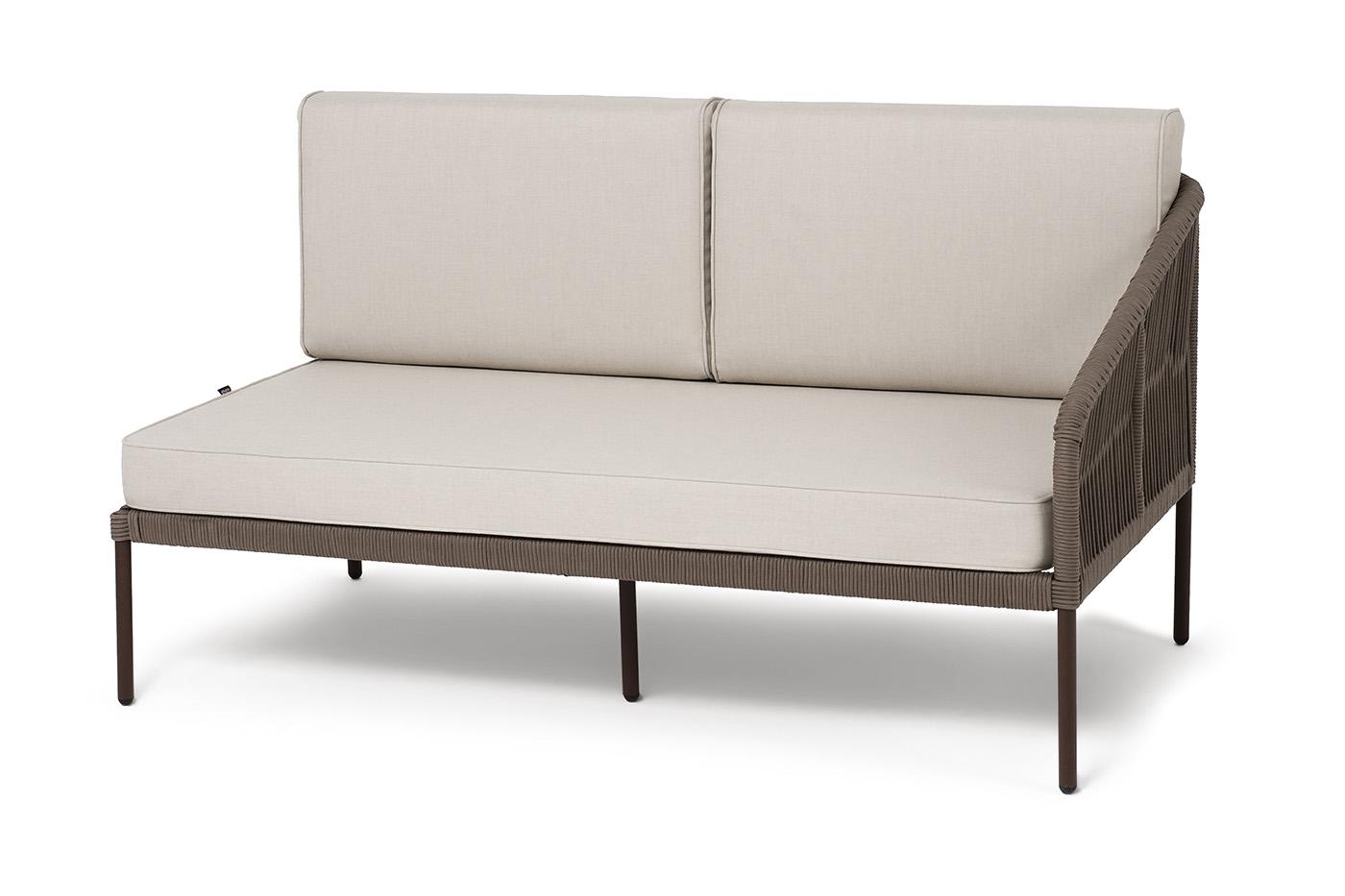 Модуль 4SIS "Канны" левый модуль плетеный из роупа, каркас алюминий коричневый (RAL8016) муар, роуп коричневый круглый, ткань бежевая 15052 арт. KAN-MLS2-001 RAL8016 Mua brown(beige15052)