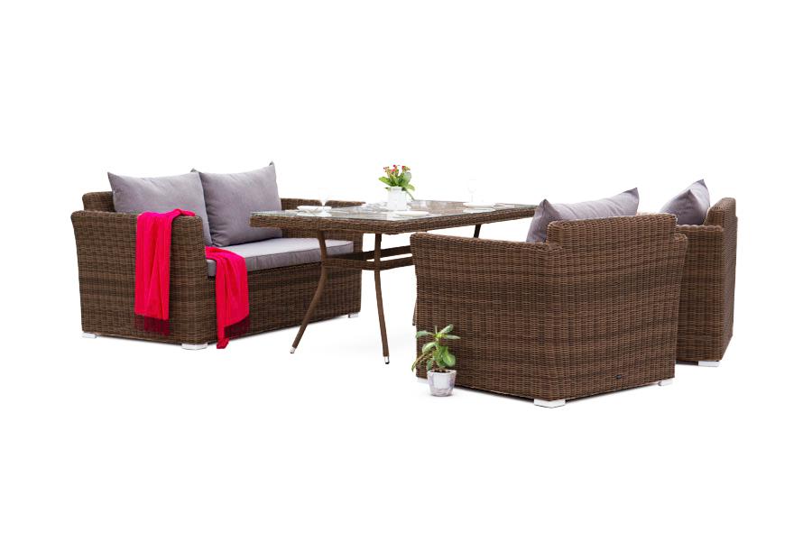 Обеденная группа 4SIS "Аффогато" обеденная группа из искусственного ротанга, цвет коричневый арт. AS2C2T-4-SET brown