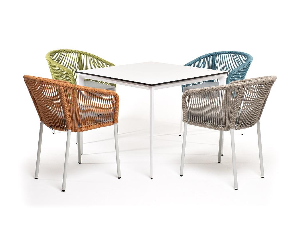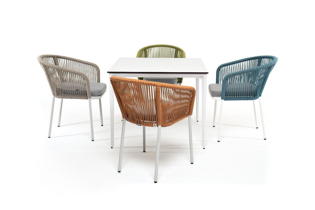 Обеденная группа 4SIS "Аркобалено" обеденная группа на 4 персоны со стульями "Марсель", каркас белый, роуп цветной арт. ARC-CM4T1-5-SET color