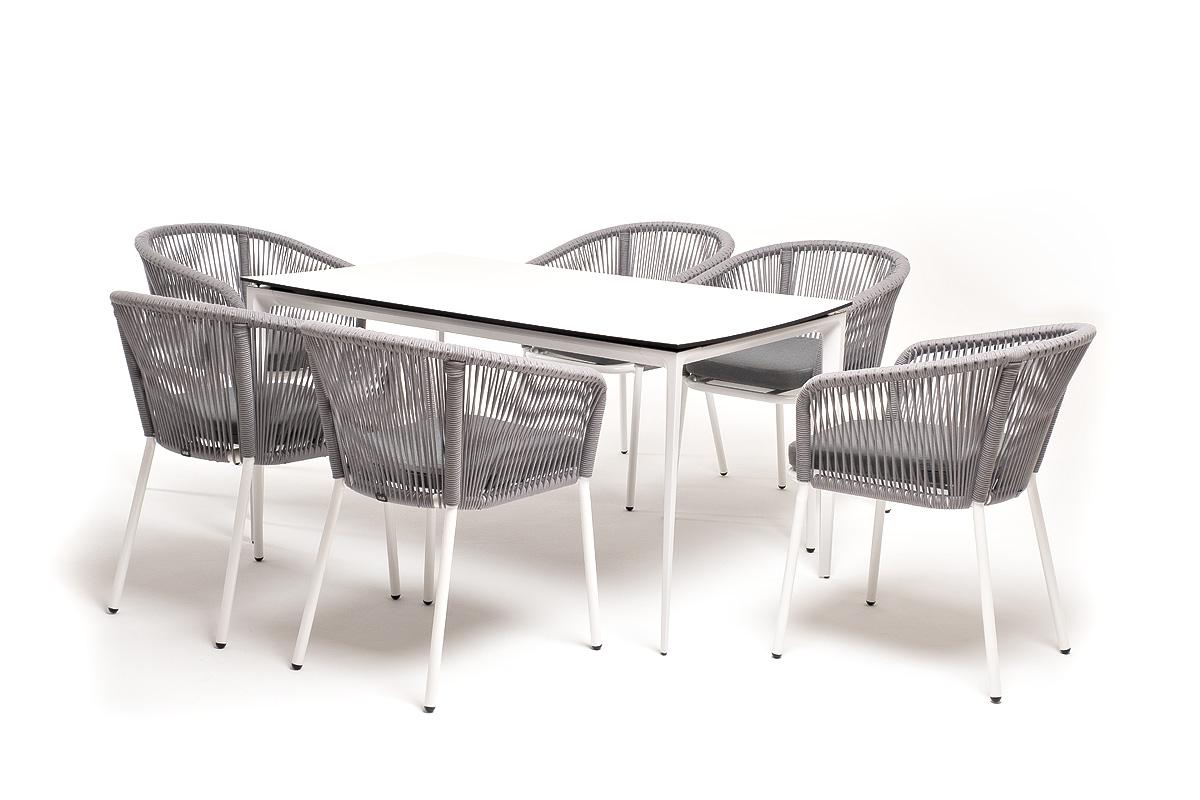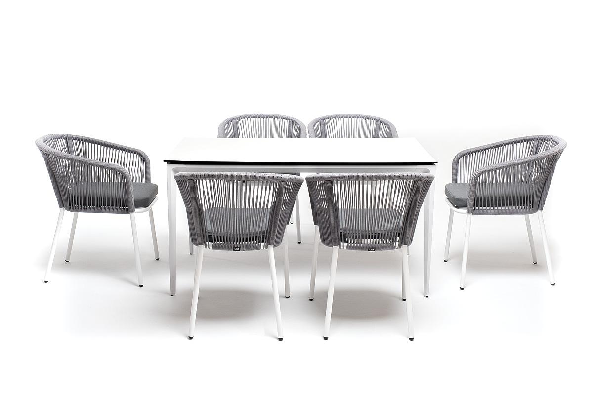 Обеденная группа 4SIS "Малага" обеденная группа на 6 персон со стульями "Марсель", каркас белый, роуп светло-серый арт. MAL-CM6T1-7-SET H-gray
