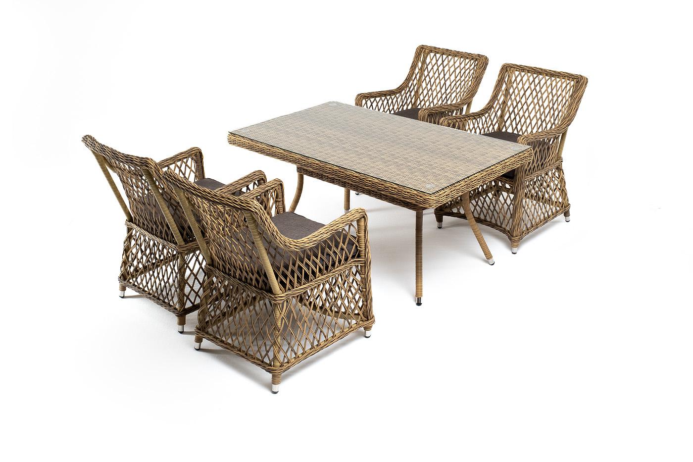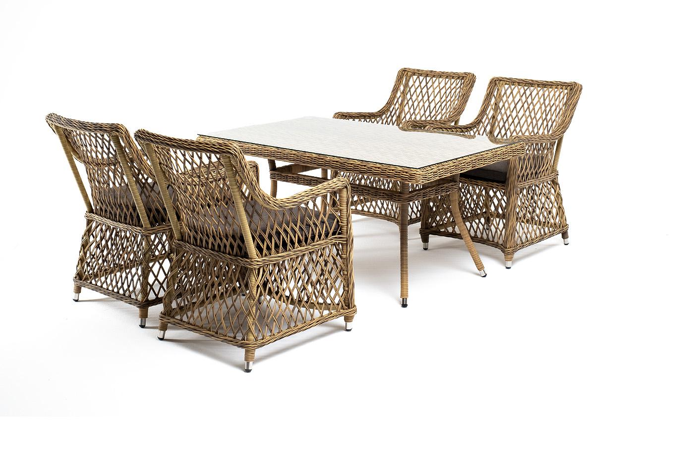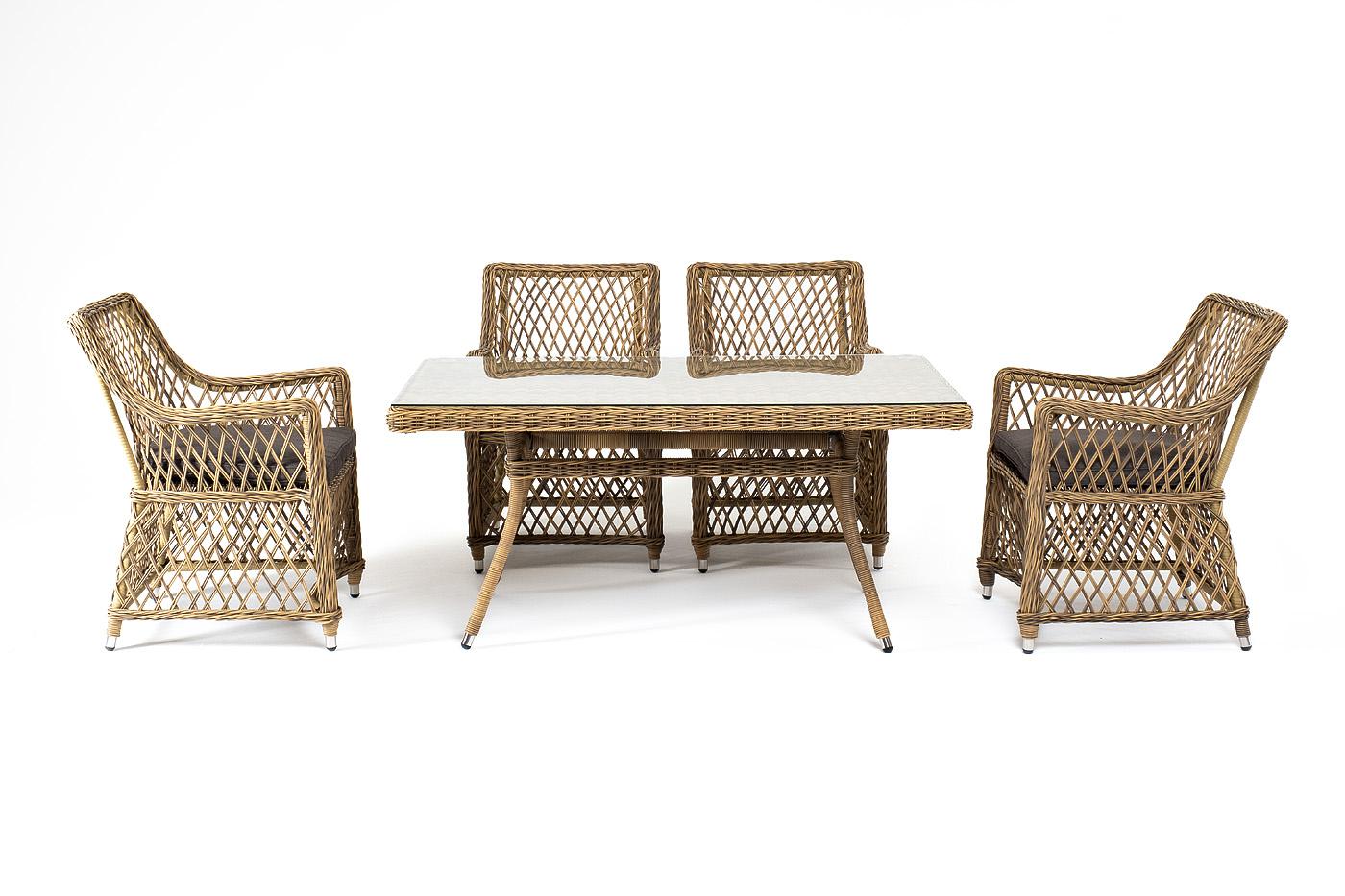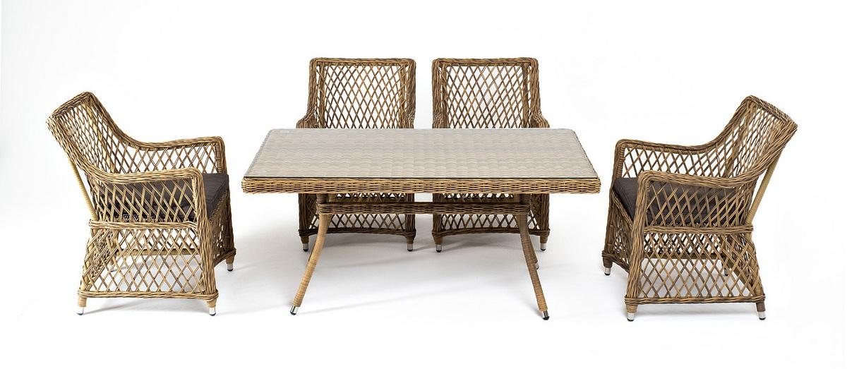 Обеденная группа 4SIS "Латте–140 L" обеденная группа плетеная, цвет соломенный арт. LCL4T-5-SET