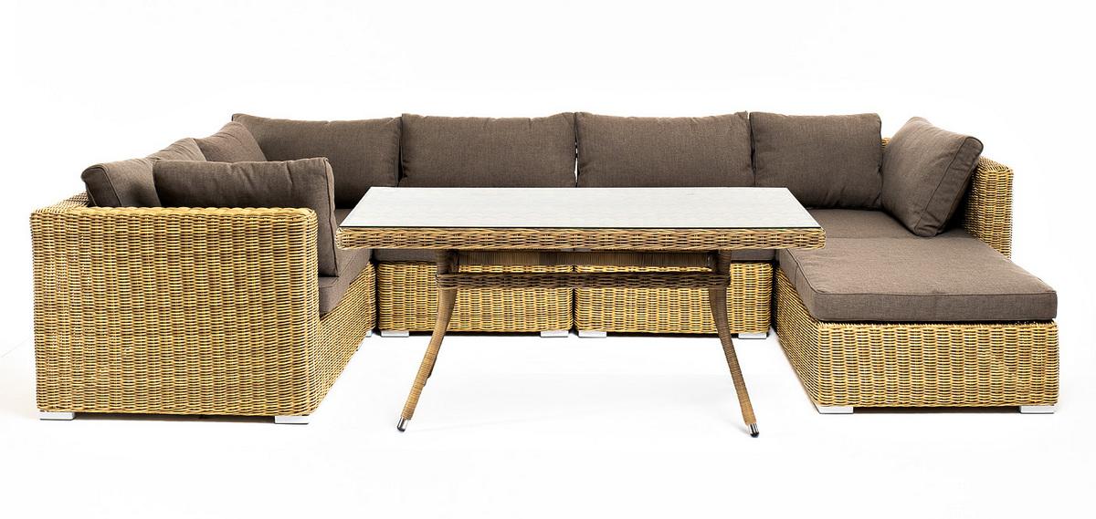 Обеденная группа 4SIS "Лунго" обеденная группа угловая из искусственного ротанга, цвет соломенный арт. LS5O1T-7-SET