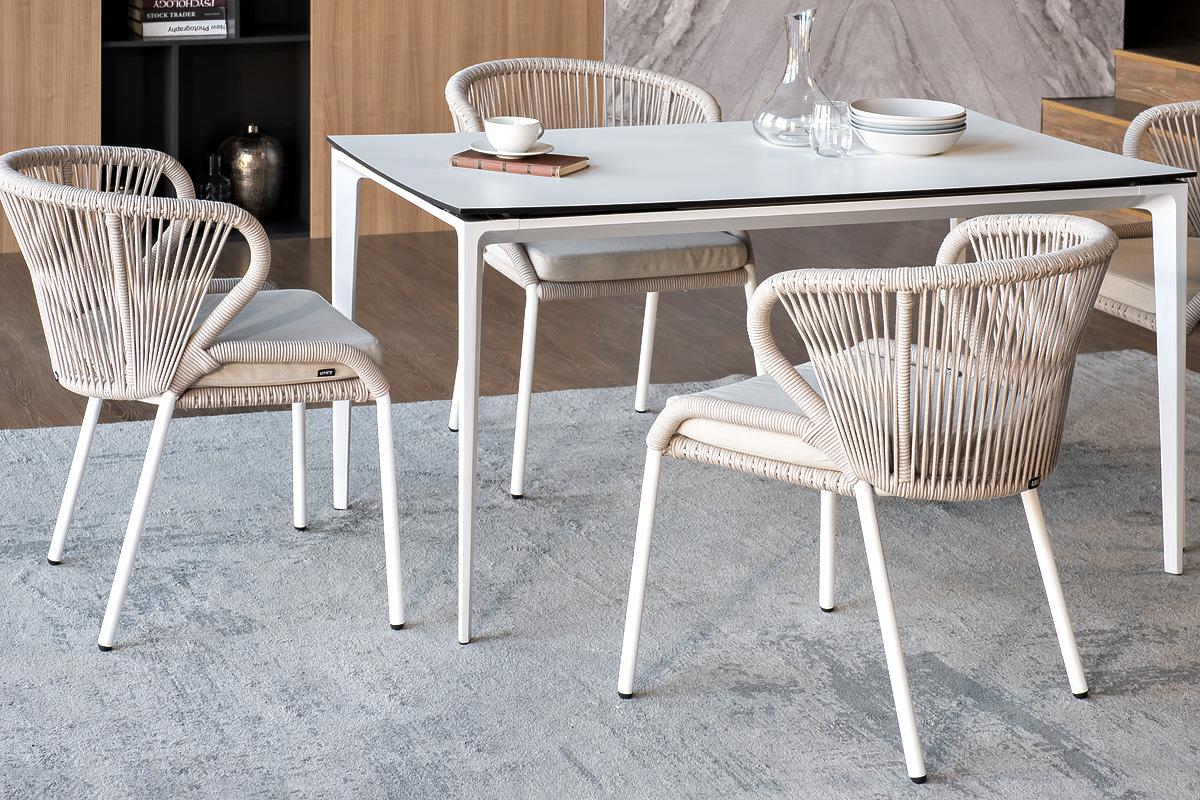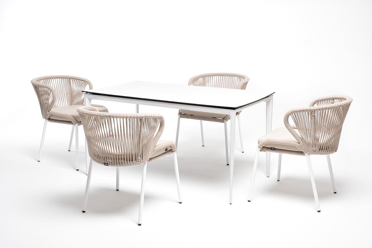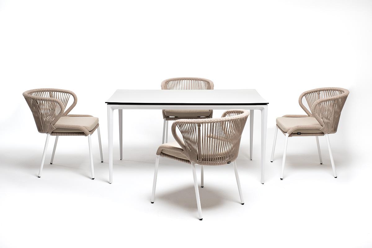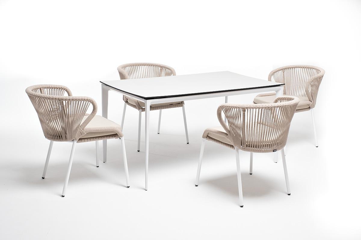 Обеденная группа 4SIS "Малага" обеденная группа на 4 персоны со стульями "Милан", каркас белый, роуп бежевый арт. MAL-CMIL4T1-5-SET beige