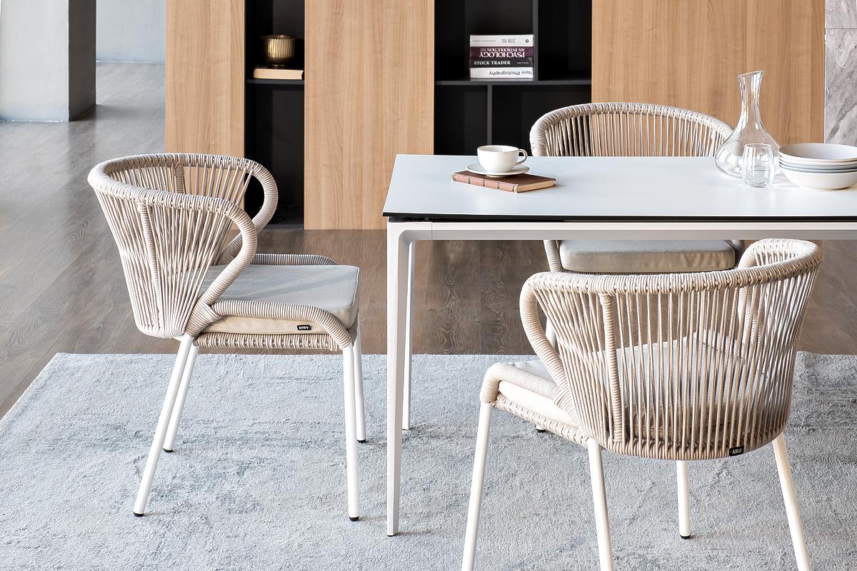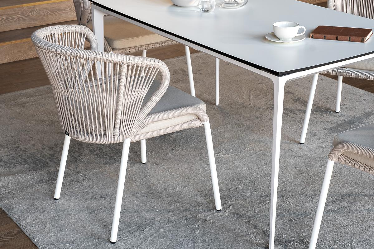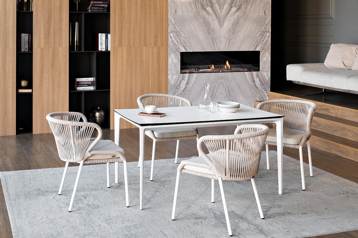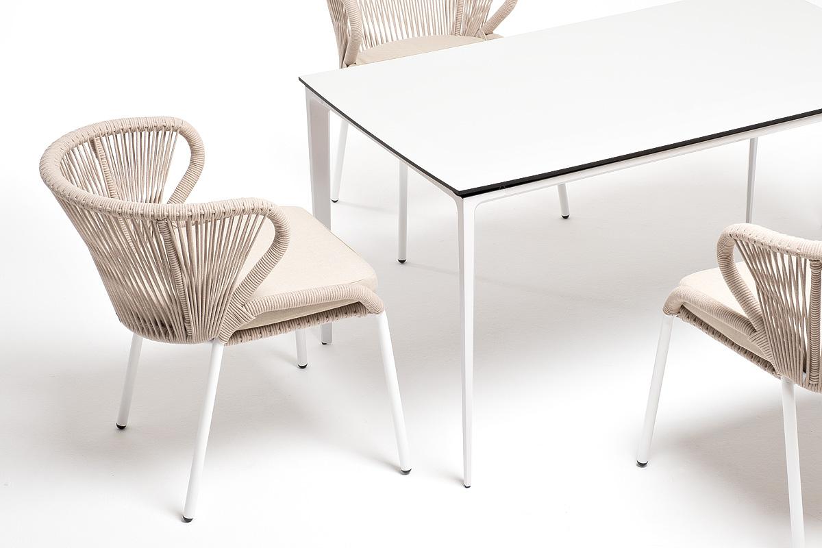 Обеденная группа 4SIS "Малага" обеденная группа на 4 персоны со стульями "Милан", каркас белый, роуп бежевый арт. MAL-CMIL4T1-5-SET beige