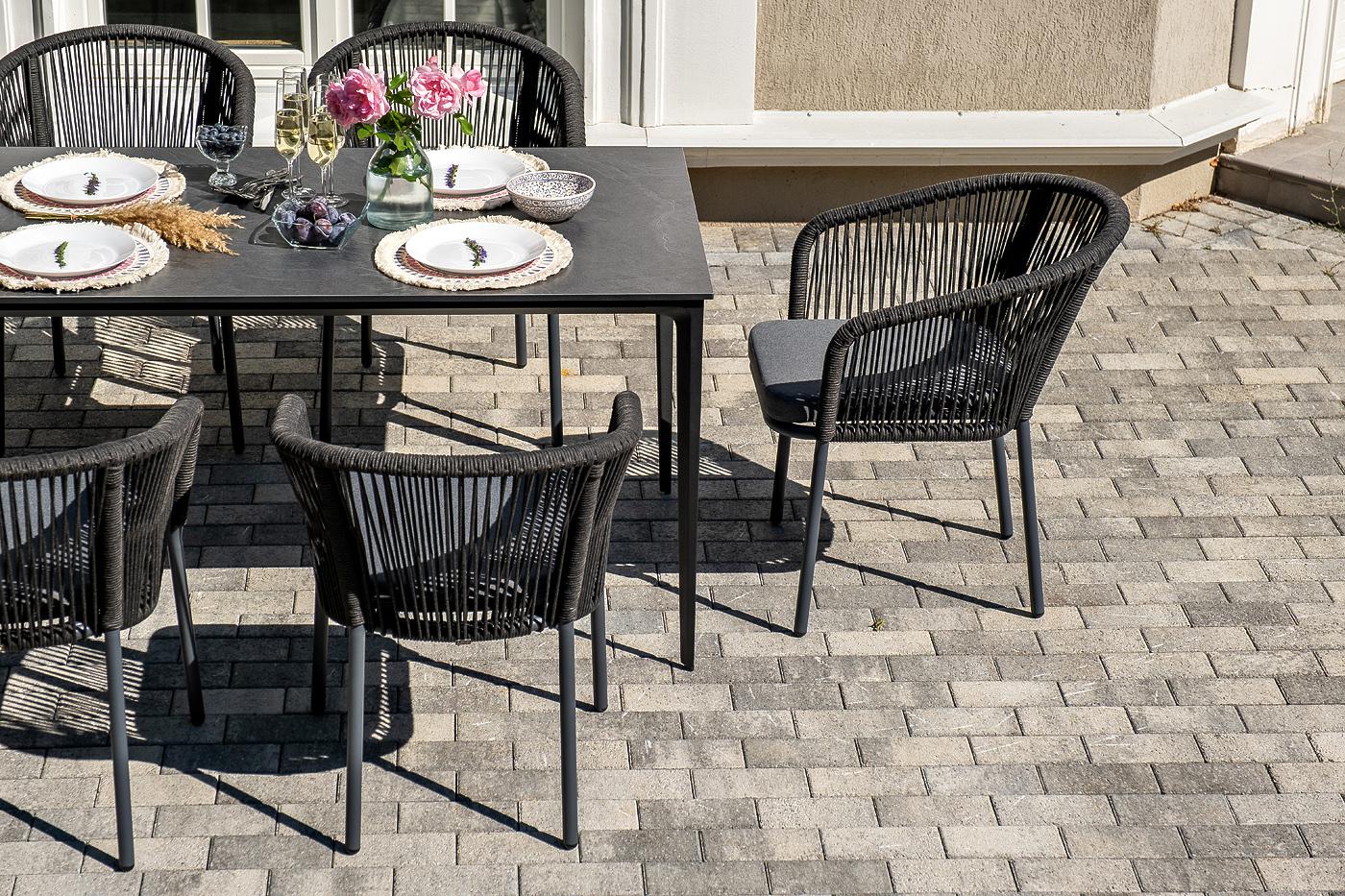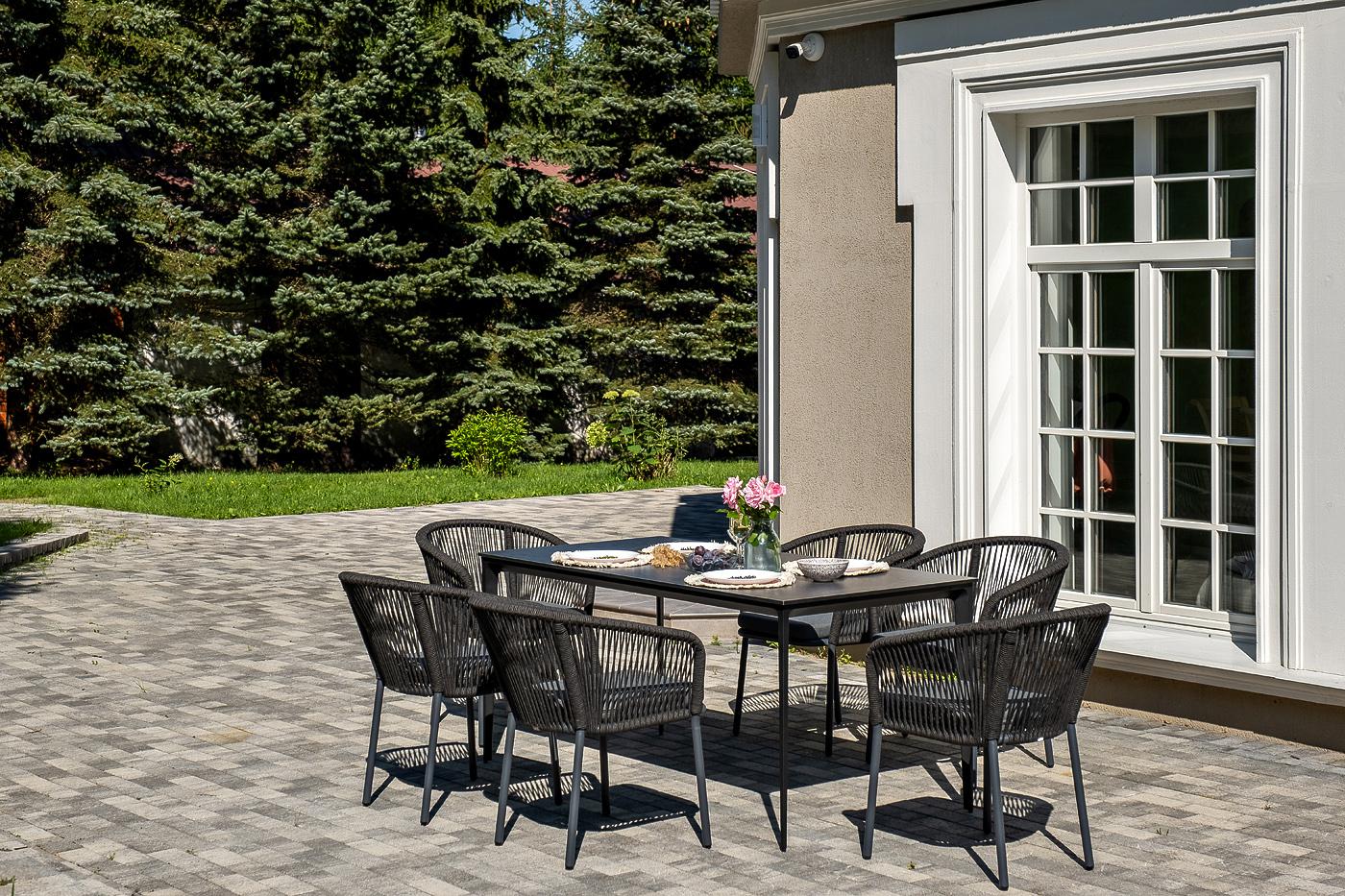 Обеденная группа 4SIS "Малага" обеденная группа на 6 персон со стульями "Марсель", каркас темно-серый, роуп темно-серый арт. MAL-CM6T1-7-SET D-gray