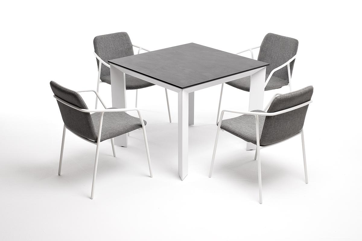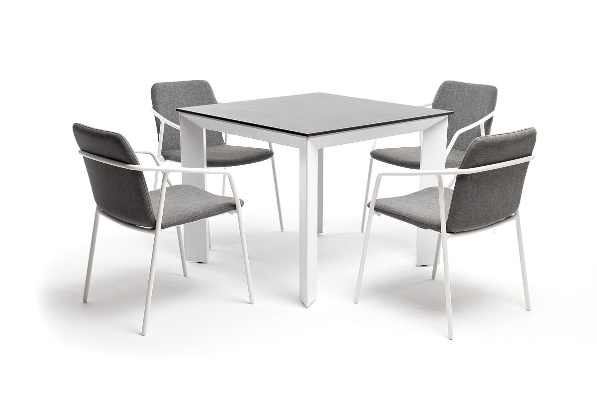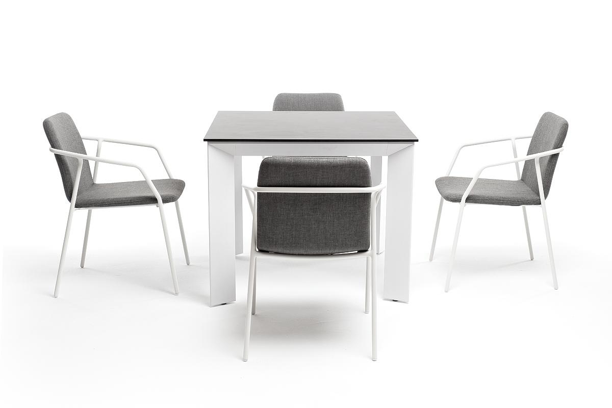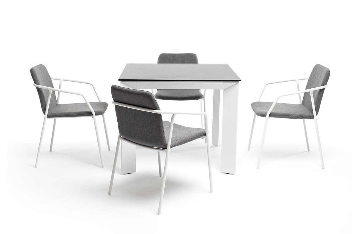 Обеденная группа 4SIS "Венето" обеденная группа на 4 персоны со стульями "Марокко", каркас белый, роуп серый арт. VEN-CM4T1-5-SET Dray