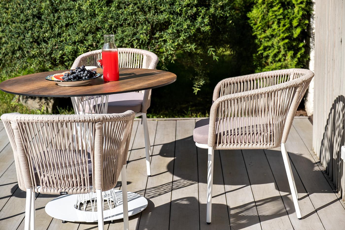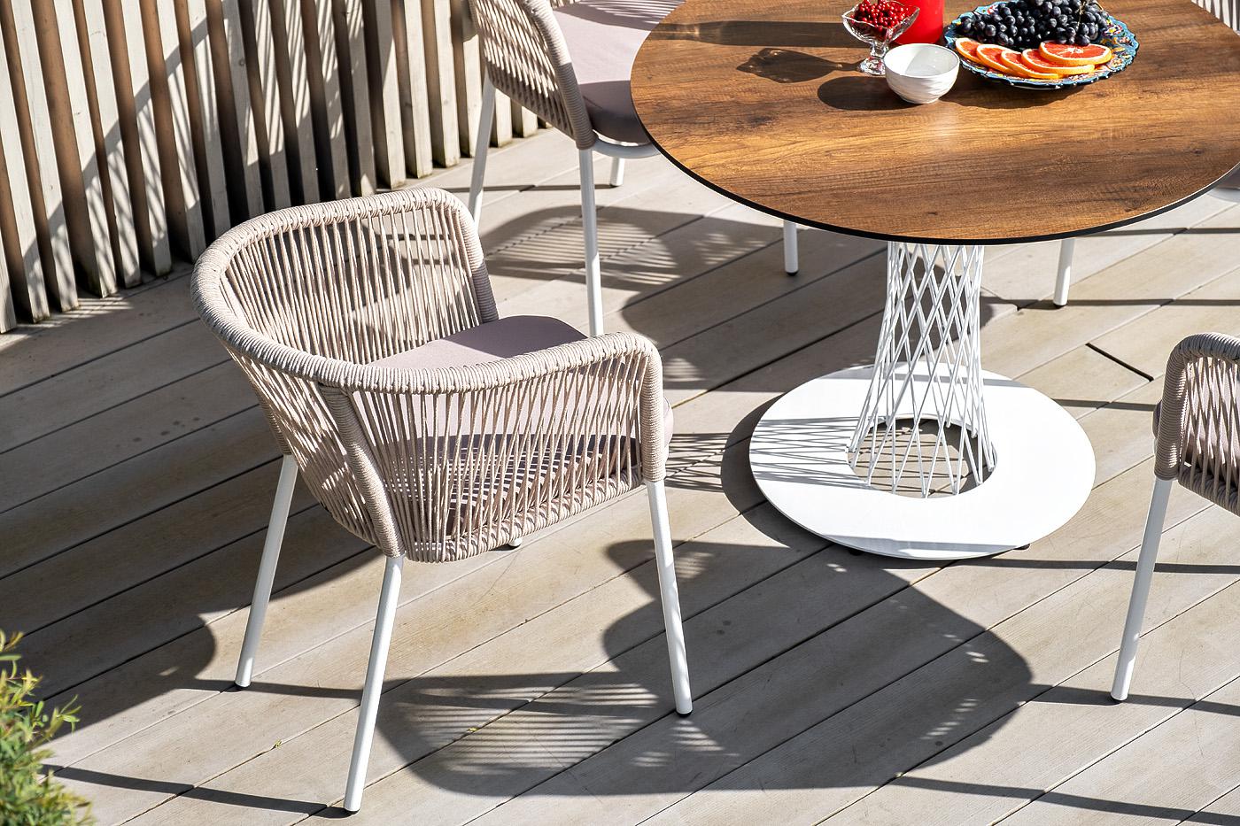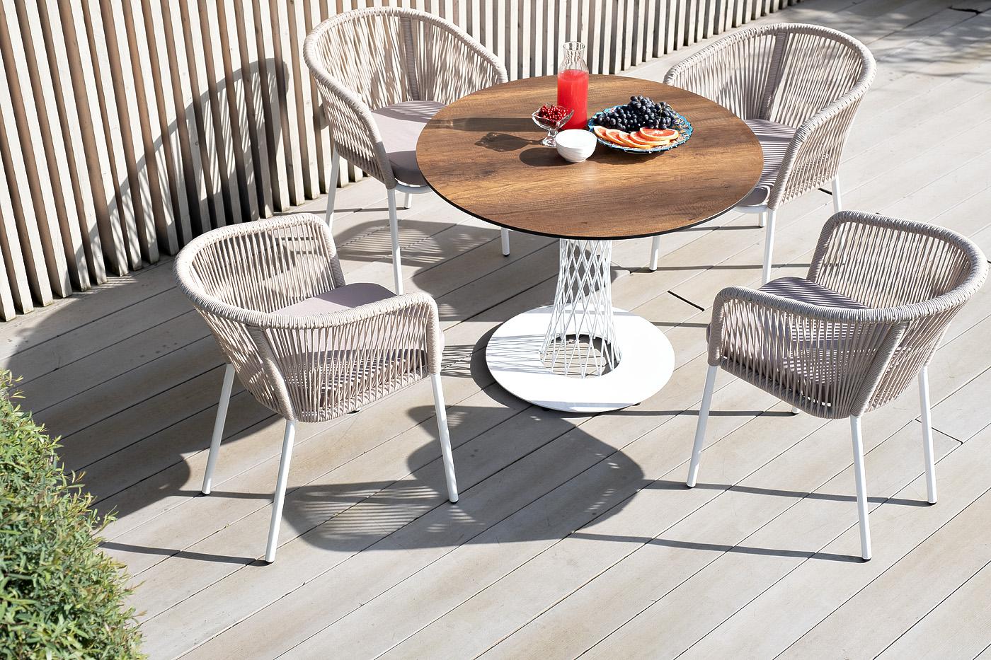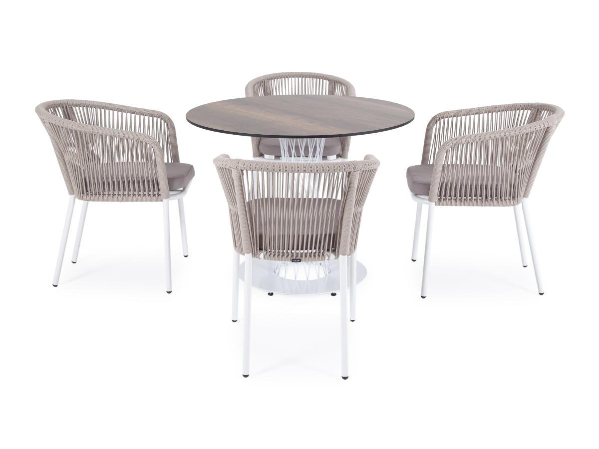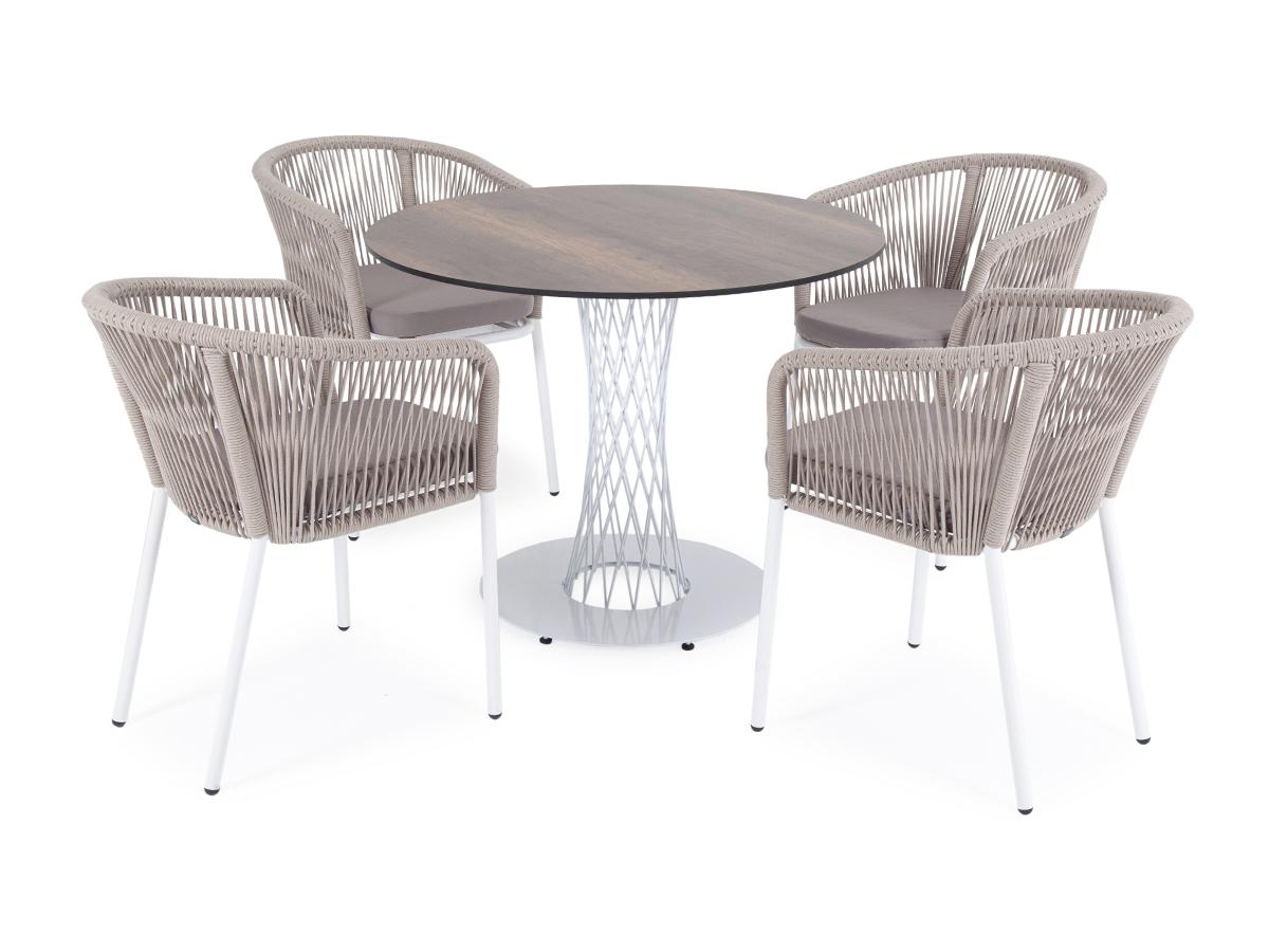 Обеденная группа 4SIS "Диего" обеденная группа на 4 персоны, круглый стол "дуб", цвет бежевый арт. D100-HPL-Rope beige